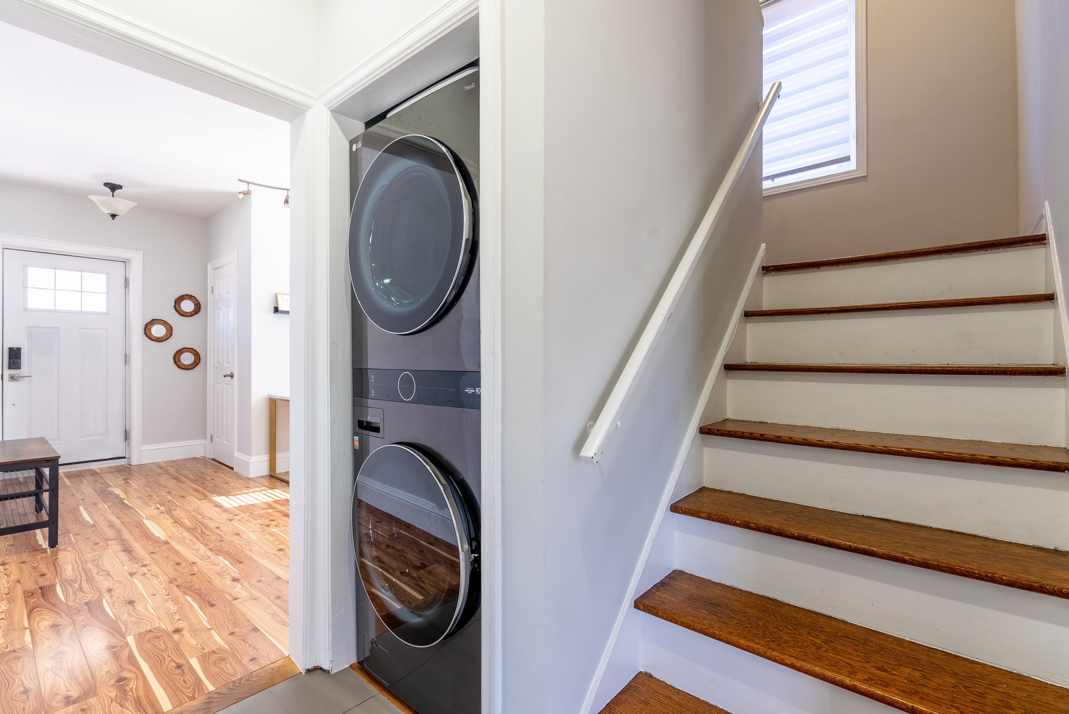Beautifully renovated 1. 5-storey detached home with a legal second suite in hamilton's sought-after delta neighbourhood. This property offers modern updates, original charm, and excellent income potential. The main level features hardwood floors throughout, a spacious living room with a decorative fireplace, and an updated kitchen with stainless steel appliances. The kitchen flows into a bright dining area and family room with sliding doors leading to a private backyard with a stone patio-ideal for entertaining. A main-floor den provides flexibility for a home office or guest room. Upstairs offers two bedrooms and a renovated 4-piece bathroom. The fully finished basement includes 7-ft ceilings, a separate entrance, and a legal second suite (2022, with permit). Currently tenanted at $1,600/month, the suite features a second kitchen, large bedroom, living/rec room, and a 3-piece bath with walk-in shower. A large storage room offers potential to convert into an additional bedroom. Separate laundry for both units (2022). Exterior features include a large detached garage with extended workspace, perfect for hobbies or a workshop, and a driveway extension (2022). Conveniently located near ottawa street, schools, shopping, transit, and the upcoming hamilton lrt. Extras: recent upgrades over 60k incl. Finished bsmt/additional dwelling separate unit (2022) w/permit, separate laundry units (2022), roof (2022), air conditioning & furnace (2022), driveway extension (2022), appliances (2022), new windows (2023). Move-in ready with strong income potential.