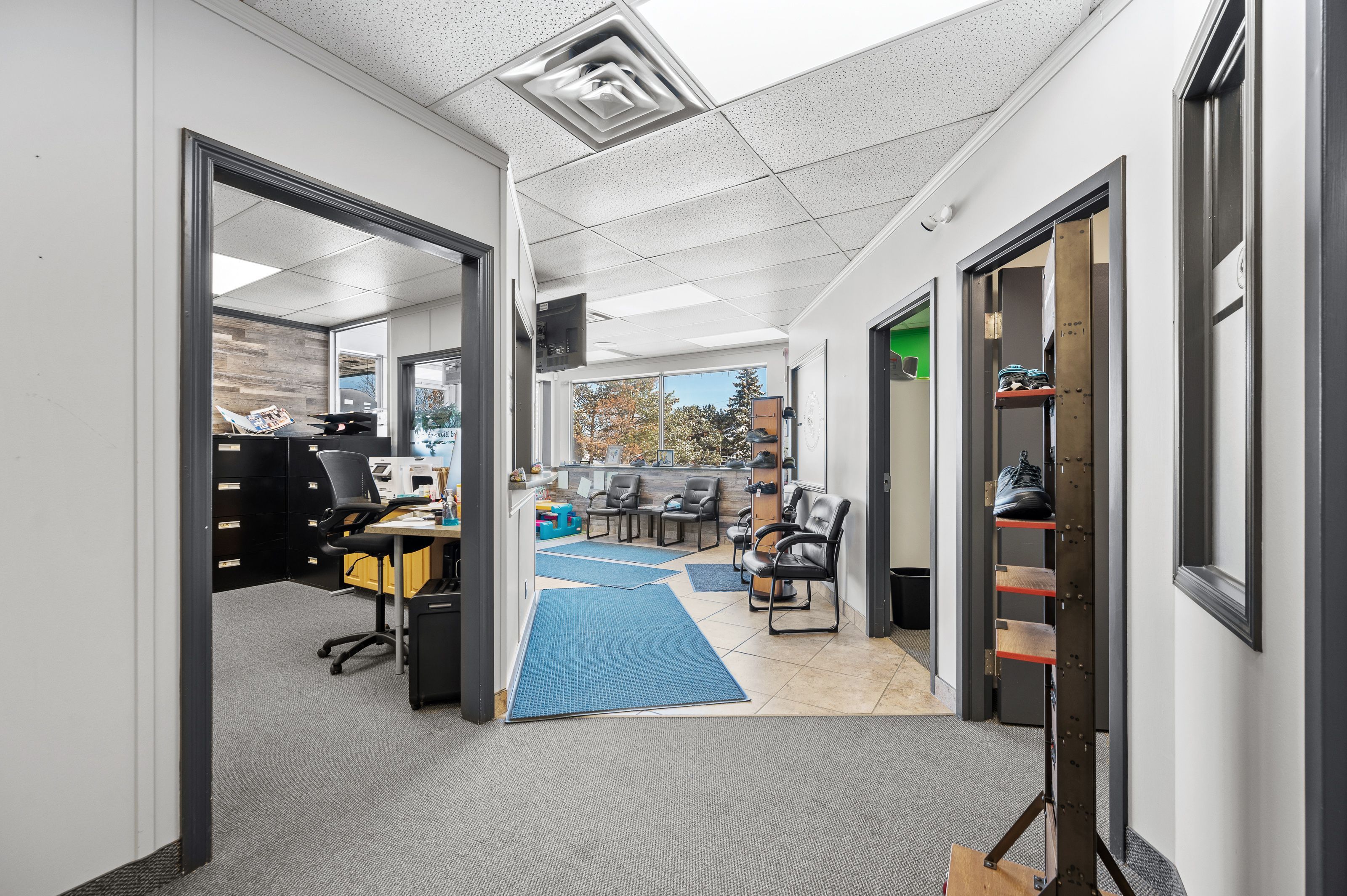 Opportunity to have your business on busy speedvale! Large end unit, professional space with drive-in door (12 x10) for delivery or storage, 14' ceiling height. Flexible cs zoning allows for many uses such as retail, health office space, fitness centre, or clinics. Join the fantastic existing tenants (let's talk guelph, liberty staffing solutions, target golf, and import automotive). No restaurants, take-out restaurants, automotive uses. Tmi $6. 40/sq ft