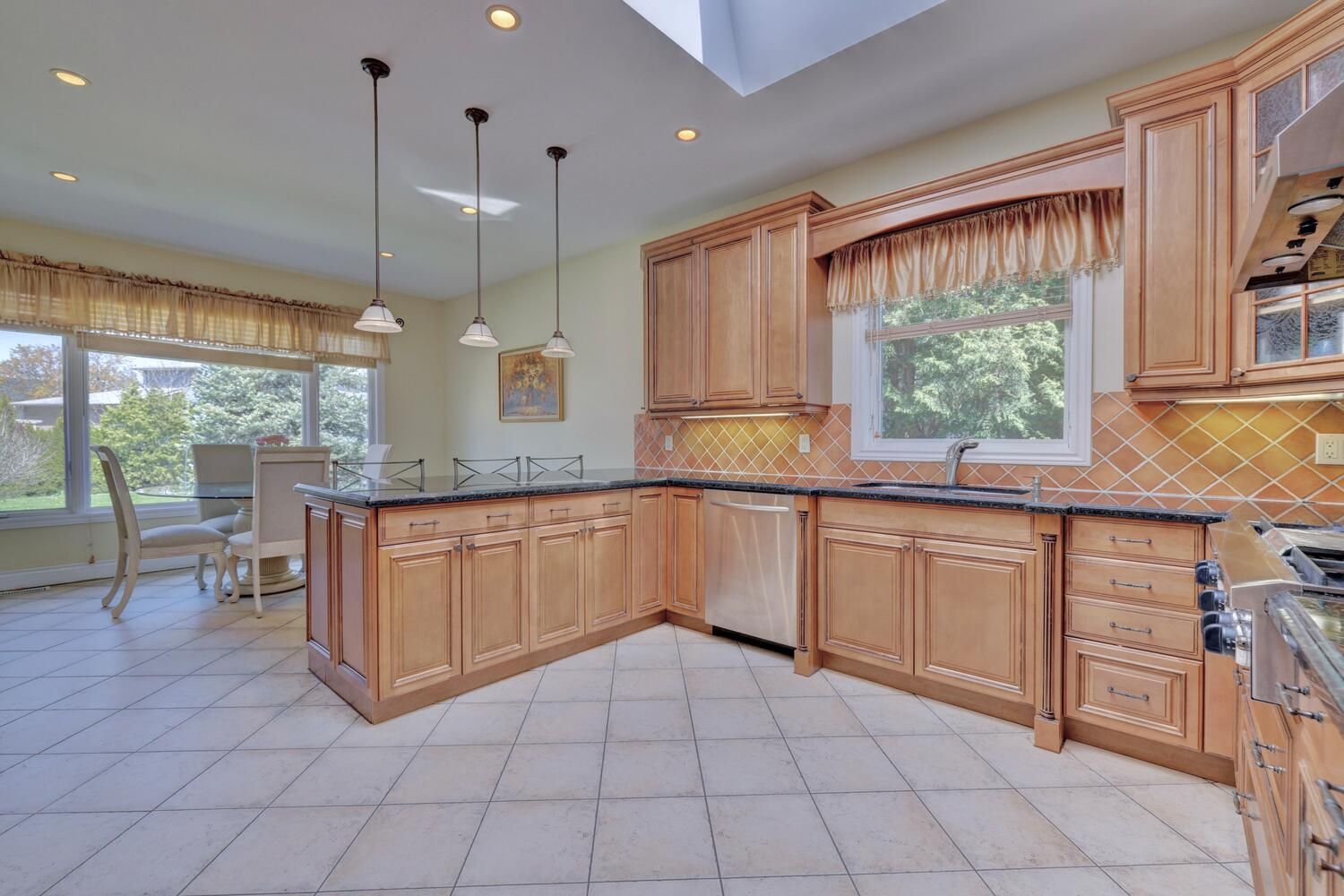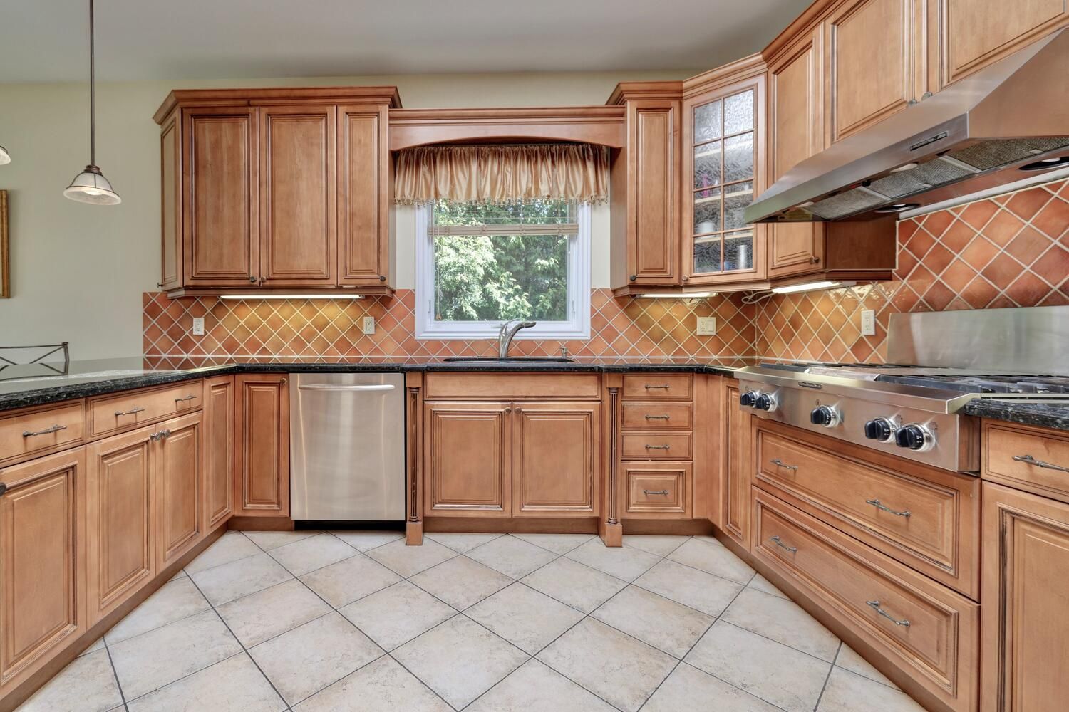 • Gourmet kitchen with granite counters and stainless steel appliances overlooking the pool.