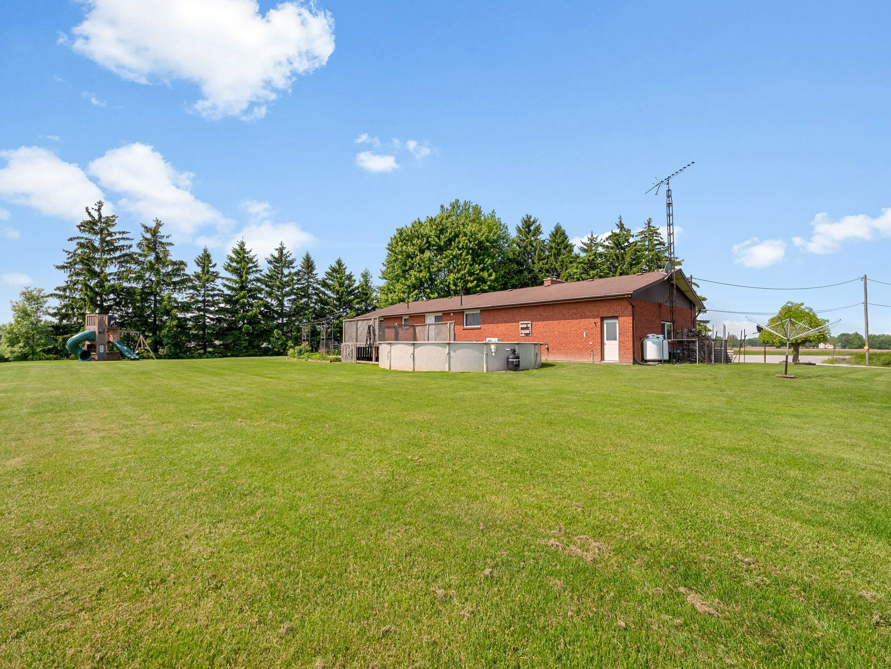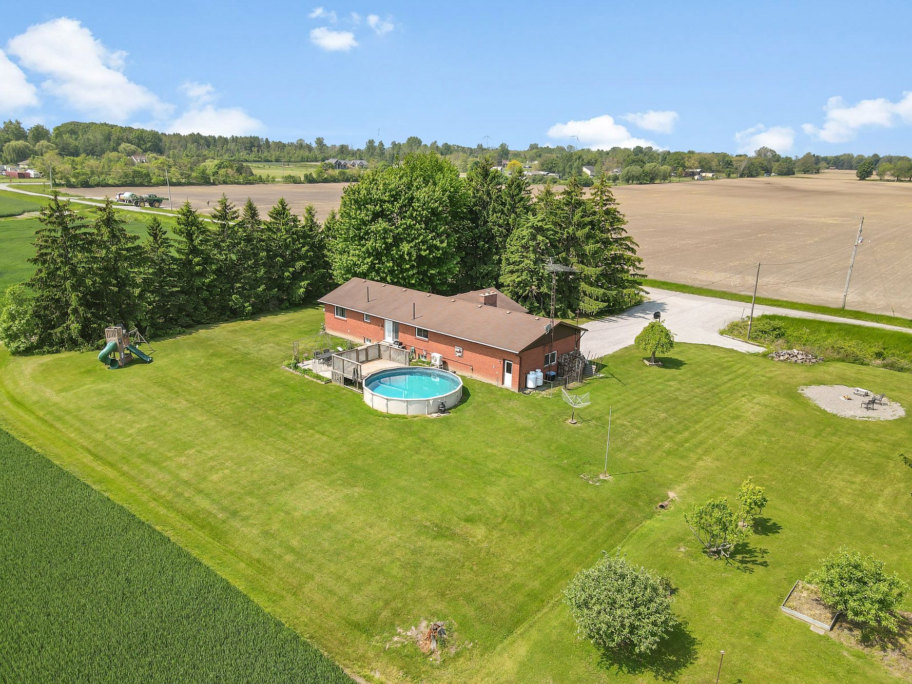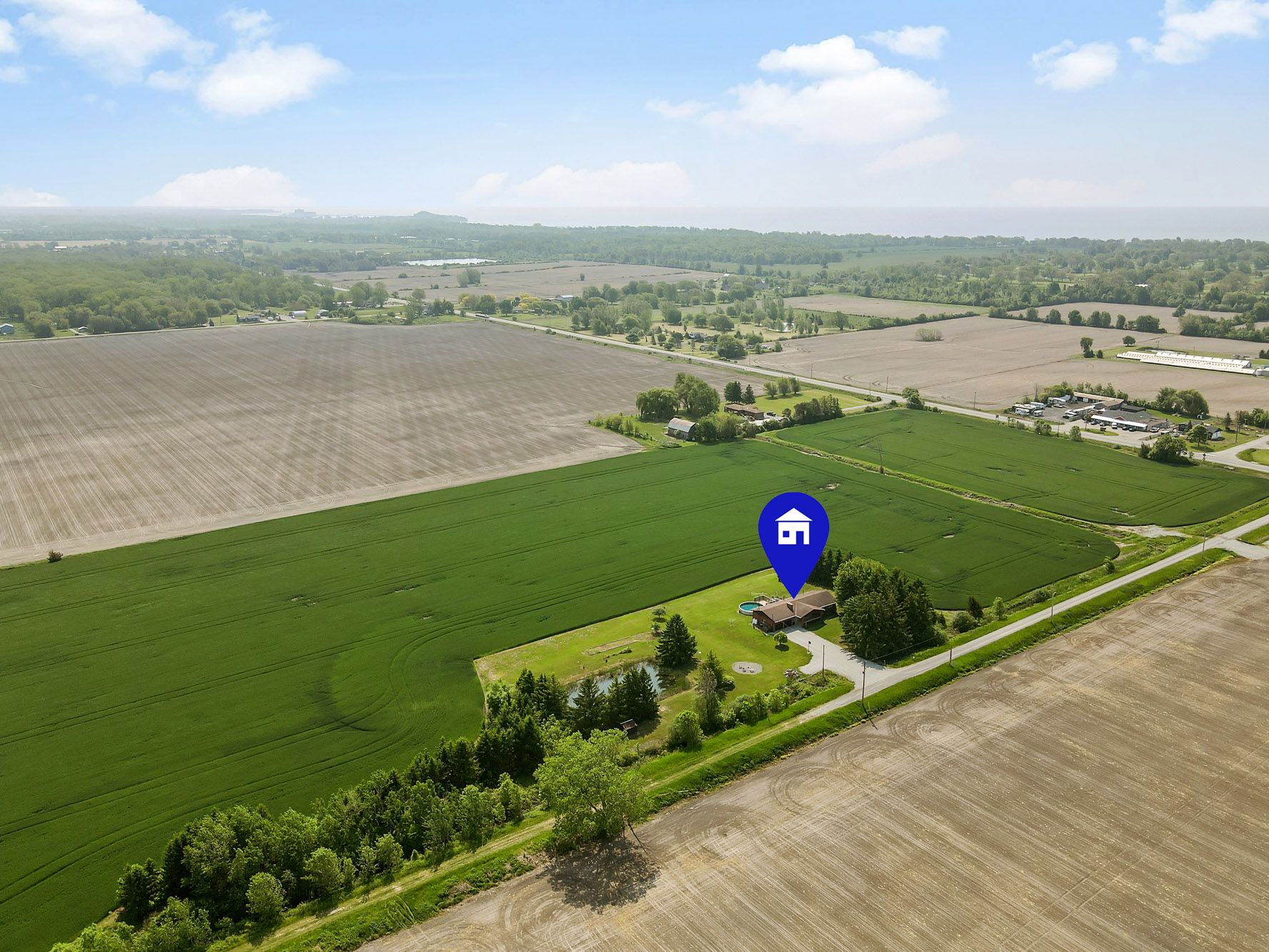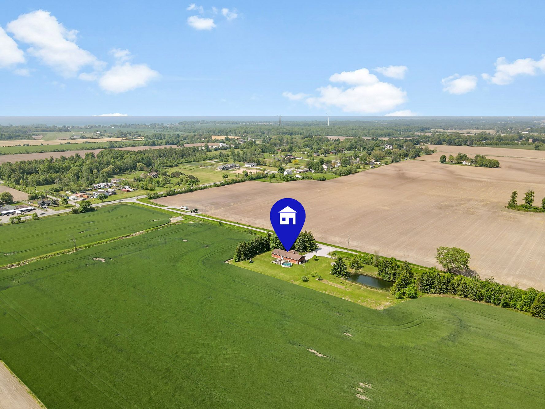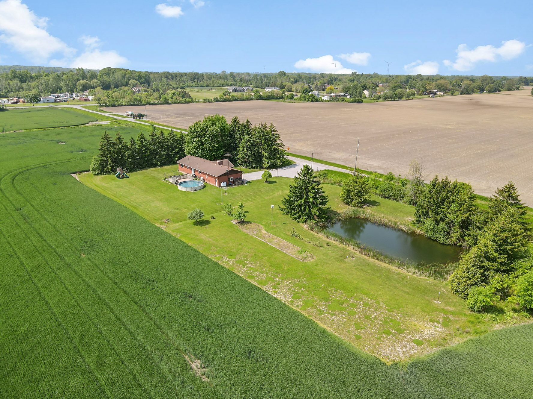 1. 6 acre lot with a pond! Welcome to 21419 outred road, wainfleet where peace, privacy, and charm meet. This beautifully updated brick bungalow sits on a spectacular 1. 6-acre lot, completely surrounded by cornfields, open farmland, and mature trees, offering a level of seclusion and serenity that's hard to find. Located on a private road that's municipally maintained. Enjoy your own slice of paradise with a private pond, above-ground pool, cement patio, and a cozy fire pit for outdoor entertaining with no neighbours in sight and wide-open views in every direction. Bask in breathtaking sunrises and unwind with stunning sunsets. Inside, the main floor is fully updated and blends modern comfort with rustic charm. The bright living room welcomes you with a stunning wood-burning fireplace, sleek pot lights, and a large front window with a built-in sitting nook the perfect place to curl up with a book and a coffee. The open-concept kitchen and dining area is both functional and stylish, featuring double patio doors to the backyard, farmhouse-inspired cabinetry, butcher block countertops, glass accent cabinets, stainless steel appliances, and a classic tile backsplash that ties it all together beautifully. The main floor offers three spacious bedrooms, each filled with natural light and generous closet space, along with a gorgeous five-piece bathroom that's been thoughtfully renovated. Head downstairs to discover a large rec room, a fourth bedroom currently used as a home office and a bonus room. There's also a second full bathroom with a soaker tub, laundry area, and plenty of storage. An oversized double-car garage and extra-long driveway provide ample parking for vehicles, toys, and guests. Whether you're lounging poolside, hosting a summer bbq, or enjoying quiet mornings by the pond, this property delivers a lifestyle of space, and comfort. Book your showing before it's too late!