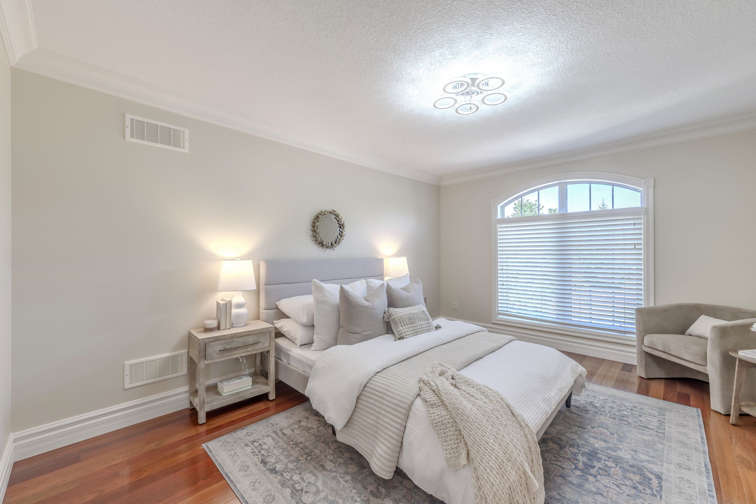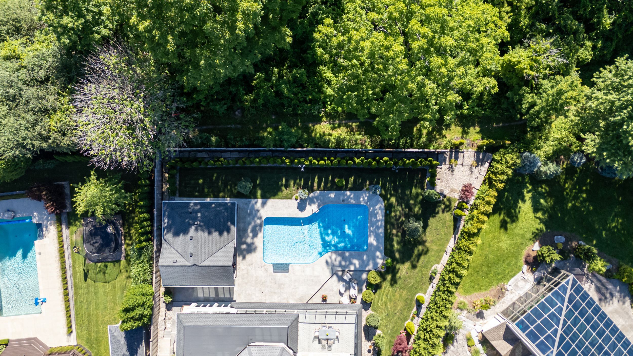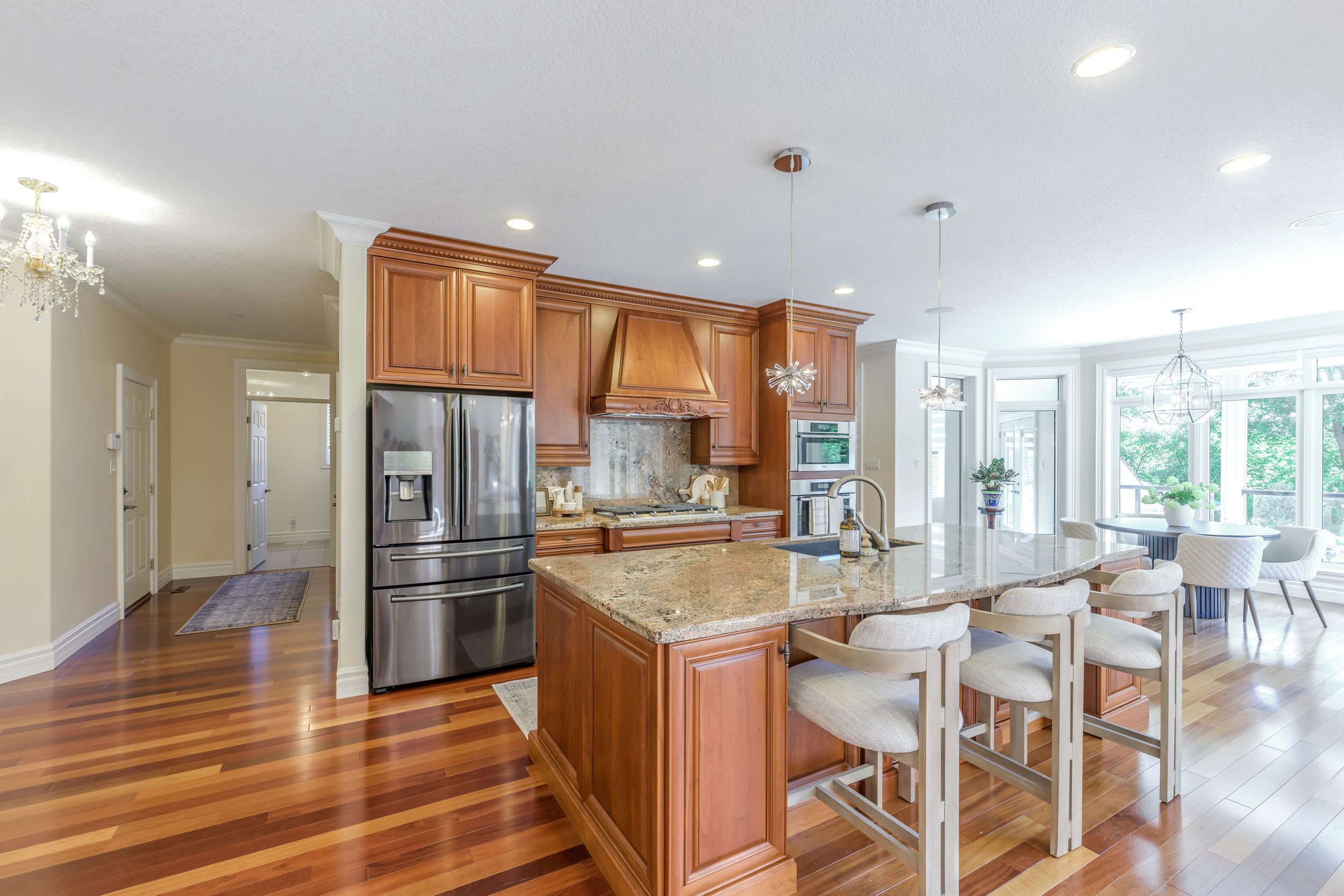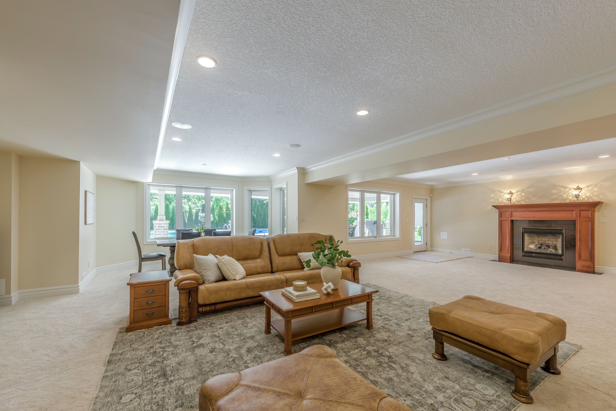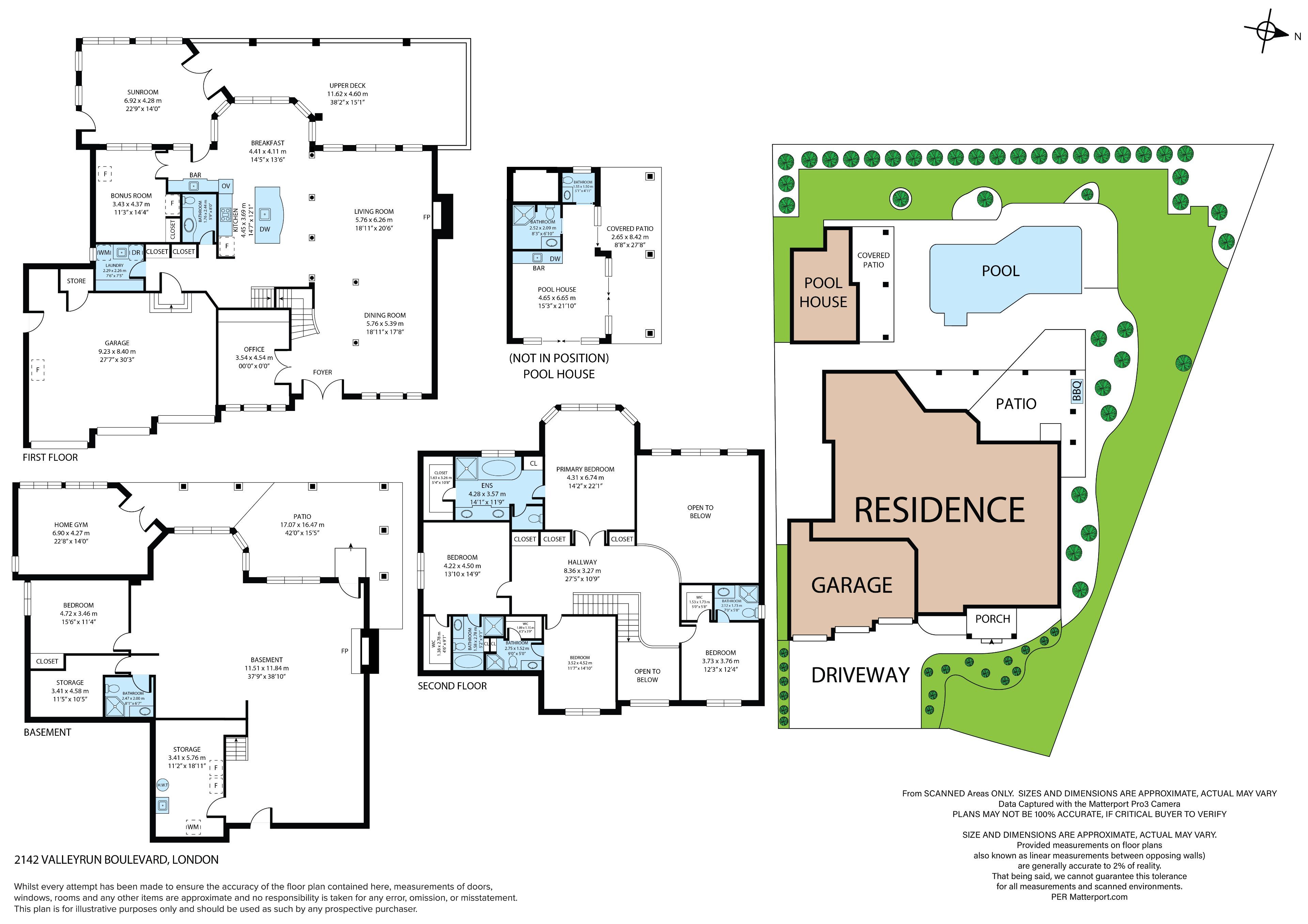 Nestled at the end of a quiet cul-de-sac in one of sunningdale's most prestigious enclaves, this extraordinary executive residence offers approximately 6,500 sq. Ft. Of luxurious living space backing directly onto the protected medway valley heritage forest. A stately stone façade with contrasting stone voussoirs crowning the arched windows and triple-car garage introduces architectural drama and elegance for a commanding first impression. Professionally landscaped grounds with sculptural evergreens, gardens, and elegant accent lighting establish the refined tone carried throughout the home. At the centre, a grand double-door entry framed by a soaring arched portico and transom glass invites you into the interior with a sense of architectural grandeur. Inside, soaring ceilings and a double-height great room with a dramatic wood and stone fireplace showcase a spectacular wall of windows framing tranquil forest views. Rich brazilian cherry hardwood adds warmth throughout. The crystal chandelier, arched transoms, formal dining area, and gallery-style overlook enhance opulence. The chef's kitchen features full-height cherry cabinetry, granite surfaces, upscale built-in appliances, a window-wrapped dinette, and a custom wet bar. A separate morning room opens to the upper deck with glass railings. A bonus room serving as an oversized pantry and a richly appointed office with custom cherry millwork elevate the main floor. Upstairs, the solid wood staircase ascends to a sunlit landing. The primary suite offers forest views, two walk-ins, and a spa ensuite. All 3 additional bedrooms enjoy ensuite access. The walkout level includes a guest room, full washroom and a family room/games/media fusion with gas fireplace. Separate gym with private patio access. Outside enjoy lush gardens, saltwater sport pool, extensive hardscaping & gate to the forest. The fully outfitted cabana with vaulted ceiling, wet bar, and full bath is ideal for entertaining or overnight guests.