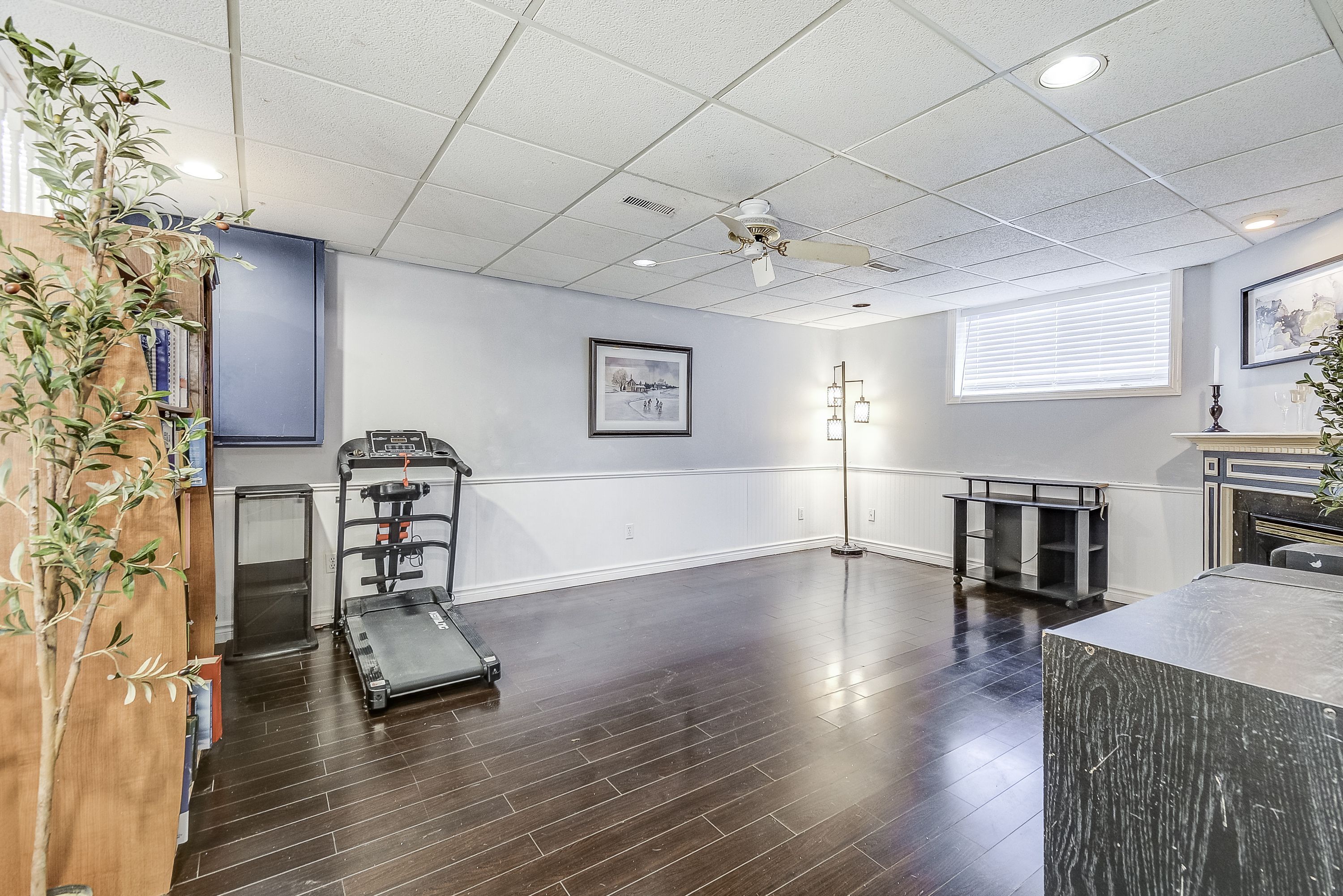 • Bright lower-level family room with gas fireplace and ample storage space.