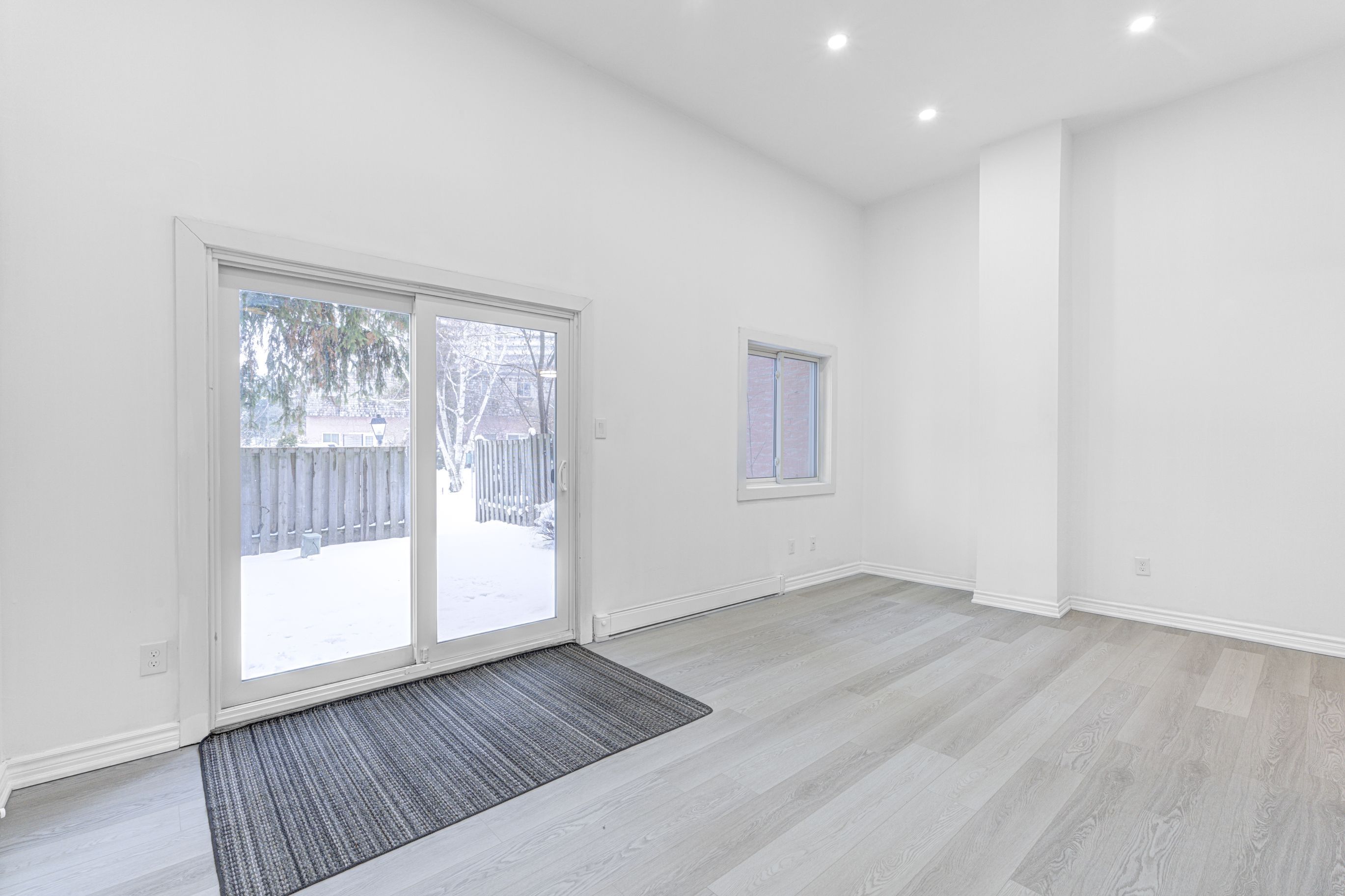 • Bright open-concept living and dining area with private patio access.