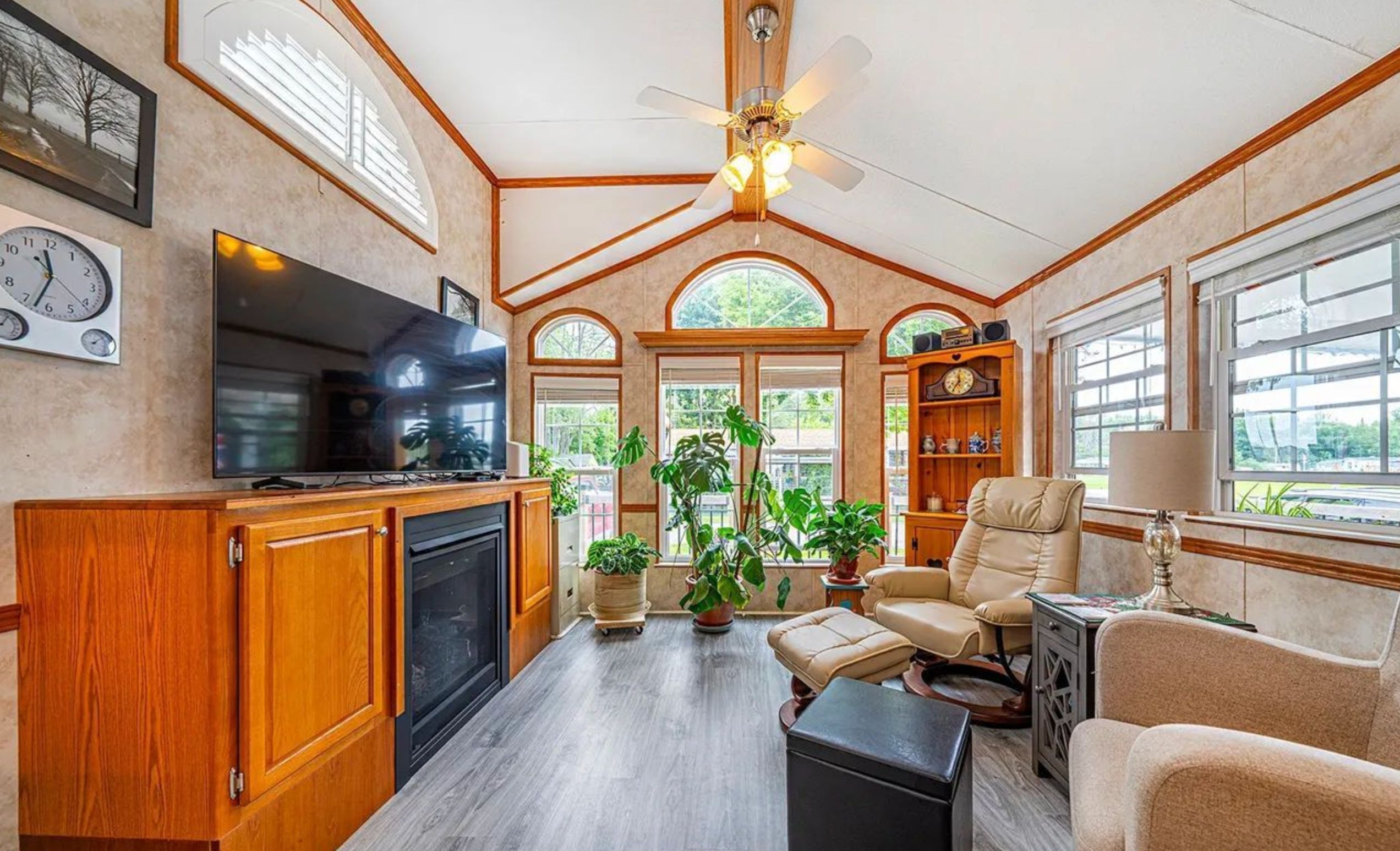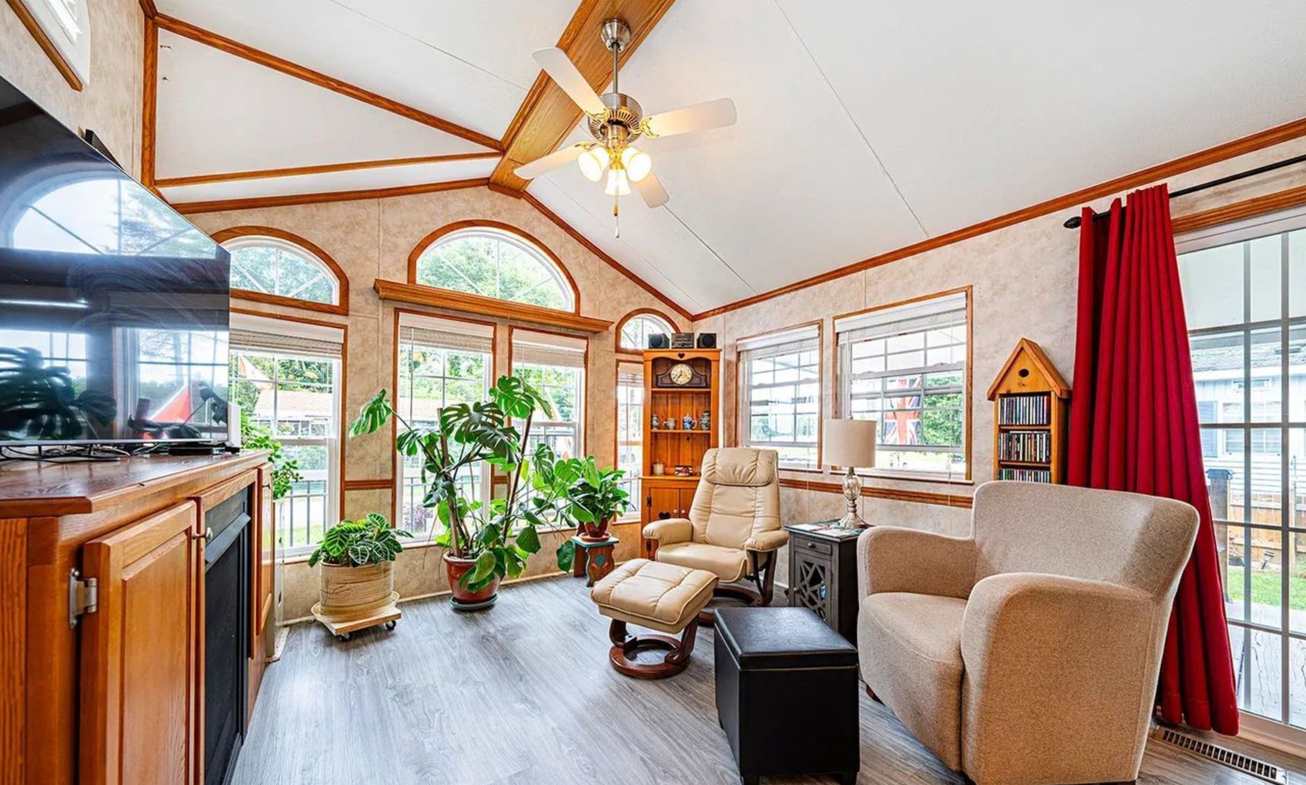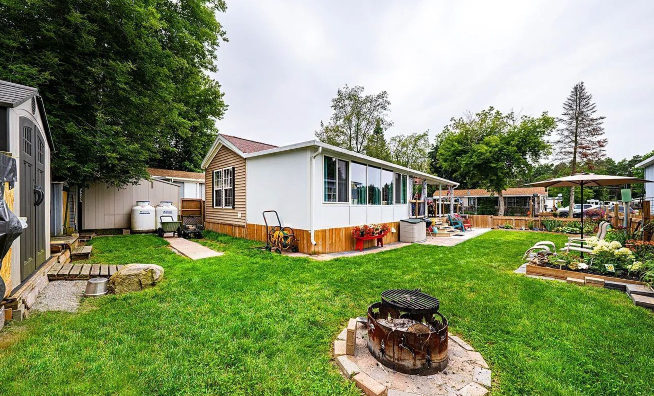 Welcome to your slice of paradise in the heart of vlahos trailer park lot 3! This 1-bed, 1-bath heritage park model trailer offers a seamless blend of comfort, style, and convenience. Step inside to a bright, modern interior featuring a cozy living room with an electric fireplace the perfect spot to curl up with a book or enjoy movie nights. A sunroom extension adds extra space for relaxation or entertaining, while the open kitchen and dining area provide everyday functionality. Outside, the expansive wrap-around deck invites you to soak up the sun or host gatherings with ease. Surrounded by mature gardens, a charming firepit, and three sheds for storage and toys, theres no shortage of outdoor enjoyment or practicality. Parking for two vehicles. With its turnkey convenience, affordable living, and warm community setting, this property is a true oasis. Dont miss your chance to experience everything this home has to offer schedule your viewing today!