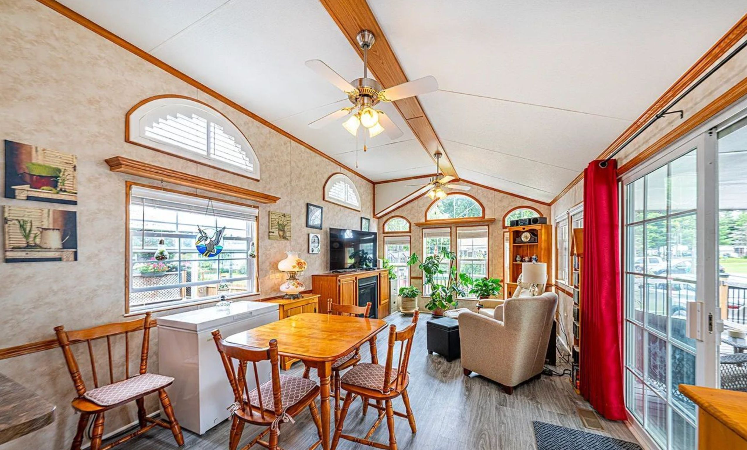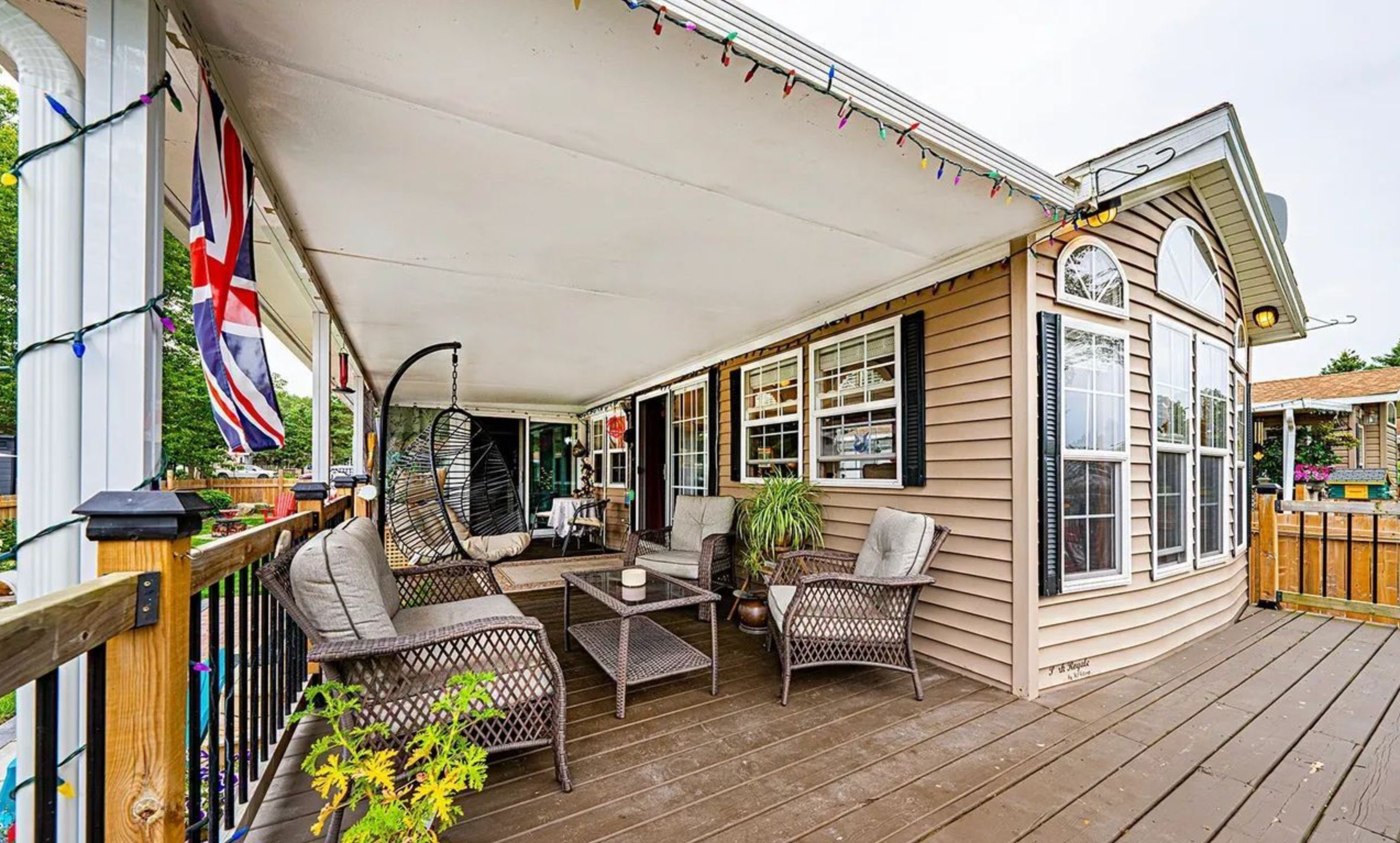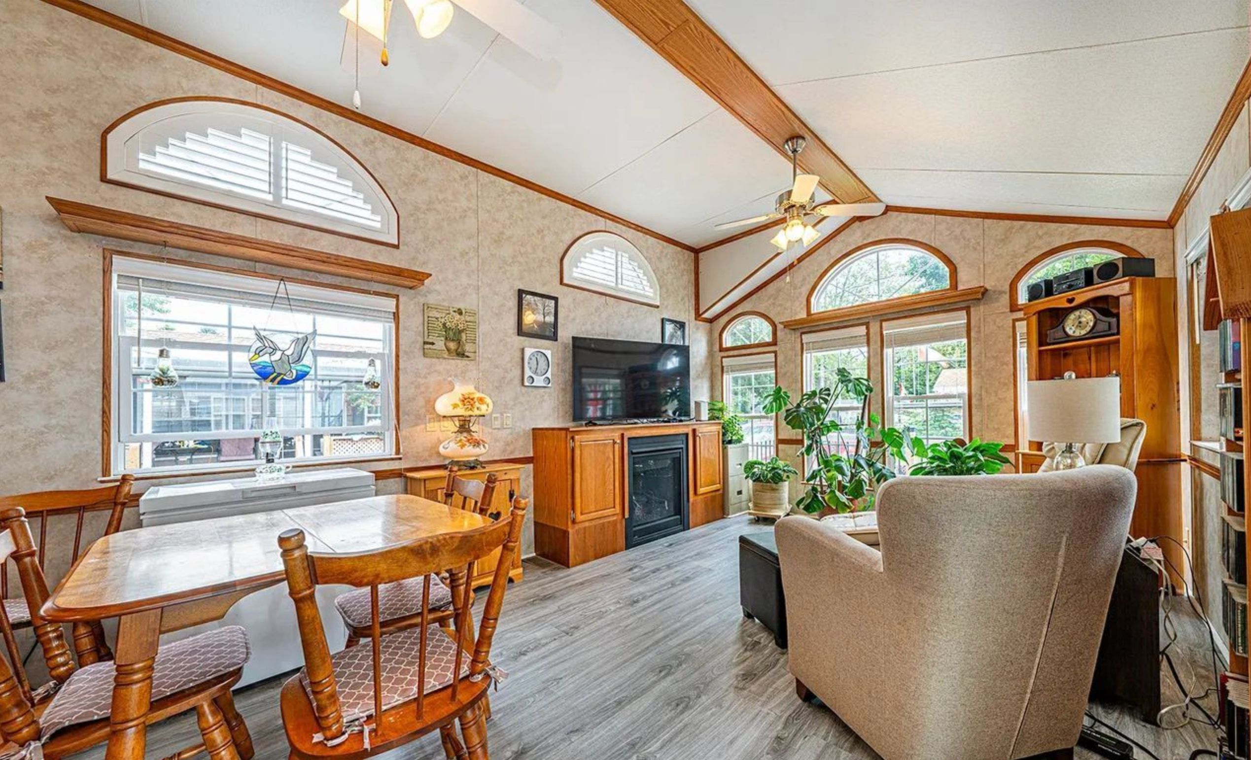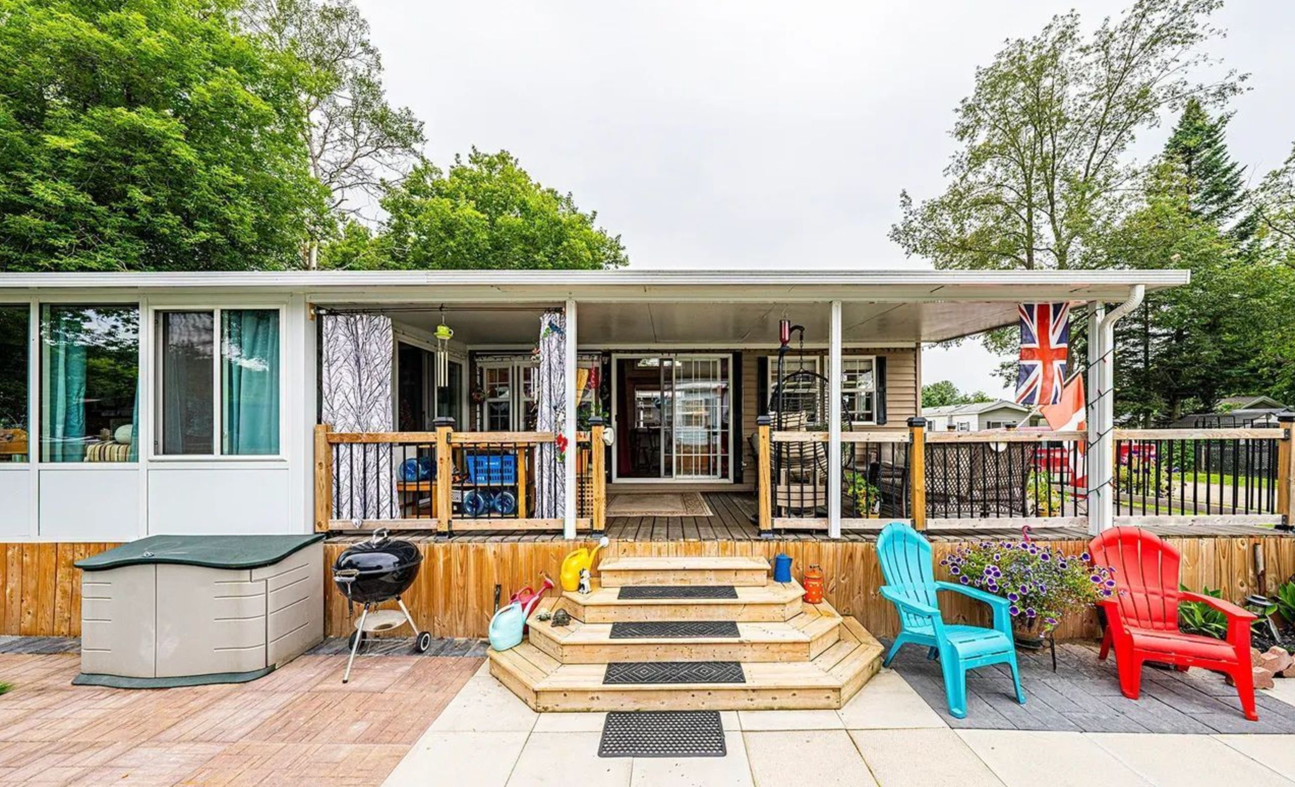 Welcome to your slice of paradise in the heart of vlahos trailer park lot 3! This 1-bed, 1-bath heritage park model trailer offers a seamless blend of comfort, style, and convenience. Step inside to a bright, modern interior featuring a cozy living room with an electric fireplace the perfect spot to curl up with a book or enjoy movie nights. A sunroom extension adds extra space for relaxation or entertaining, while the open kitchen and dining area provide everyday functionality. Outside, the expansive wrap-around deck invites you to soak up the sun or host gatherings with ease. Surrounded by mature gardens, a charming firepit, and three sheds for storage and toys, theres no shortage of outdoor enjoyment or practicality. Parking for two vehicles. With its turnkey convenience, affordable living, and warm community setting, this property is a true oasis. Dont miss your chance to experience everything this home has to offer schedule your viewing today!
