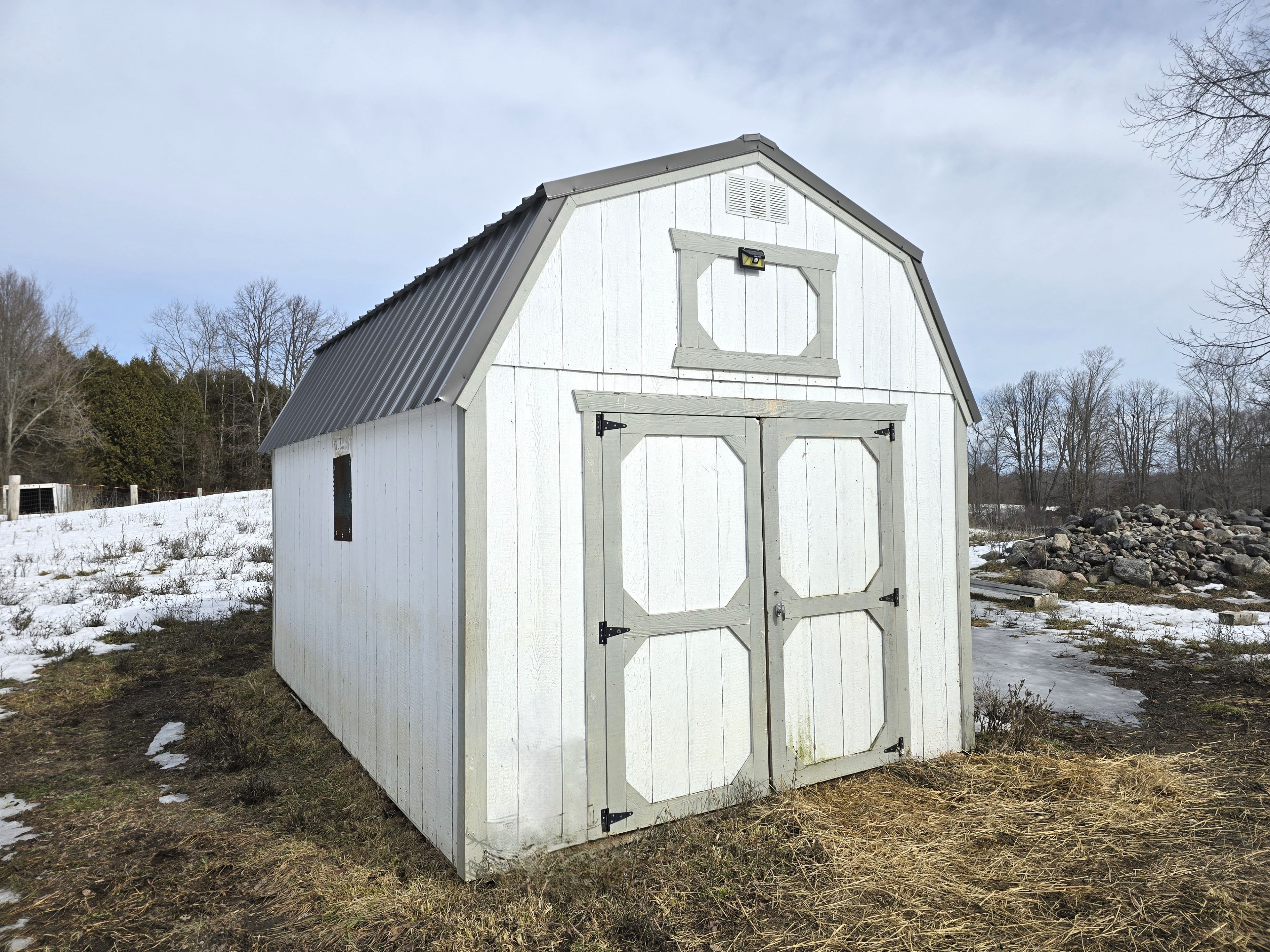 • Multiple outbuildings including a barn, dog kennel, and chicken coop.