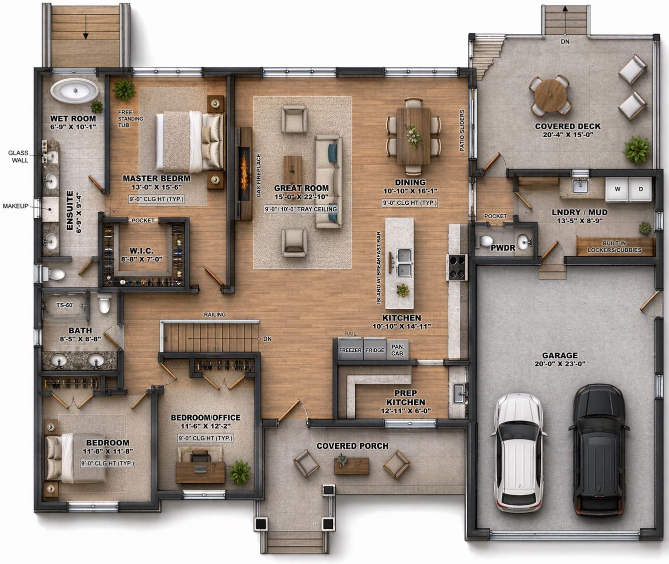 • Chef-inspired kitchen with a large island and dedicated prep area.