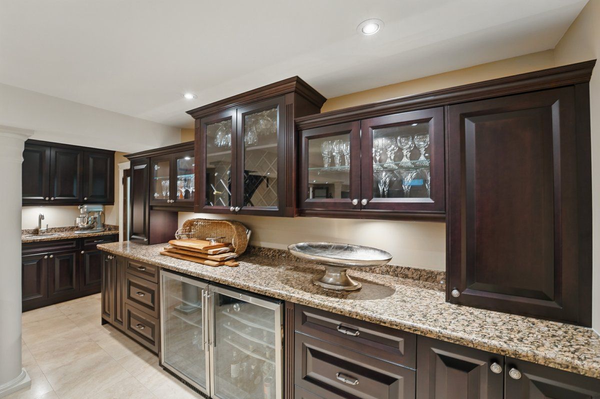 • Custom eat-in kitchen with high-end Viking appliances and granite countertops.