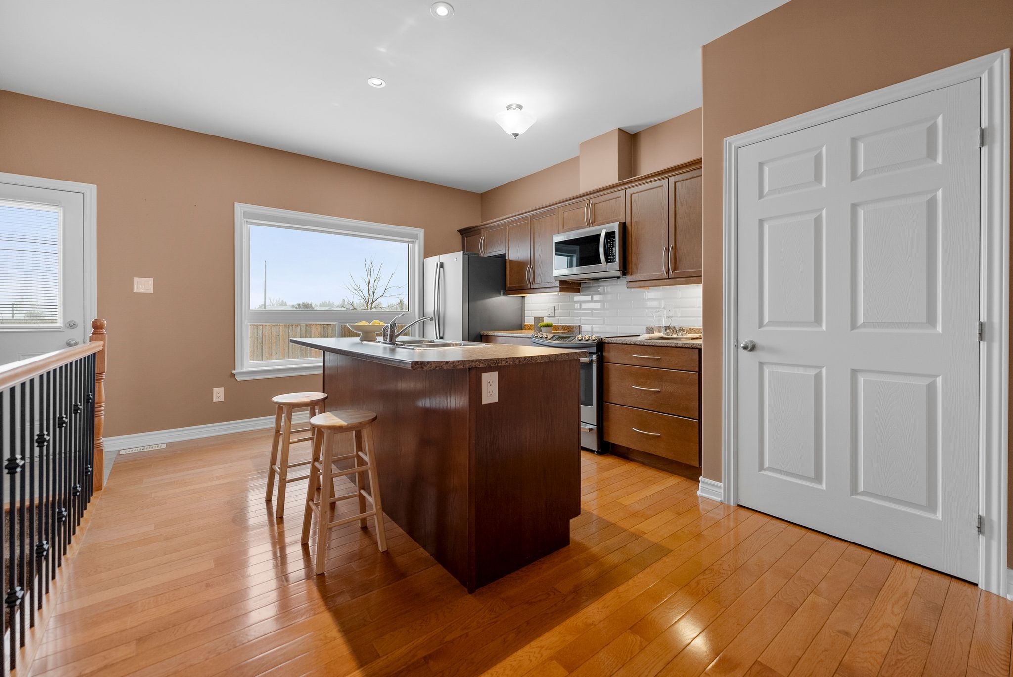 Welcome to 215 arthur street, in the charming town of arnprior! This immaculate bungalow is in move in ready condition, located in one of arnprior's most desirable neighbourhoods. Step into the spacious foyer that welcomes you into a sun filled living room featuring soaring cathedral ceilings, a cozy natural gas fireplace and an eye catching palladium window. The dining room flows seamlessly from the living space, making entertaining effortless. The kitchen is both stylish and functional with views of the madawaska river, stainless steel appliances, a large pantry, and a center island with double sink- perfect for everyday living and hosting. The generous primary suite offers a wall of closets and a private 3 piece ensuite. A good sized second bedroom with ample storage and is the only room with carpet, a full bathroom and convenient main floor laundry complete the level, all enhanced by the 9 foot ceilings throughout. The lower level is unfinished yet thoughtfully framed and includes a rough in for a full bathroom, providing excellent potential for future living space. Outside enjoy a fully fenced yard, ideal for children, pets or outdoor relaxation. Arnprior is a short 25 minute commute to kanata and offers hospital, library, schools, churches, bowling alley, theatre, public beaches, walking and nature trails, nearby golf courses, the nick smith centre with indoor olympic sized swimming pool and 2 ice surfaces + great shopping. Don't miss your chance to own this beautiful bungalow that perfectly blends modern design, functionality, and warmth. Move in and make it your own!