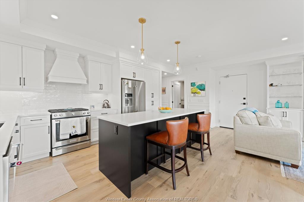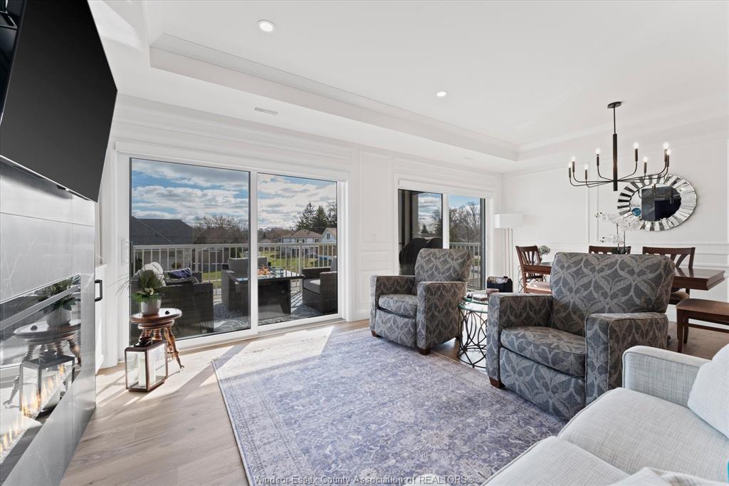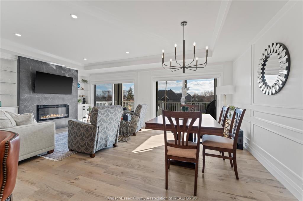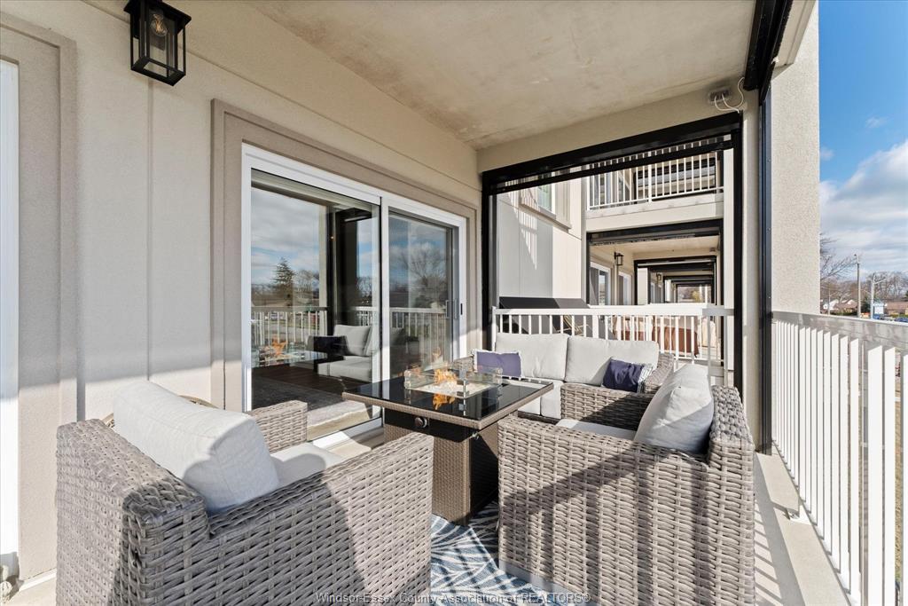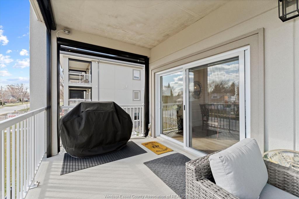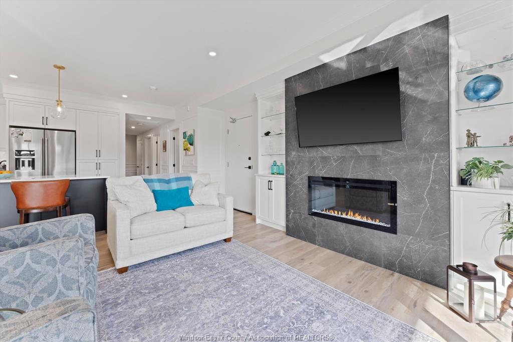 Experience refined living in this boutique luxury condo, thoughtfully designed w/ a bright,open-concept modern layout that seamlessly blends style and functionality. The spacious primary suite is a true retreat, featuring a grand layout, a spa-inspired ensuite with heated floors, and premium finishes throughout. A versatile second bedroom offers the perfect space for guests or a home office to suit your lifestyle. This unique floor plan stands out with two separate entry points w/secured entrances, adding both convenience and privacy. Step outside to an impressive 200 sq. Ft. Balcony, complete with power screens—ideal for relaxing or entertaining in comfort. This residence is loaded with upgrades, including a high-end appliance package, custom built-in bookcase with glass shelving, and power window coverings throughout. An exceptional opportunity to own a sophisticated, move-in-ready home in an exclusive boutique setting in tecumseh.