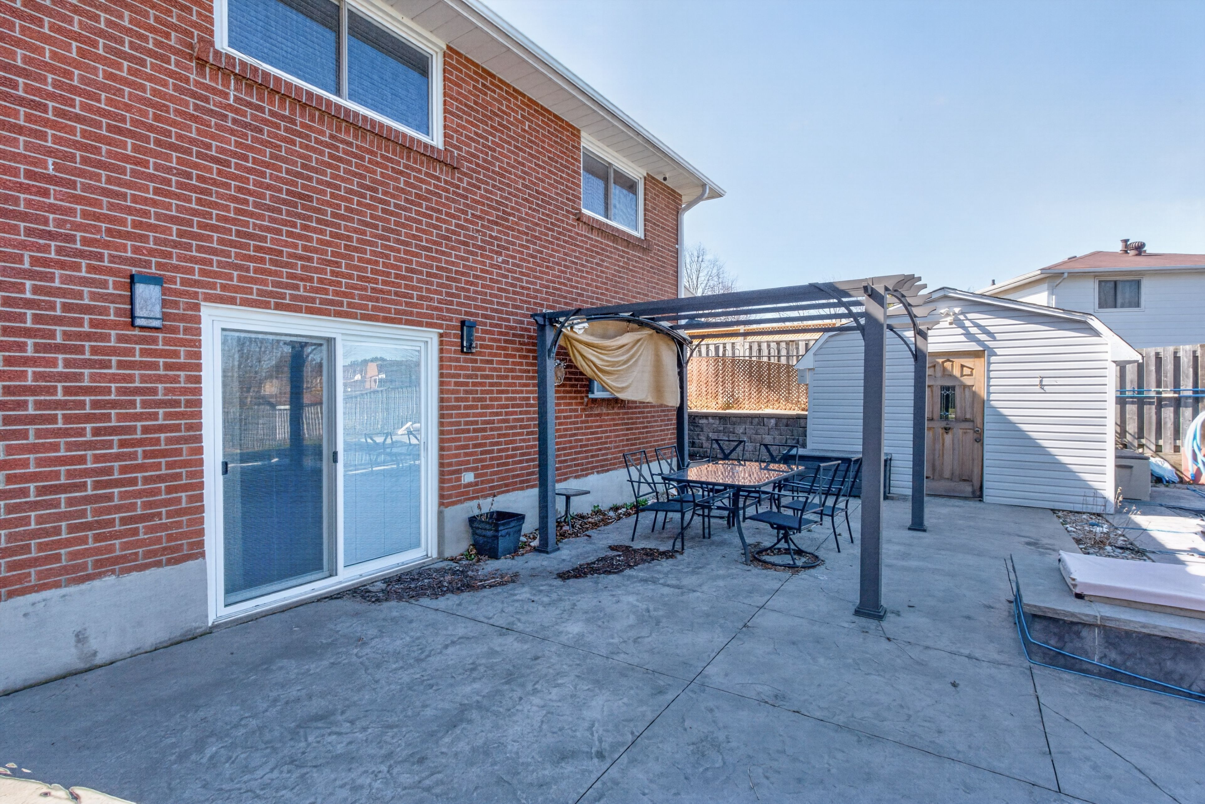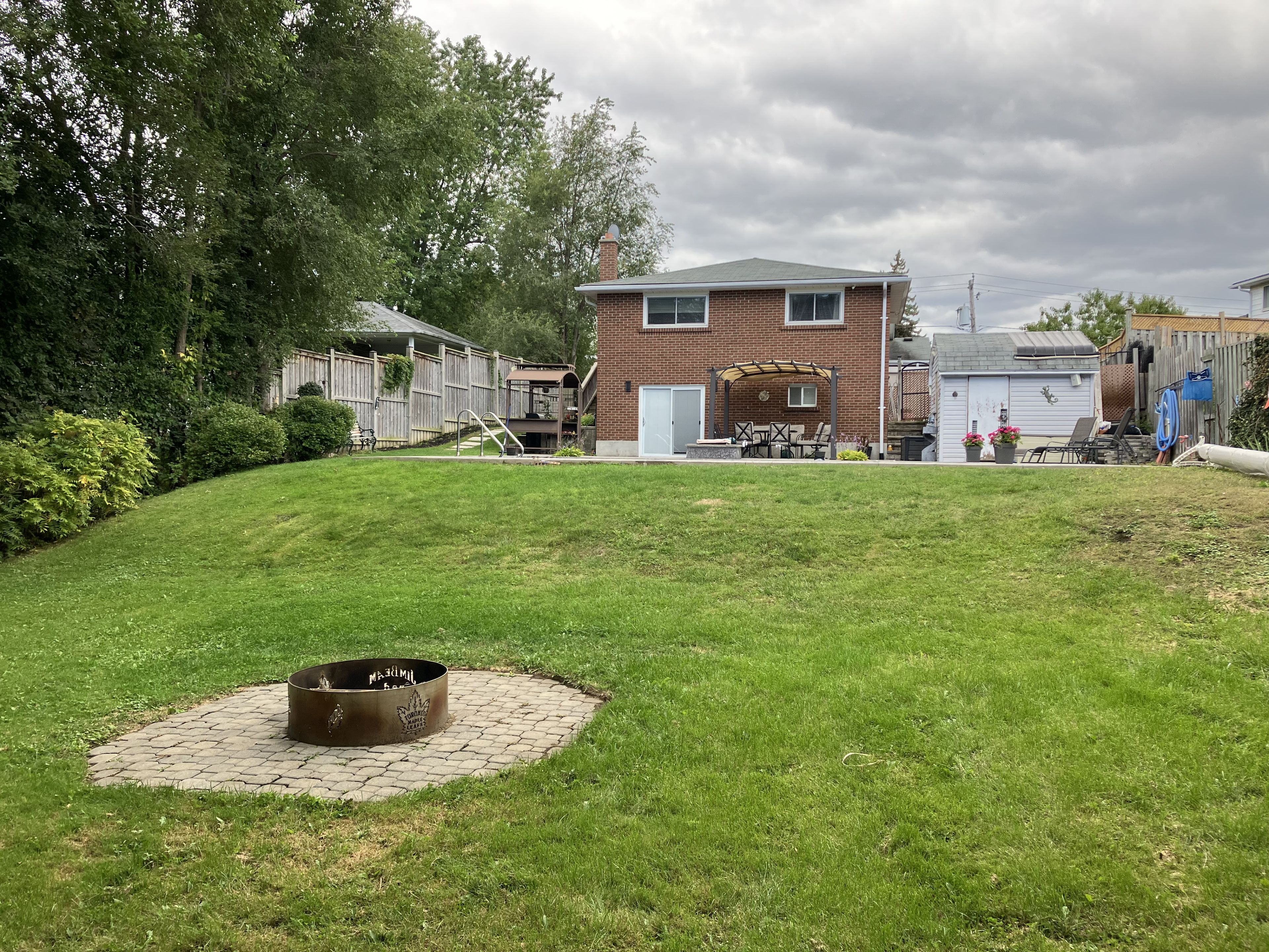 Wow! Offered for the first time since 2002, this well-maintained fully detached raised bungalow in the highly sought-after o'neill community presents an exceptional opportunity. Offering nearly 1,450 sq. Ft. On the main floor, plus an additional 1,000 sq. Ft. On the lower level, this spacious home provides versatility for growing families or multigenerational living. The main floor features three generous bedrooms, a bright living room, functional kitchen, inviting family room, and a newly renovated three-piece bathroom complete with a walk-in shower. The lower level offers a separate entrance, two additional bedrooms, a recreation room, second kitchen, another three-piece bathroom, above-grade windows, and a walk-out to the spectacular backyard. Set on an impressive 61 ft x 215 ft lot, the outdoor space is truly a standout feature. Enjoy summer living at its finest with a stone patio, gazebo, barbecue shelter, fire table, cabana, and a stunning 16 ft x 32 ft salt-water inground pool featuring a new liner and steps installed in 2025. Beyond the pool area, the gently sloping yard leads to a second tier featuring additional green space, a cozy firepit, and a garden shed. Fully fenced for privacy and backing onto coronation public school and kingsview united church, this property offers the rare benefit of open green space and no rear neighbours. Ideally situated for commuters, this fantastic location offers quick and convenient access to highways 401 and 407, with all everyday amenities close at hand, including costco, grocery stores, lcbo, banks, restaurants, and much more. A remarkable home inside and out, ready for its next chapter.