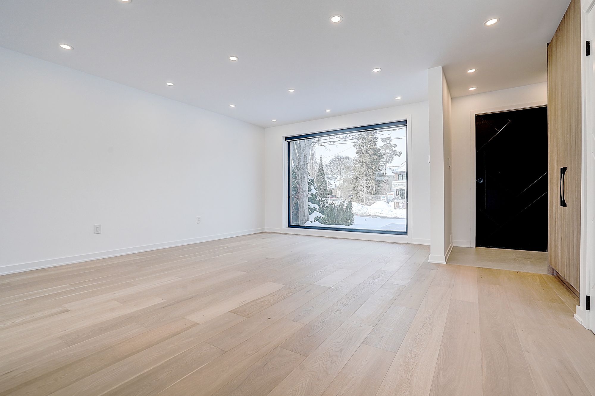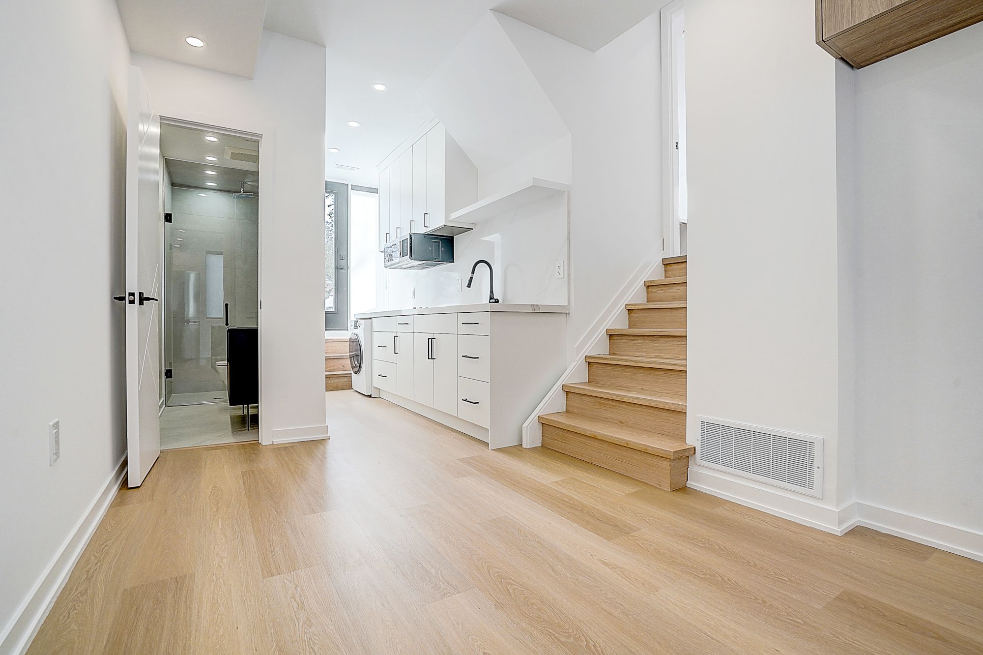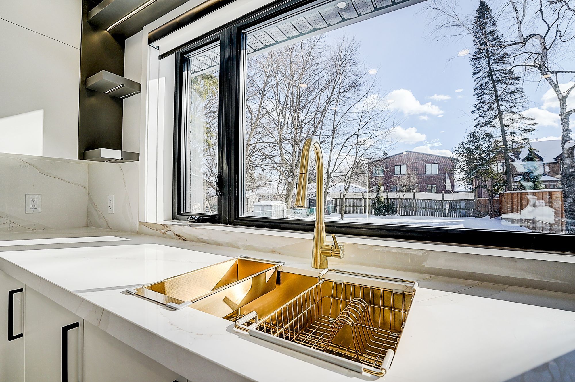A masterfully reimagined luxury detached residence completely rebuilt from the studs with uncompromising attention to detail, this exceptional 3+1 bedroom residence showcases refined design and superior craftsmanship throughout. Featuring all-new plumbing, a state-of-the-art hvac system, upgraded electrical, premium new flooring, and professionally spray-foam insulated exterior walls, the home offers outstanding energy efficiency, comfort, and long-term performance natural light pours through all-new windows, highlighted by a breathtaking panoramic living room features window and an impressive 8-foot sliding glass door that seamlessly extends the living space onto the private deck-creating an effortless indoor-outdoor lifestyle enhanced by freshly sodded a fenced rear yard with lush green lawn, five-car parking including a single-car garage throughout the home, all-new modern designer blinds provide privacy while enhancing the clean, contemporary aesthetic. The home offers two beautifully appointed modern 4 piece bathrooms thoughtfully designed with sleek finishes and elegant curb-less showers for a seamless spa-inspired experience. All bedrooms, along with the main entrance, feature custom- built-in closets complete with integrated drawers, offering both refined organization and sophisticated functionality. Two designer custom kitchens boast bespoke cabinetry, contemporary finishes, and elevated functionality-ideal for multi-generational living or a sophisticated in-law suite. Custom double-panel interior doors enhance the home's elegant aesthetic, while the grand luxury fibreglass main entrance door creates a striking first impression with enhanced security and curb appeal. This is not simply a renovation-it is a complete transformation. A rare opportunity to own a meticulously rebuilt, turnkey detached home offering modern luxury, and timeless sophistication.