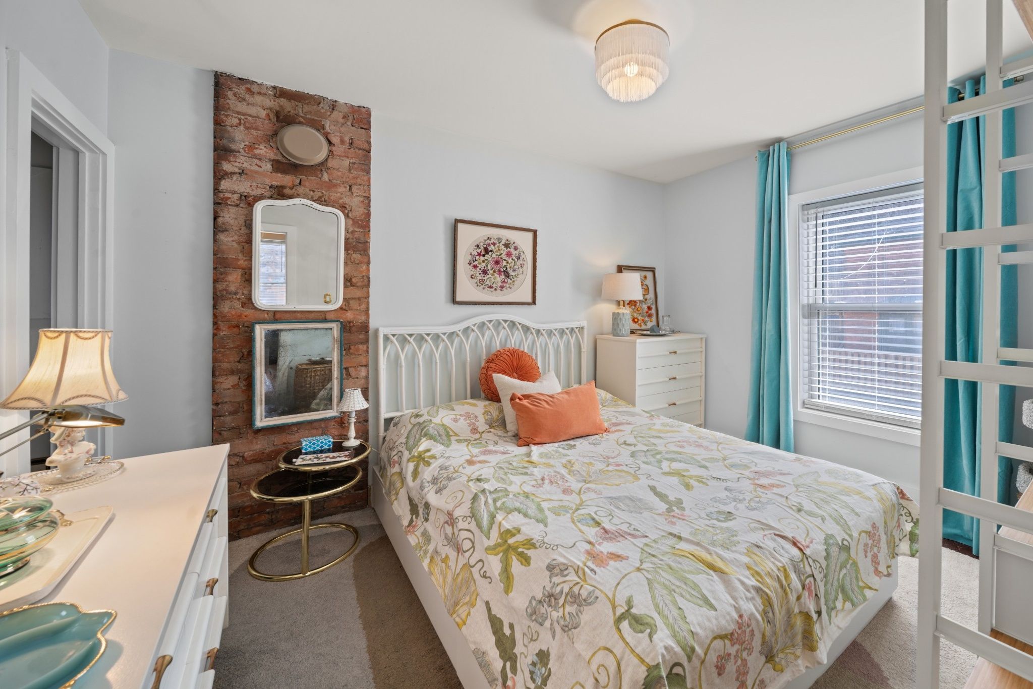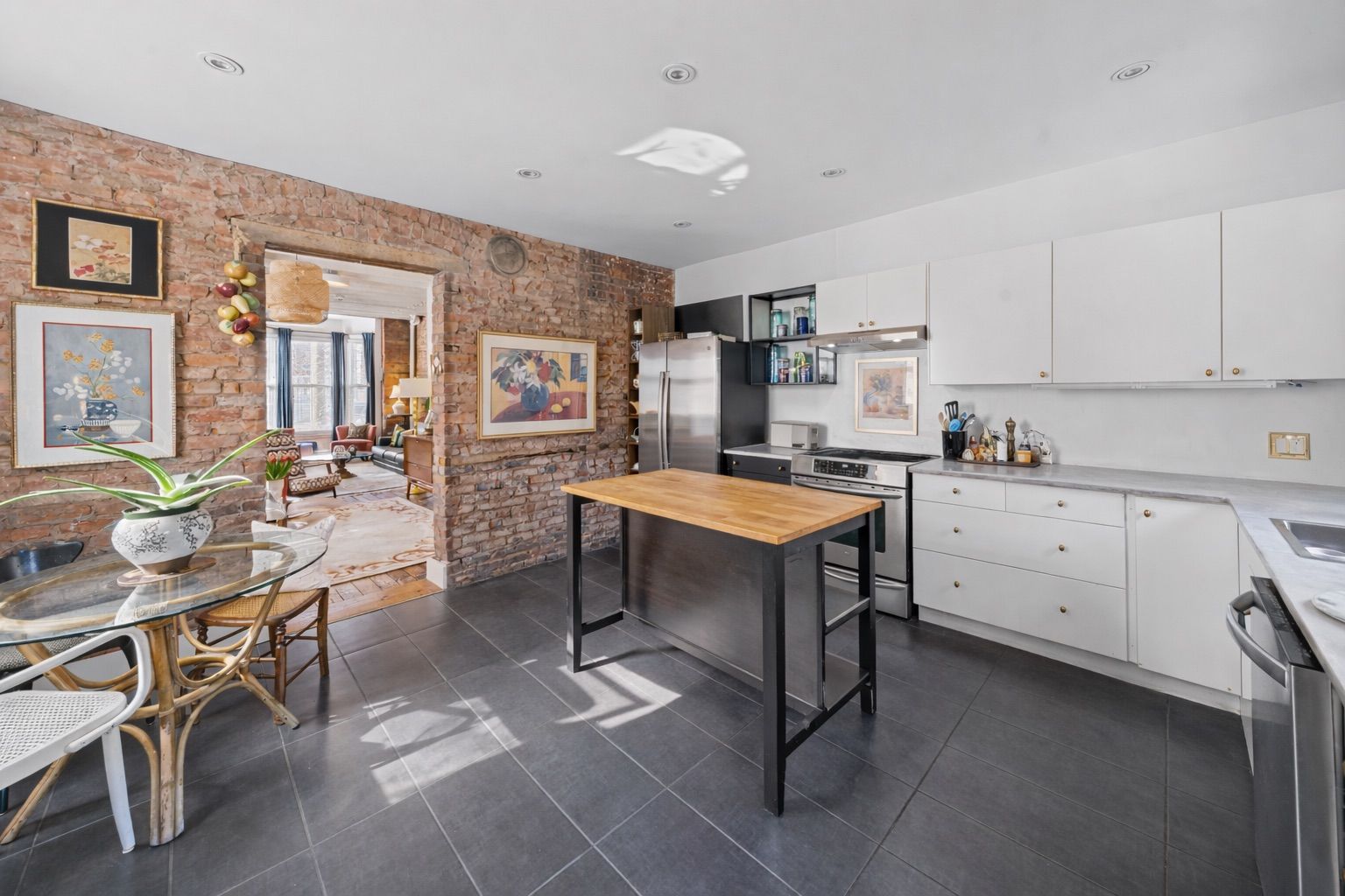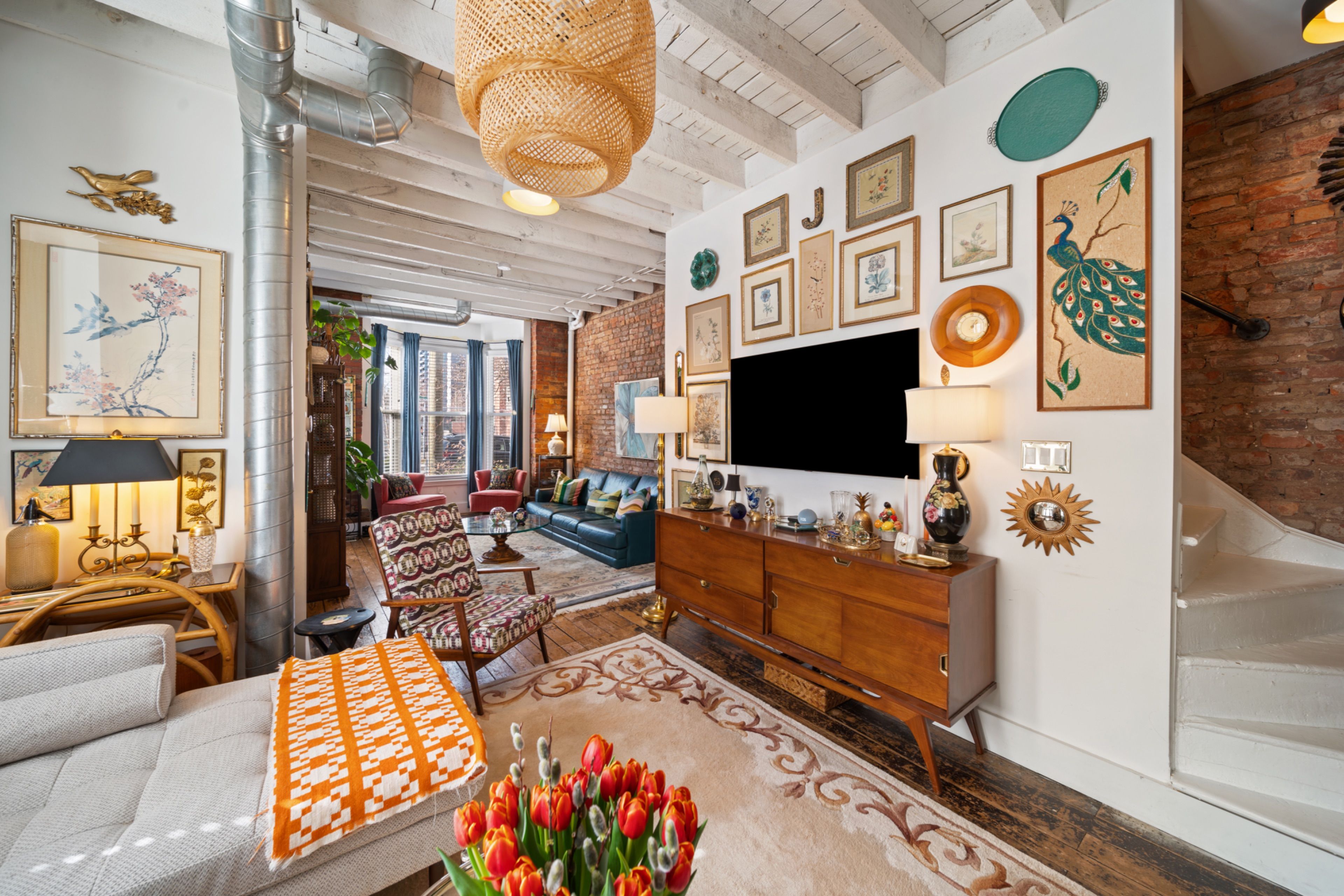 • 10-foot ceilings and exposed brick walls create a bright, inviting space.