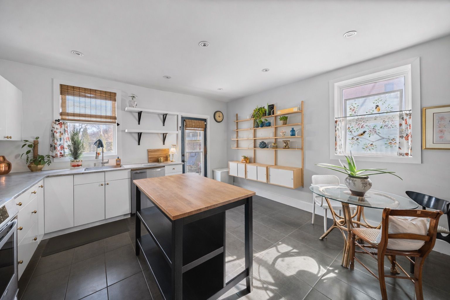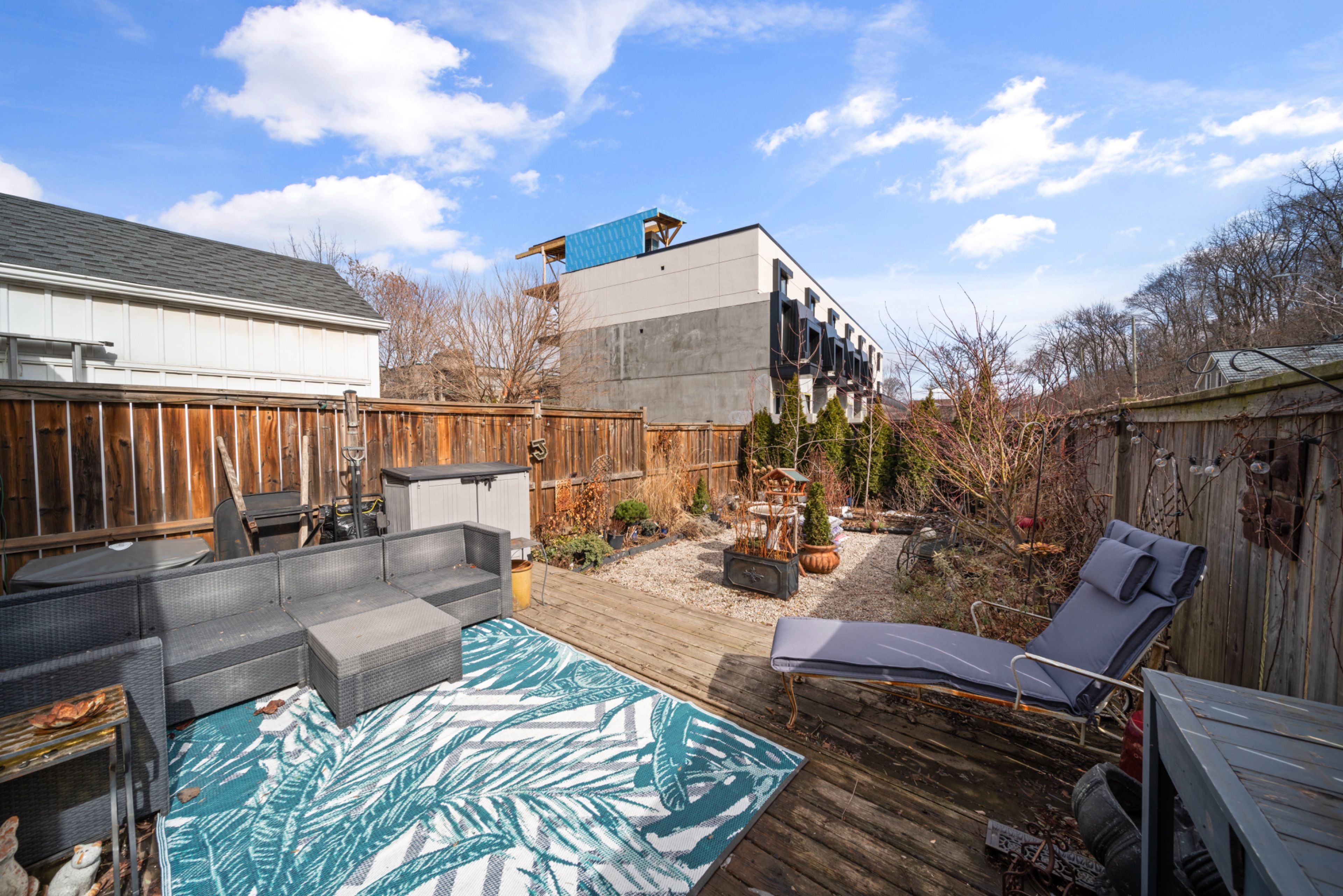 Charming and full of character, this 2 bed, 2 bath end-unit townhome offers a rare blend of historic charm and modern updates. Built in 1886 and beautifully maintained, this historic home features soaring 10-foot ceilings, exposed brick walls, and large windows that fill the space with natural light. The functional layout includes a bright living area, an updated kitchen with a frigidaire induction stove with air fryer (2022), stainless steel ge counter-depth fridge with water and ice (2023), and a dishwasher. Upstairs, you'll find two well-appointed bedrooms along with a convenient second-level stacked washer and dryer. Step outside to a private, fenced backyard including an awning perfect for relaxing or entertaining, along with one dedicated laneway parking space with room for up to two cars. Ideally located on a quiet street just steps to corktown park, the wentworth stairs, king william's vibrant restaurants, cafes, and bars, and directly across from queen victoria elementary school. Homes with this much character and history don't come around often!