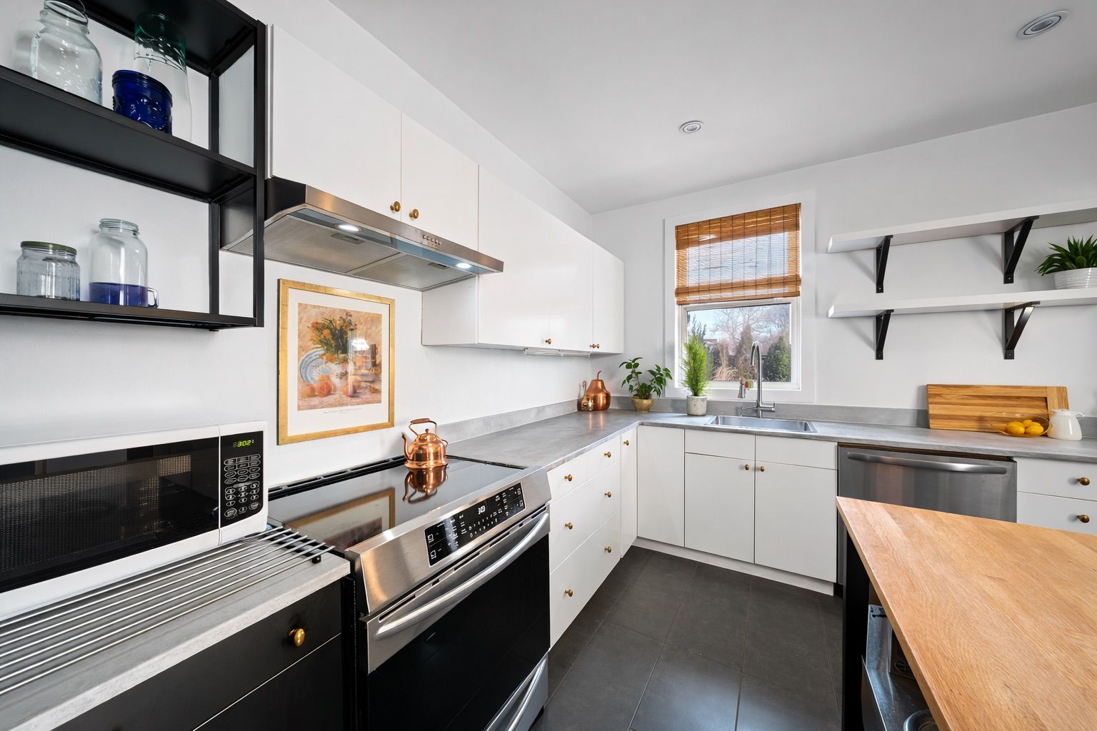 • Updated kitchen equipped with quality stainless steel appliances for convenience.