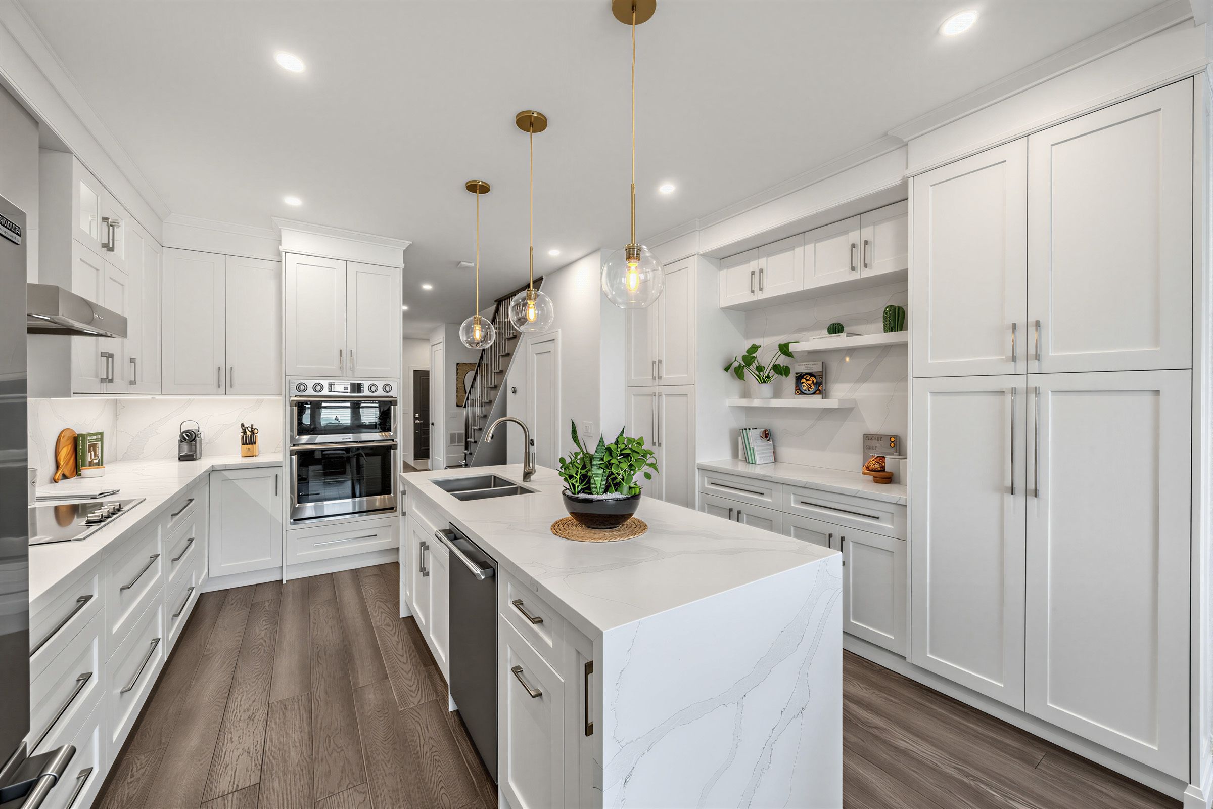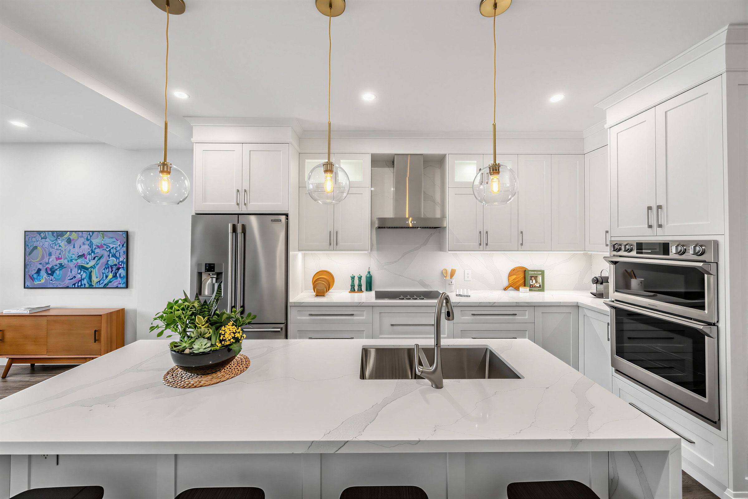 • Custom kitchen with quartz island and abundant cabinetry for cooking enthusiasts.