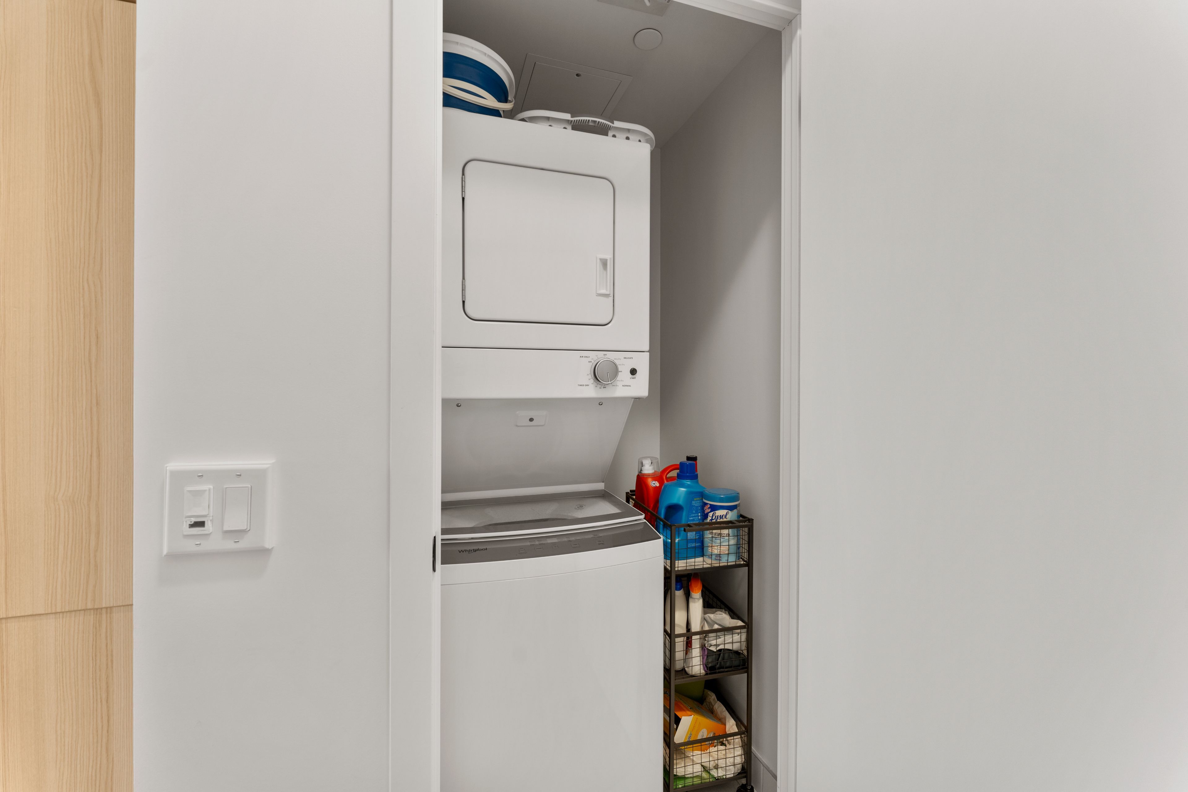 • Modern kitchen with stainless steel appliances and extra storage.