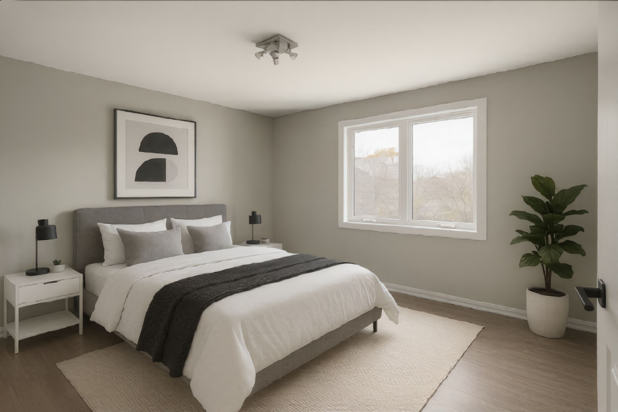 • Spacious open-concept area with large windows for natural light.