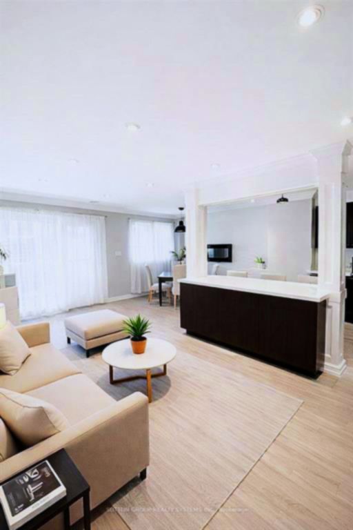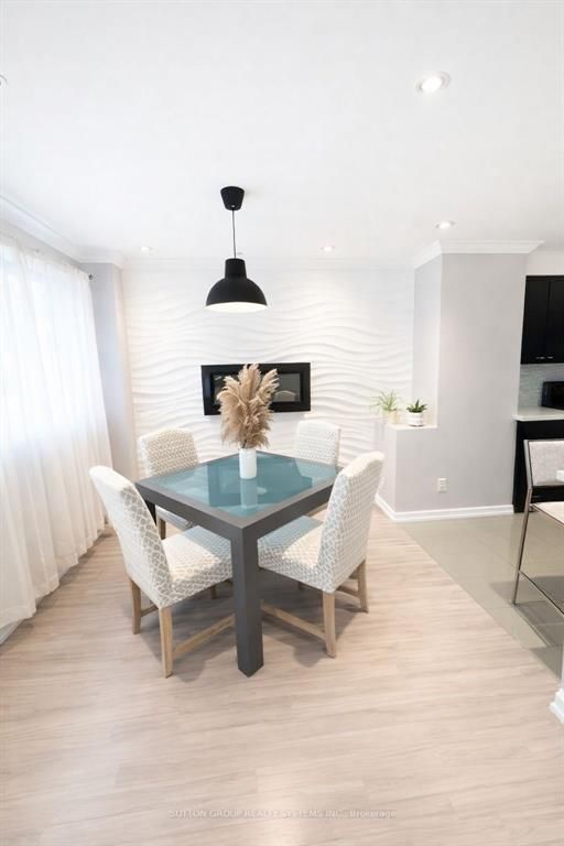 Welcome to this beautifully professionally renovated townhome located in a highly desirable neighbourhood. Spacious open-concept living and dining area with pot lights, ceiling speakers and large windows brining in natural light. Elegant hardwood flooring for a warm, contemporary look. Modern kitchen featuring dark cabinetry, quartz countertops, and an island with accent lighting - perfect for entertaining. Notable feature includes central vac system with convenient kick plate for easy clean-ups. Textured accent wall and built-in electric fireplace. Fully finished basement with pot lights and laminate flooring, laundry room with custom cabinetry and quartz countertops. The basement is ideal as a family room, recreation area, home office or guest suite. Upstairs, you'll find 3 spacious bedrooms with custom closet organizers and updated bathroom with integrated accent lighting. Enjoy outdoor living with a private backyard, perfect for relaxing or entertaining. Parking perks, enjoy the convenience of an attached single car garage plus a sought after two-car driveway providing generous parking space for residents and guests alike. This townhome is within walking distance to (miway & go), schools, parks, grocery stores. Close to all major highways (403/401/qew). Move-in ready - just unpack and enjoy modern living at its finest! High speed internet included in maintenance. Some photos are virtually staged.