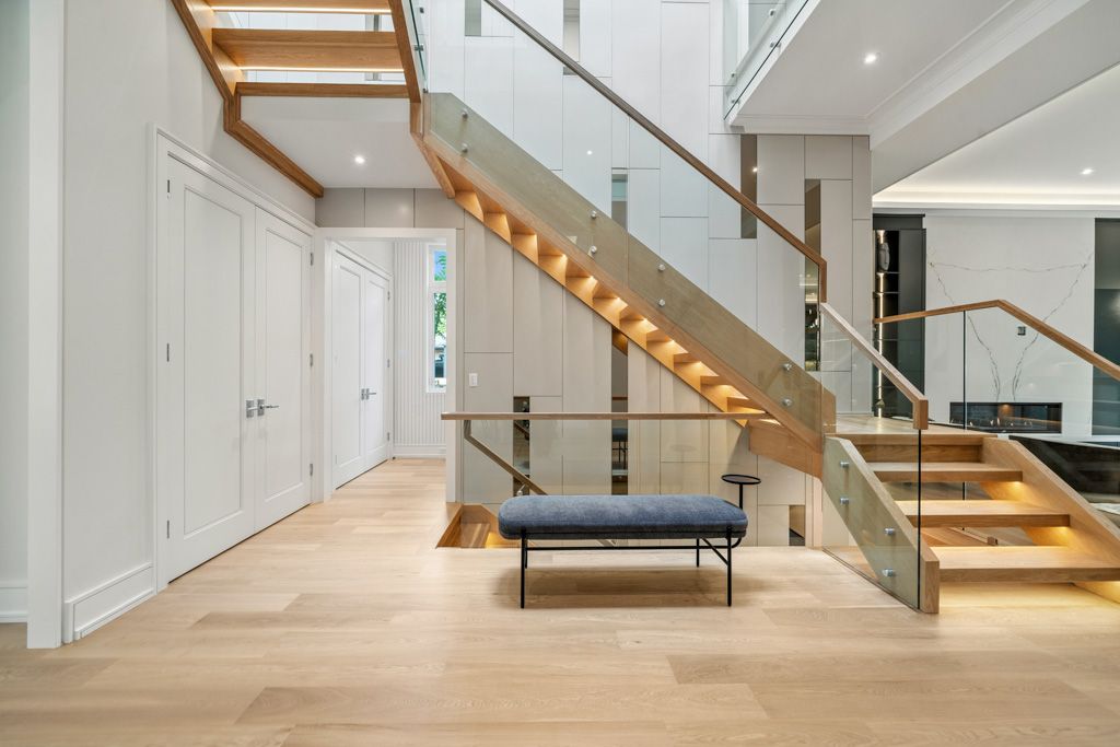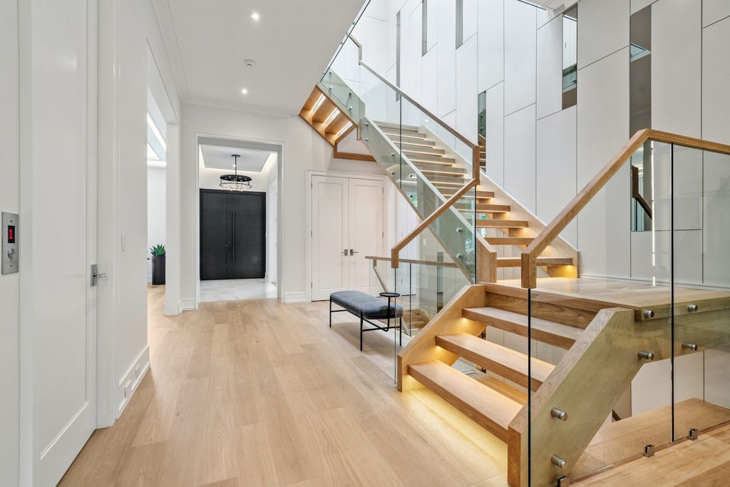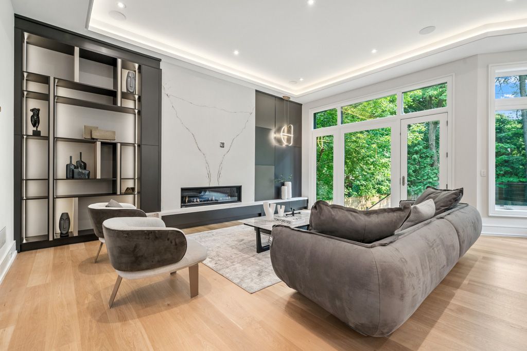 Exceptional custom home in willowdale. A true masterpiece of design, quality, and craftsmanship. Featuring soaring 12-ft ceilings on the main floor, 10 ft on the second, and 9 ft in the basement, this sun-filled home boasts a perfect balance of grandeur and warmth. The elegant main floor welcomes you with a heated foyer, formal living and dining rooms with a feature marble fireplace, and a private office ideal for working from home. The chef-inspired kitchen is equipped with premium thermador appliances, including a built-in coffee machine, oversized fridge/freezer, gas cooktop, and a walk-in pantry with a built-in beverage cooler. The open-concept family room and breakfast area walk out to an extra-large deck with glass railing and a professionally landscaped backyard with built-in outdoor speakers, perfect for indoor-outdoor living. State-of-the-art home automation includes built-in audio in the family room, kitchen, dining room, primary bedroom, ensuite bathroom, basement rec room, and backyard. Additional features include a video surveillance system with 4 exterior cameras, an intercom system on both levels, and two zoned hvac systems with smart thermostats. Upstairs, the luxurious primary suite features a spa-like 5-piece ensuite with a heated floor and an oversized walk-in closet. The second and third bedrooms each enjoy their own 4-piece ensuite bathrooms and walk-in closets. A central skylight brings natural light into the upper hall. The fully finished basement with radiant heated floors includes a guest bedroom, full 3-piece bathroom, bar with island and wine rack, and a spacious recreation area ideal for a home gym, theater, or in-law suite. Additional highlights include: heated front porch and front steps for winter safety, two independent hvac systems, smart lighting control throughout main areas and exterior, premium finishes and materials throughout, and masterpiece lighting design. An unmatched offering--this home must be seen to be truly appreciated