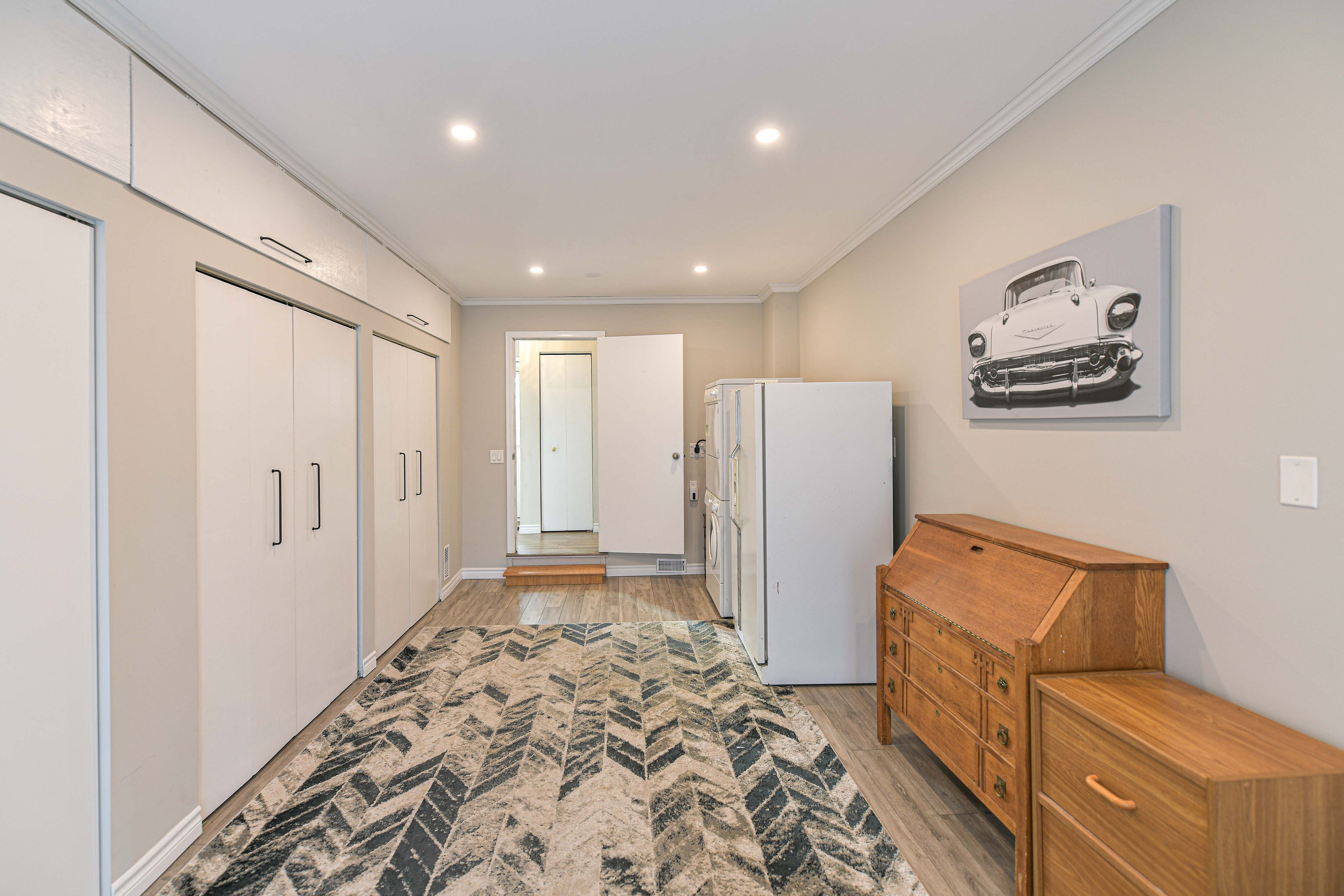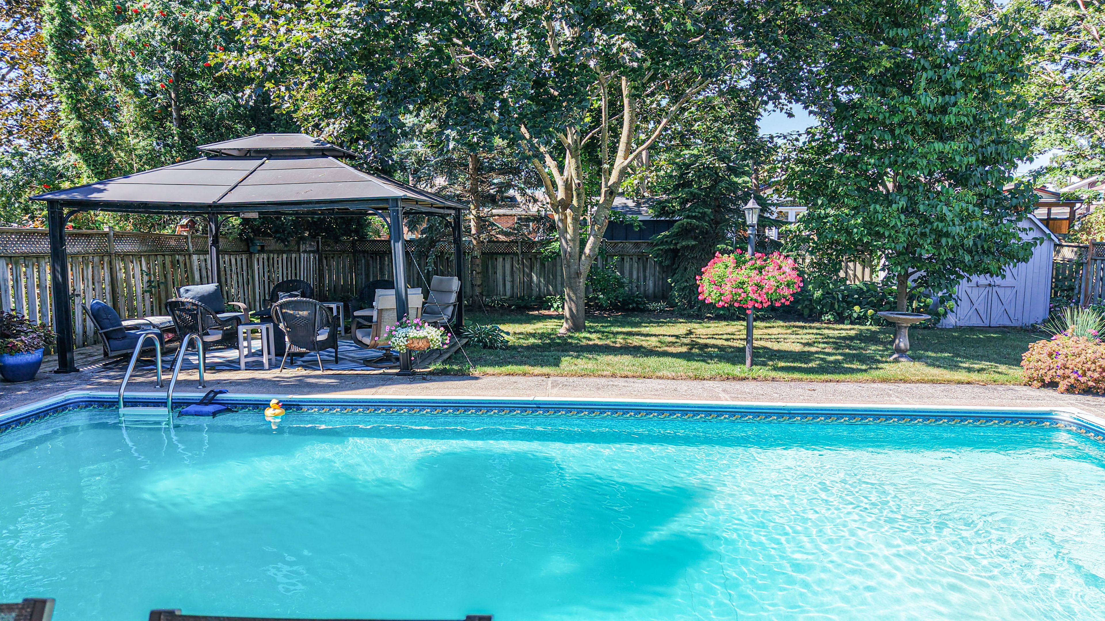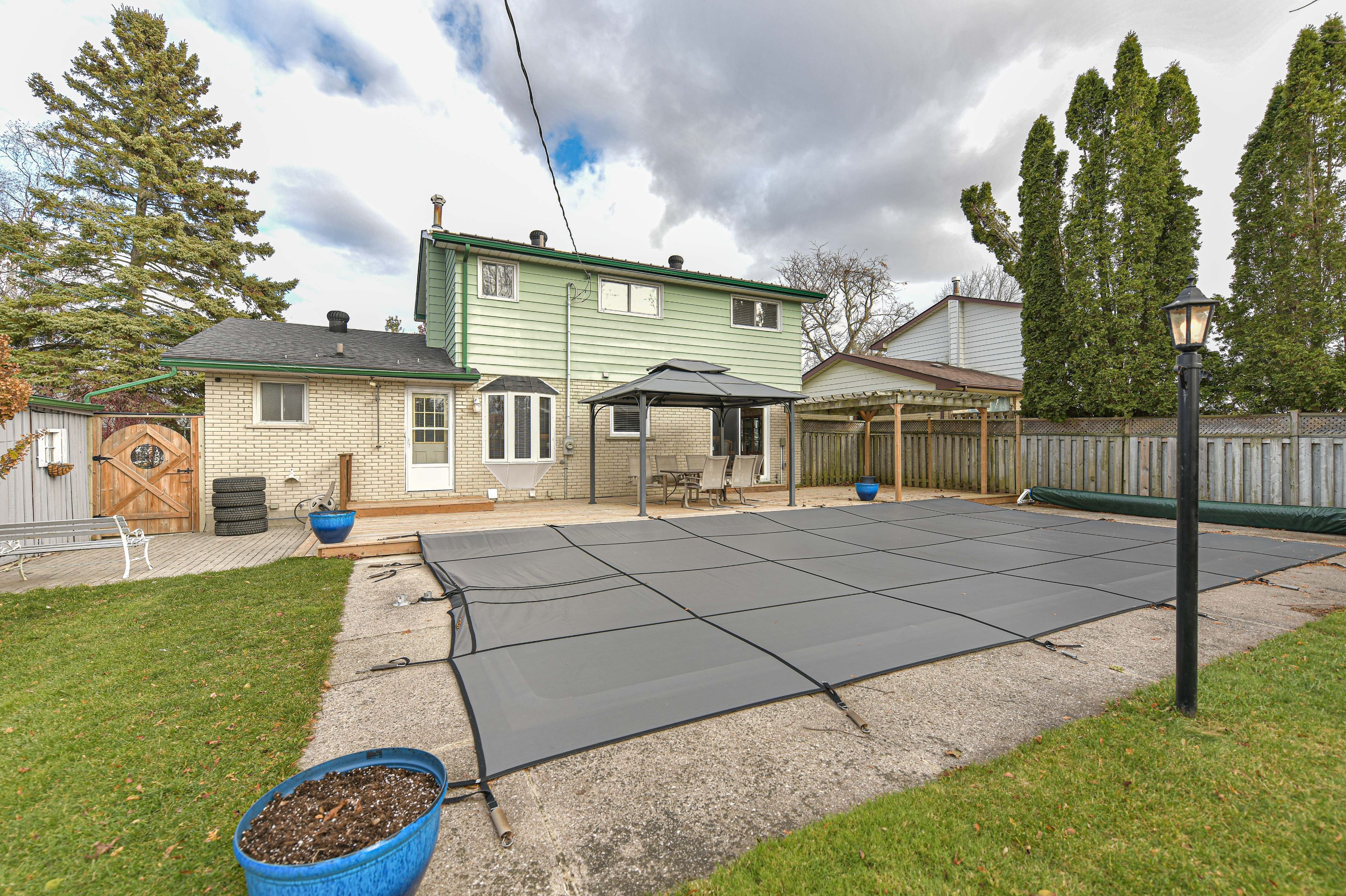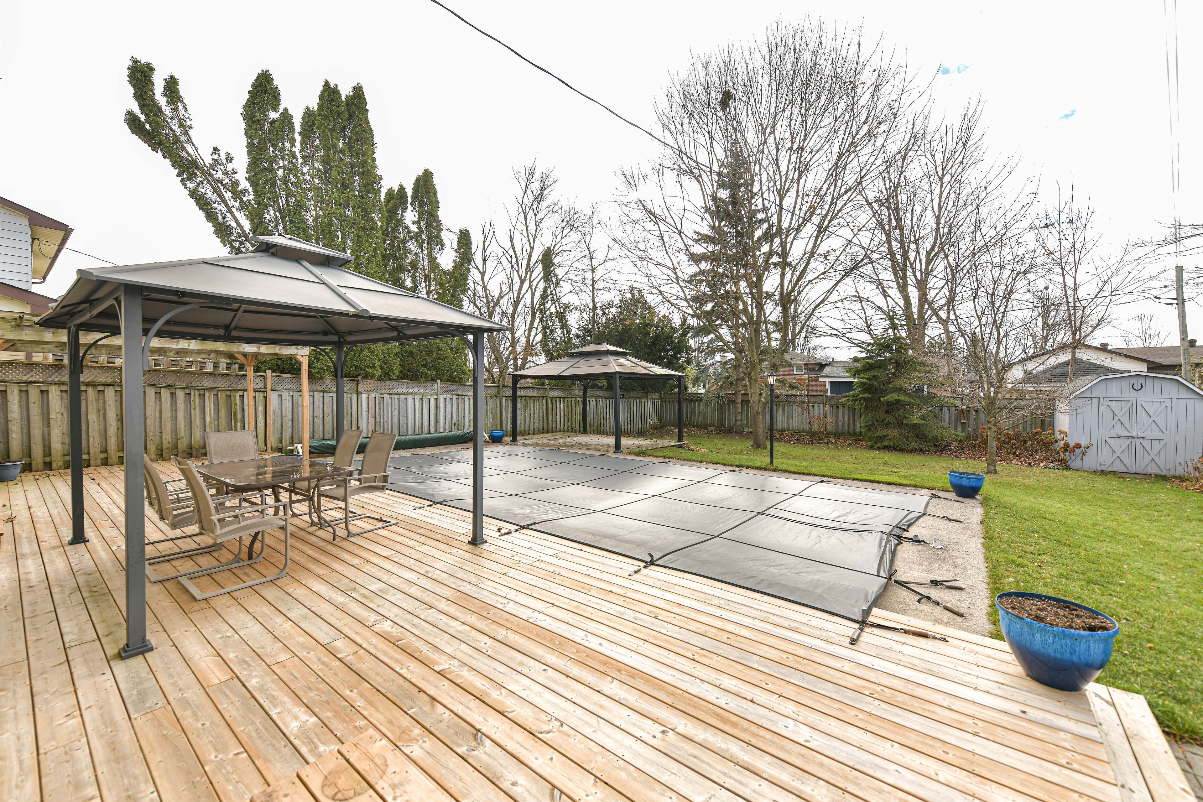 Now is your chance to raise your family in one of the most sought-after north ward neighbourhoods! This well-maintained 4-bedroom, 1. 5-bath, 2-storey home offers comfort, convenience, and fantastic outdoor living-perfect for today's busy family. A welcoming covered entry leads into the bright main floor featuring gleaming hardwood floors throughout. The spacious living room with bay window fills the space with natural light, while the adjacent dining area overlooks the picturesque back yard. The efficient galley-style kitchen boasts classic oak cabinetry, a cozy breakfast nook, and direct access to your fully fenced backyard oasis. A convenient 2-piece powder room is located on the main level. The original garage has been converted into a versatile space currently used as a main-floor laundry, but it would easily function as a playroom, home office, recreation room-or be converted back to a garage if desired. Upstairs, you'll find a beautifully updated 4-piece bathroom and four bedrooms, including one with a charming built-in desk/craft area and a spacious walk-in closet. The mostly finished basement offers a cozy family retreat complete with a gas fireplace and a bar area, ideal for relaxing or entertaining. Step outside to your private, treed, fully fenced backyard, featuring an expansive updated deck overlooking the inground pool, complete with a newer gas heater. Relax in the sunshine under the pergola or choose to sit under one of the 2 gazebos. It's the perfect setting for summer gatherings and family fun. Additional updates include windows & shingles. The home is equipped with natural gas heating and central air conditioning for year-round comfort. Located close to parks, schools, shopping, and just a short walk to downtown, this property offers the ideal blend of lifestyle and location.