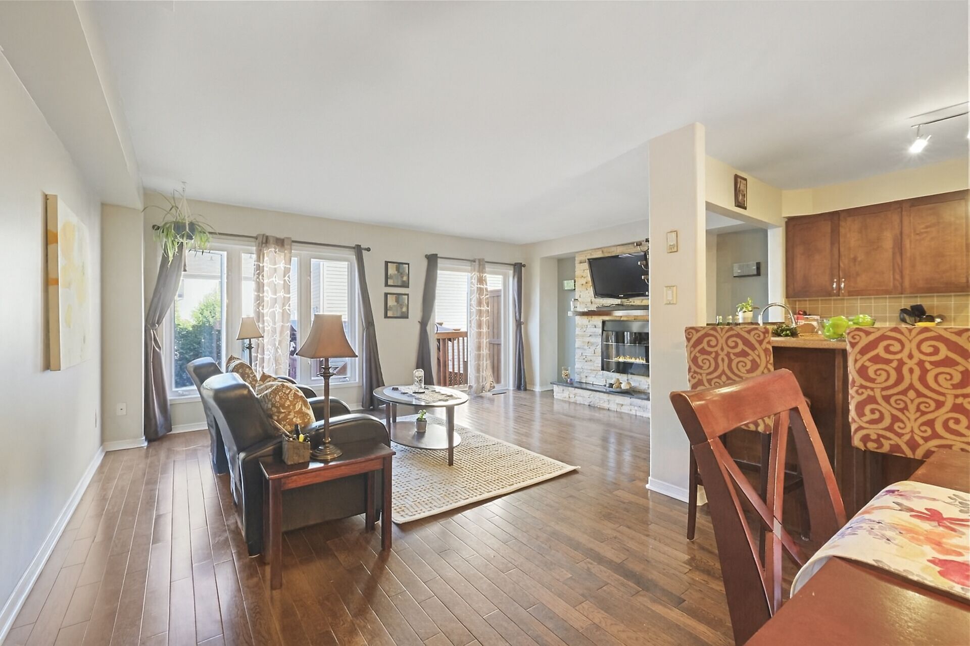 This fabulous 3 bedroom, 3 bath home is located in a friendly community on a private road and is in an amazing location close to the ottawa river, scenic walking/biking trails, petrie island, beaches, public transit, shopping and a quick easy access to the 174. This well maintained home offers a bright, open concept main level with a spacious, relaxing living room with cozy fireplace, a well appointed kitchen with a gas stove, plenty of storage and counter space, a breakfast bar and dining/eating area adjacent plus a powder room and roomy foyer to welcome your guests. As you ascend the stairs you find the first of the great sized bedrooms or a perfect space for your home office. Just a few more steps up to the second level where we find the large primary bedroom with walk in closet and fabulous ensuite with separate shower and soaker tub, a generous sized third bedroom, another full bathroom and laundry room. The fully finished lower level boasts a huge rec/family room with the second fireplace in the home, a den/gym area and loads of storage. The incredible no maintenance, fully fenced backyard is a perfect spot to sit with your morning coffee or enjoy a glass of wine with your friends. Extra deep one vehicle garage. Lots of visitor parking throughout the area. Association fee of $135 for snow removal/plowing and road maintenance. Dont miss out on this fantastic home!
