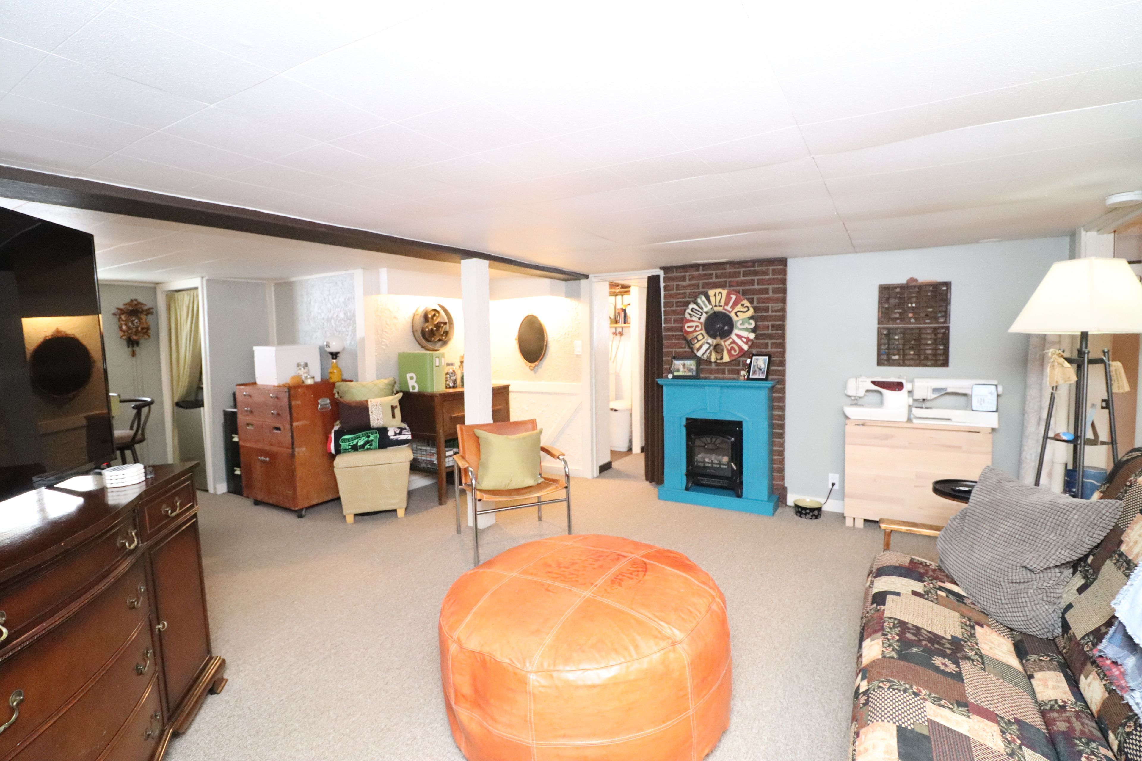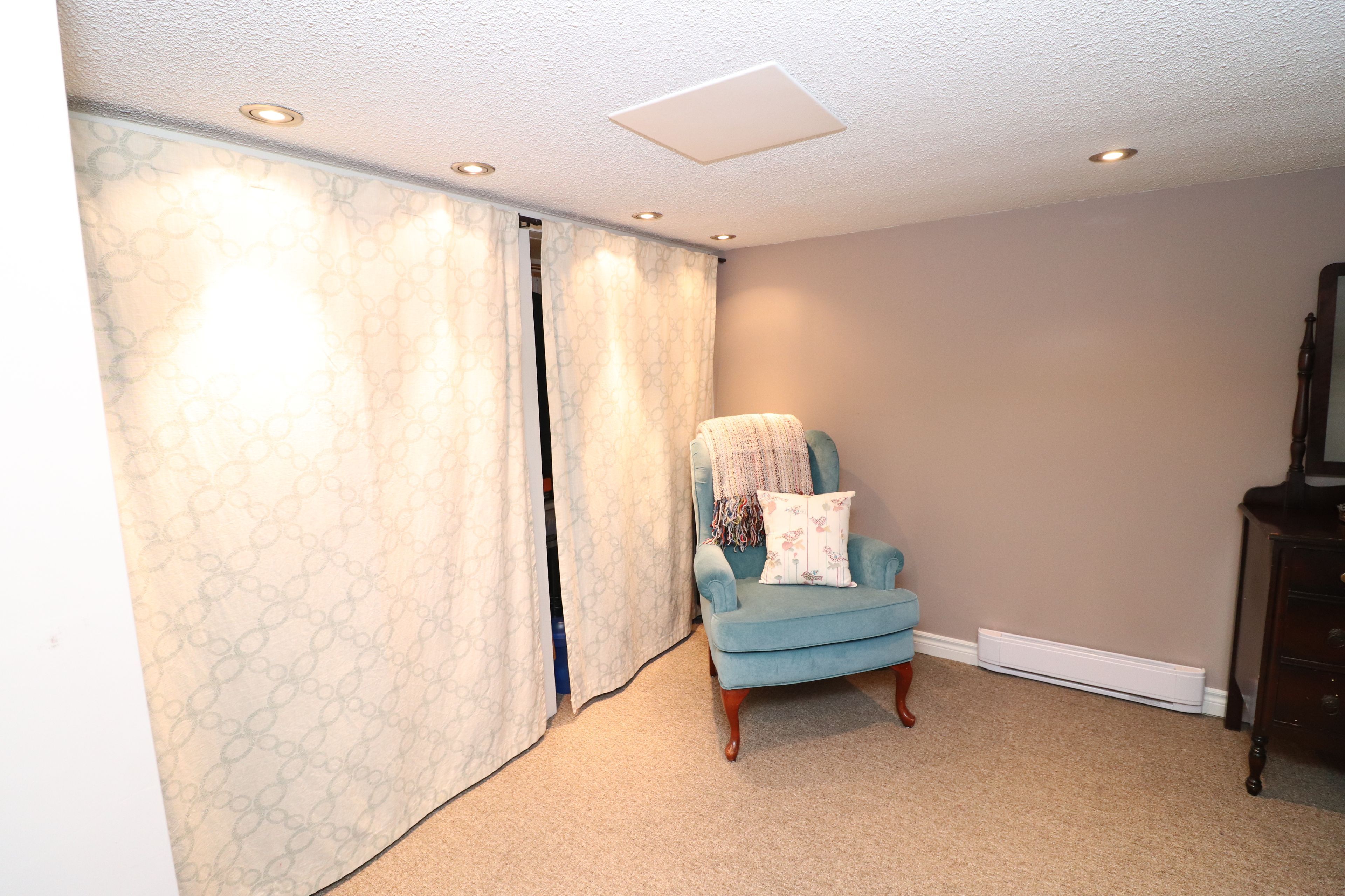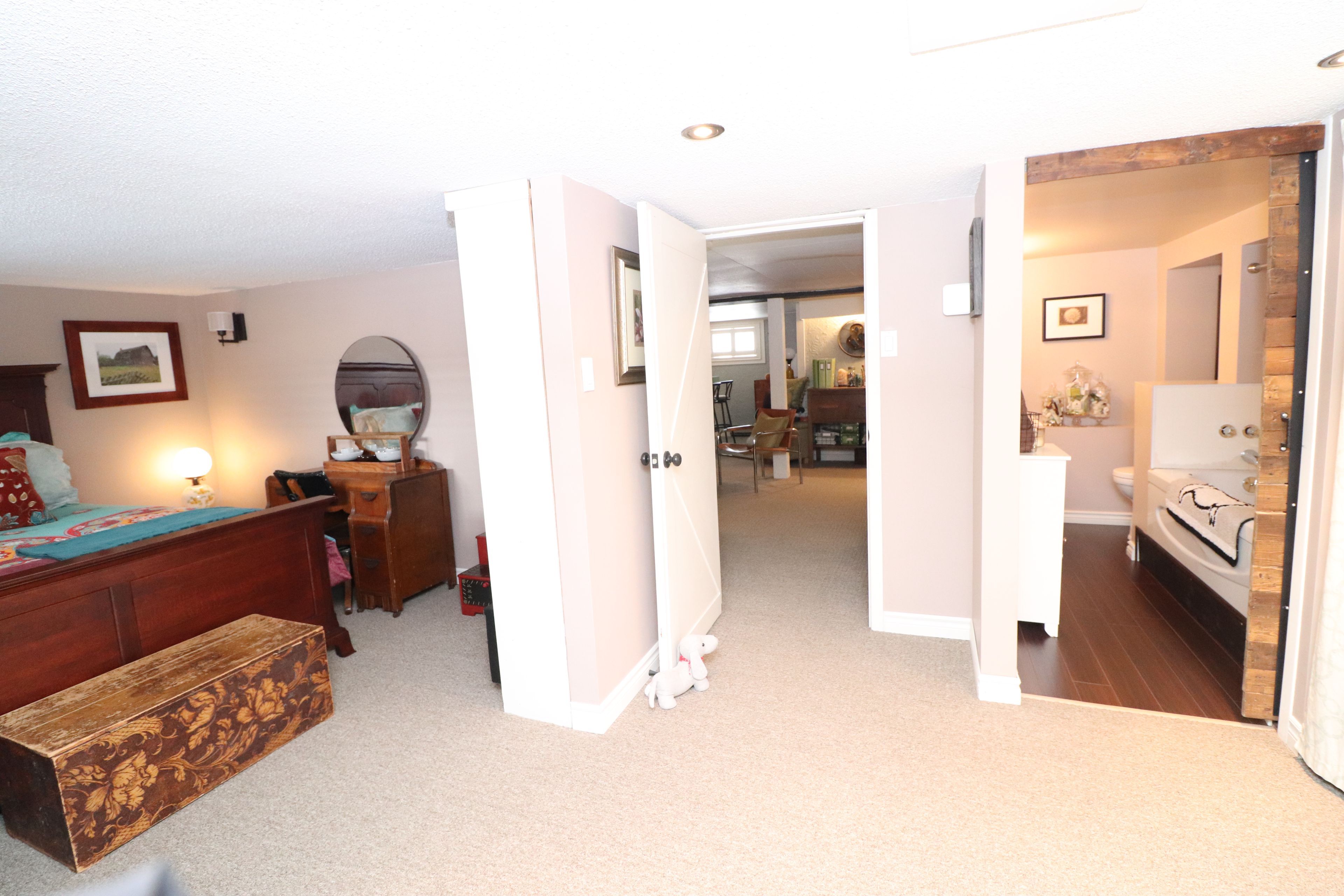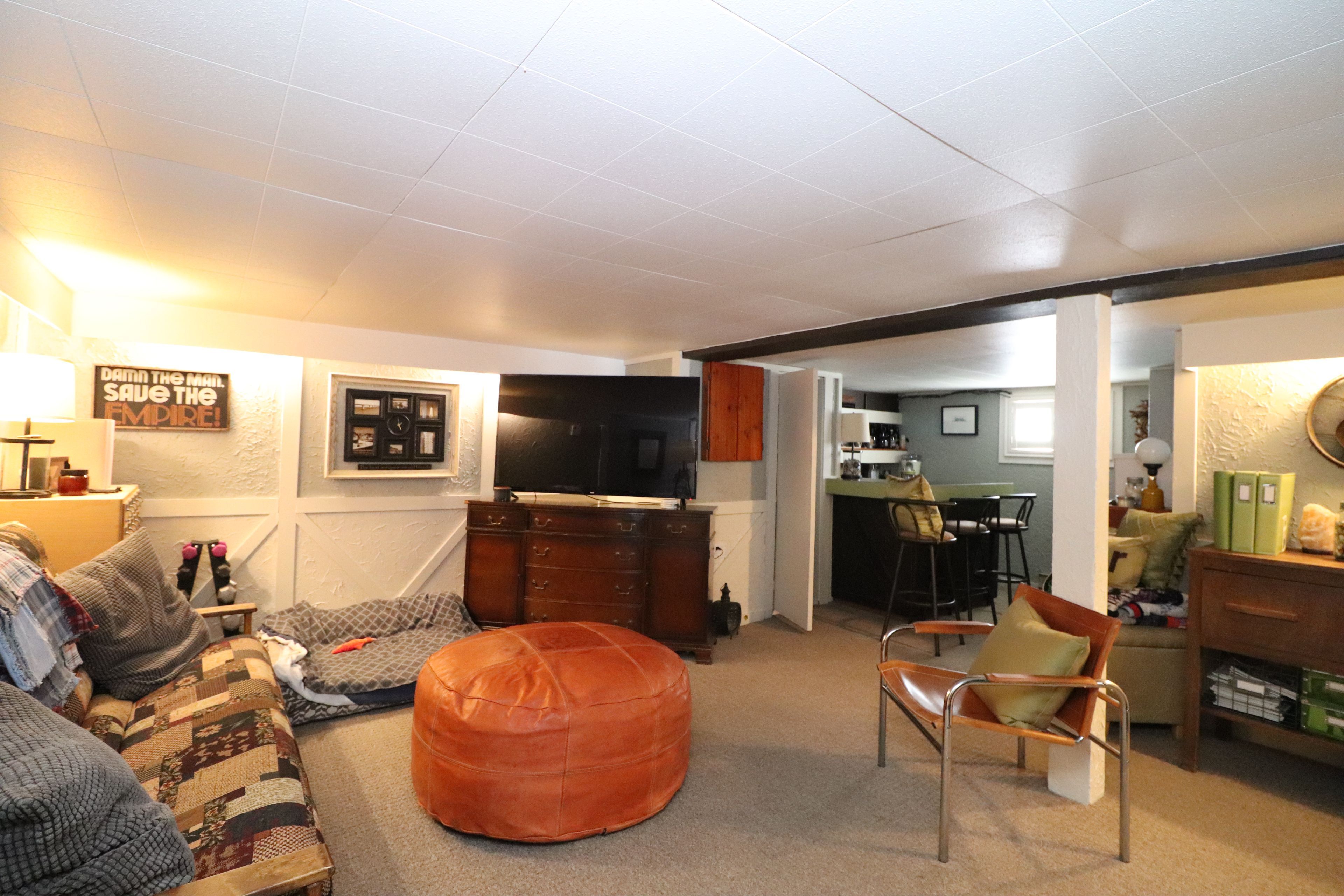 • Lower level includes family room, bar area, and third bedroom.