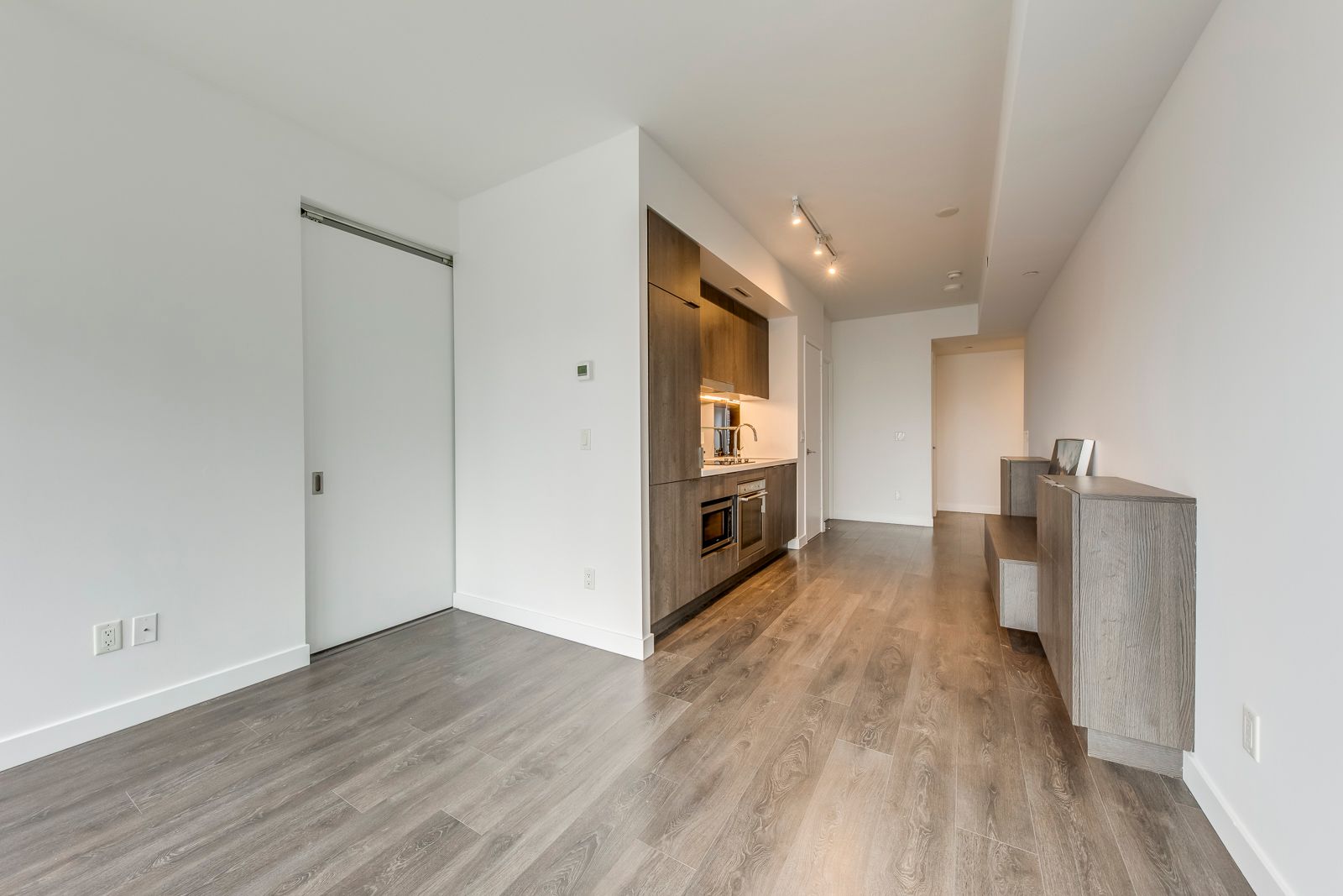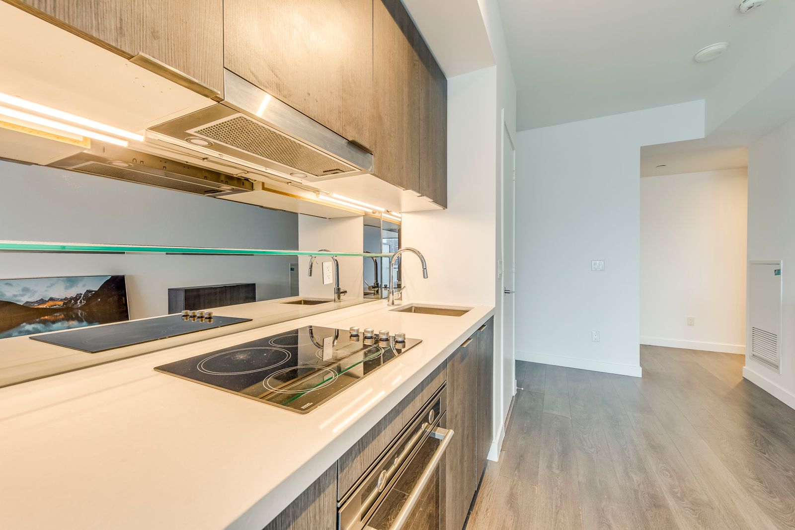 • Modern kitchen features built-in appliances and sleek finishes.