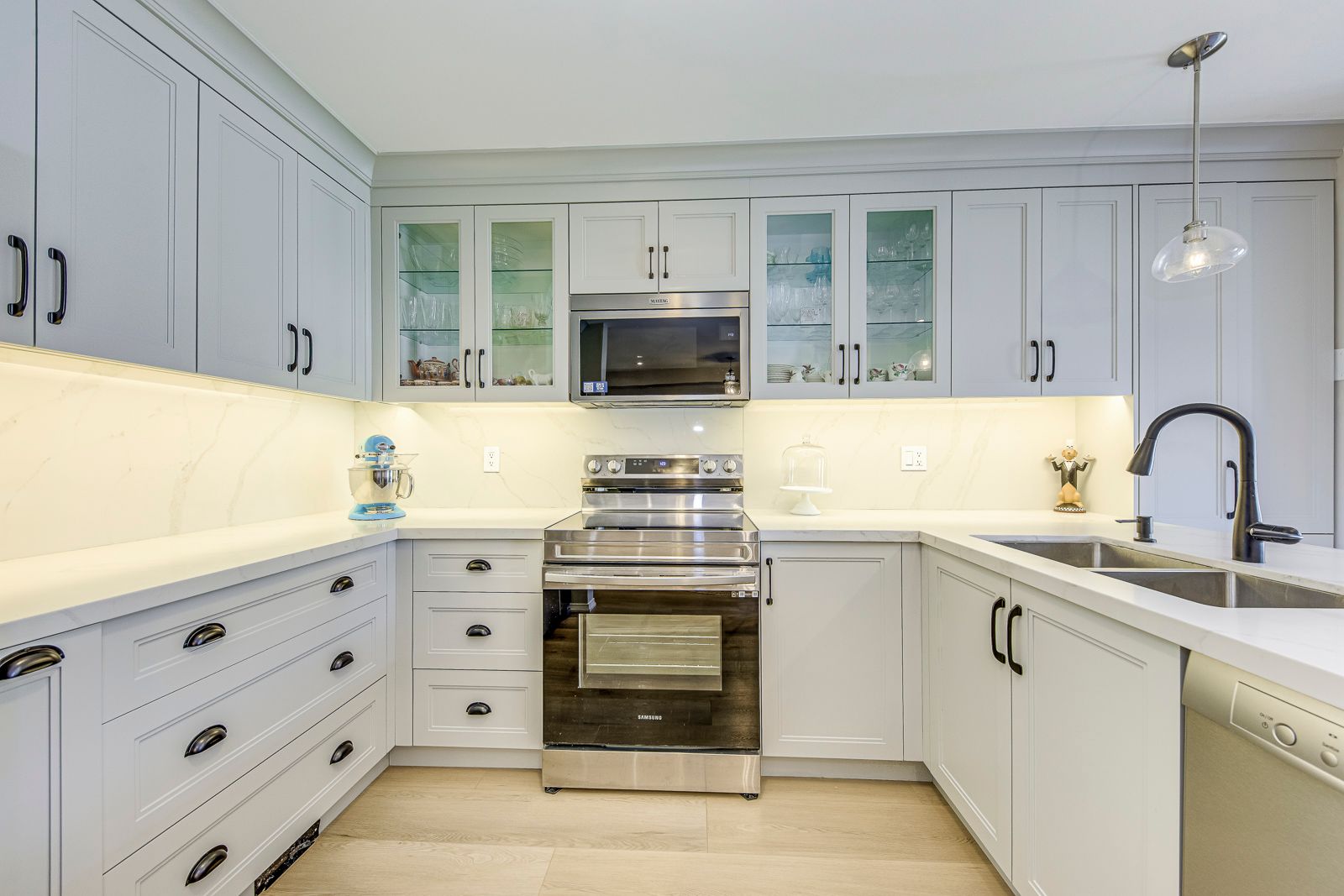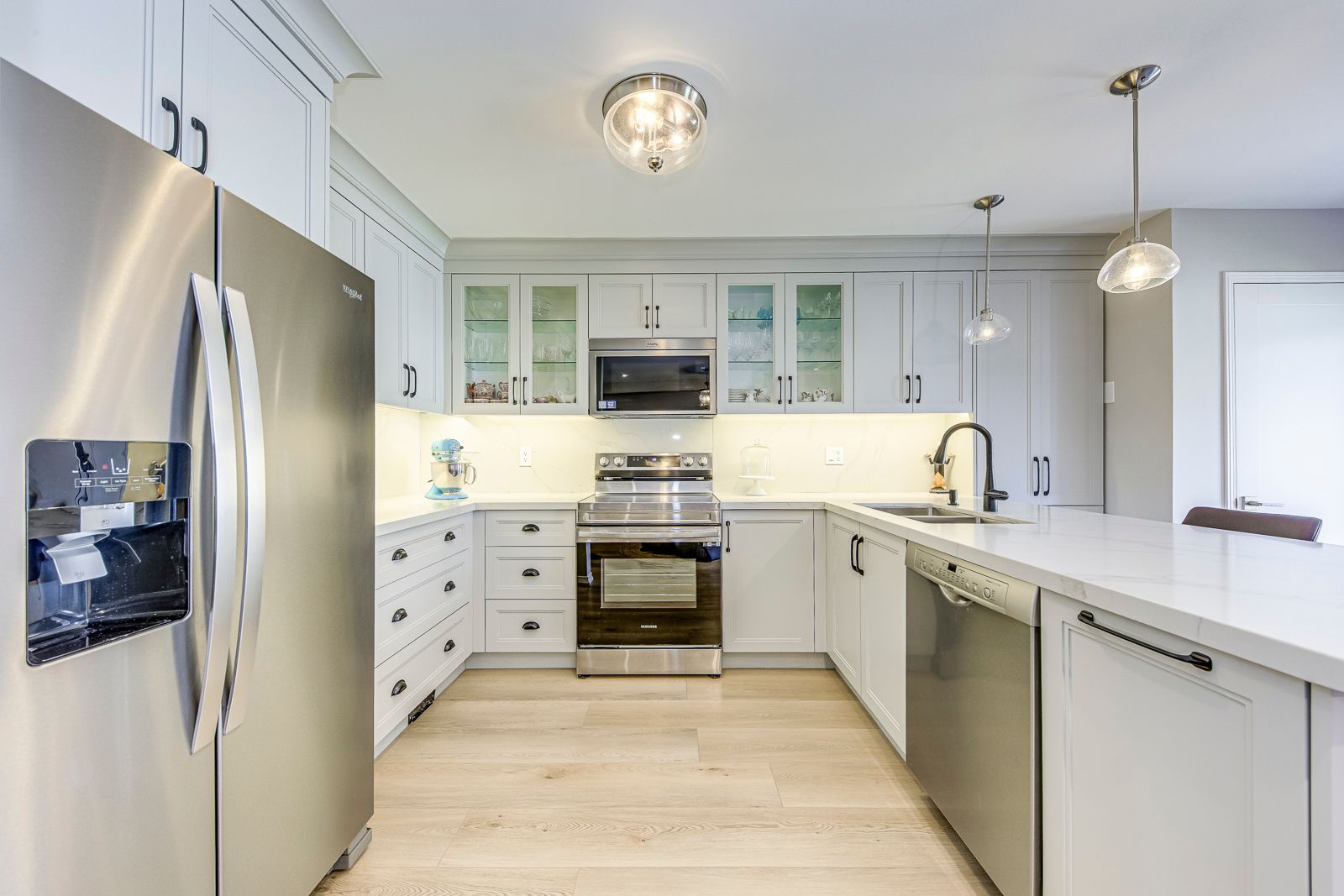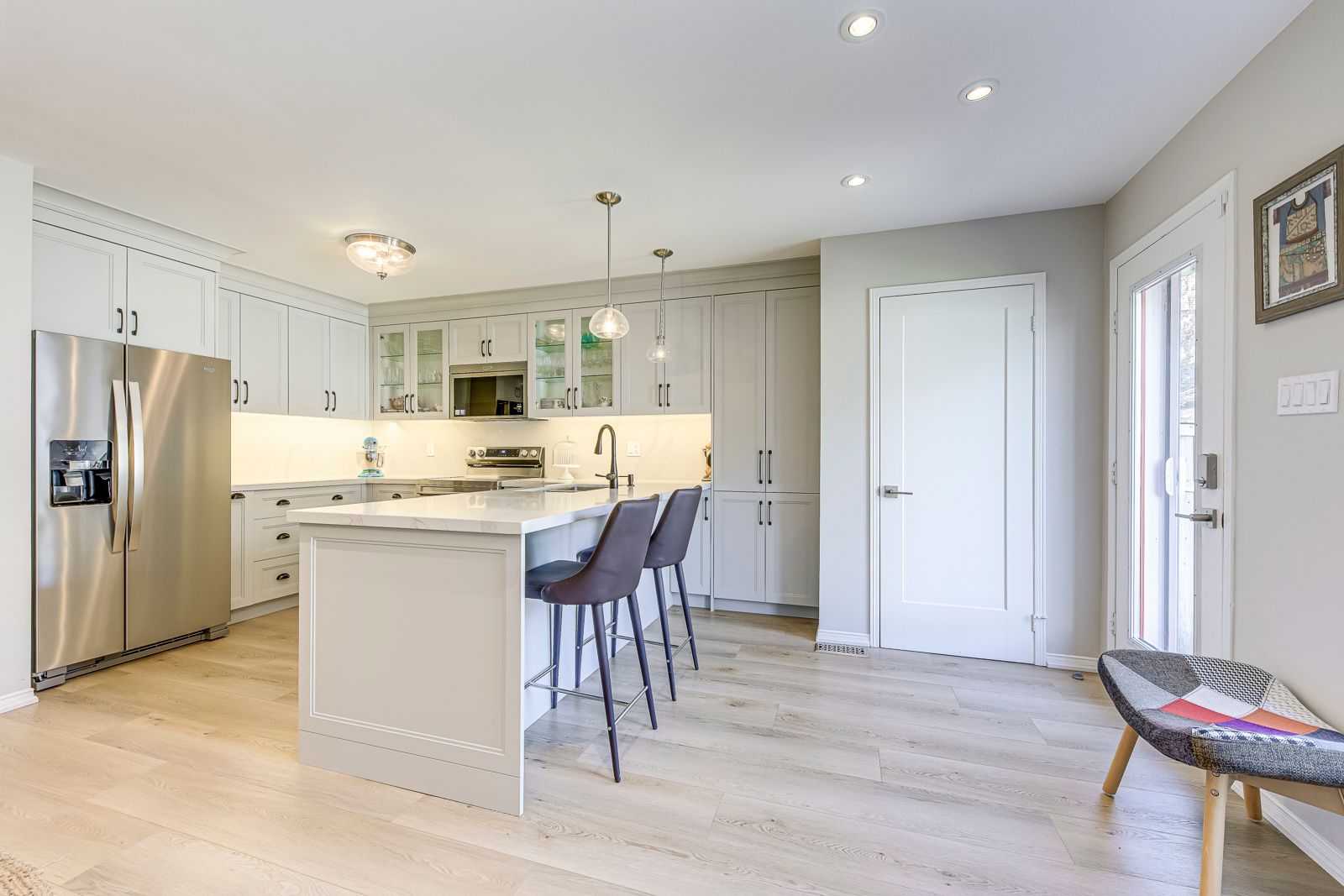 • Custom-designed open-concept kitchen with walkout to private patio.