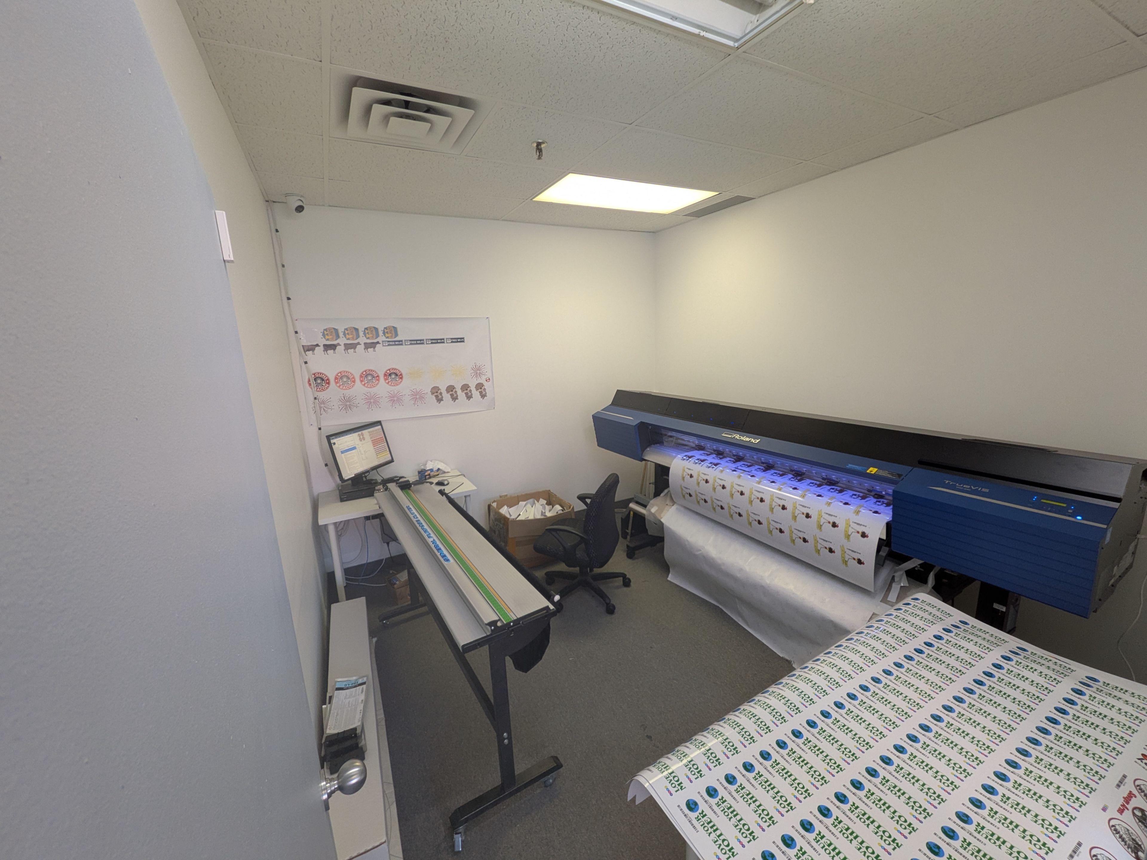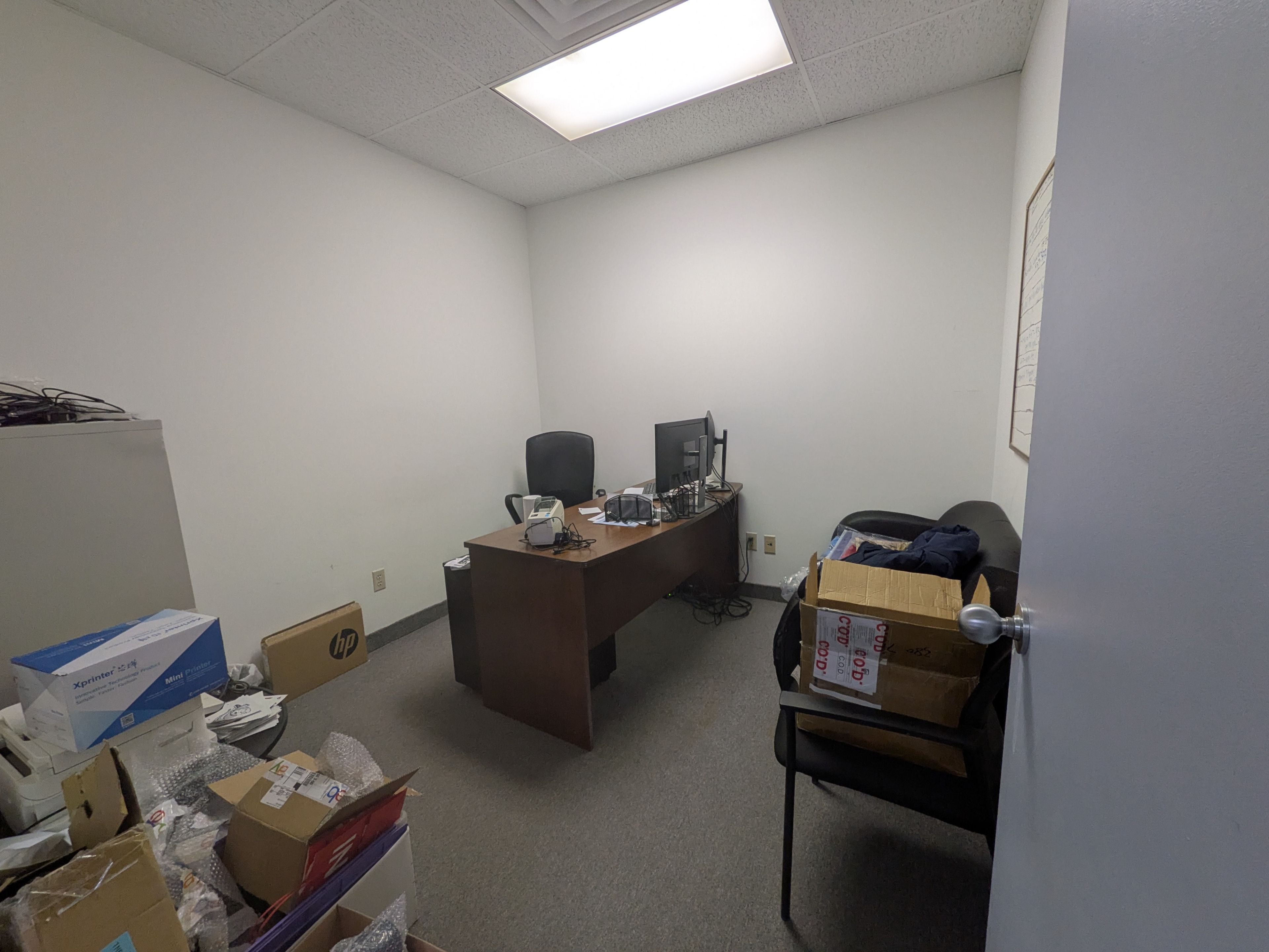 • Features six private offices, each about 9.5 x 12 feet.