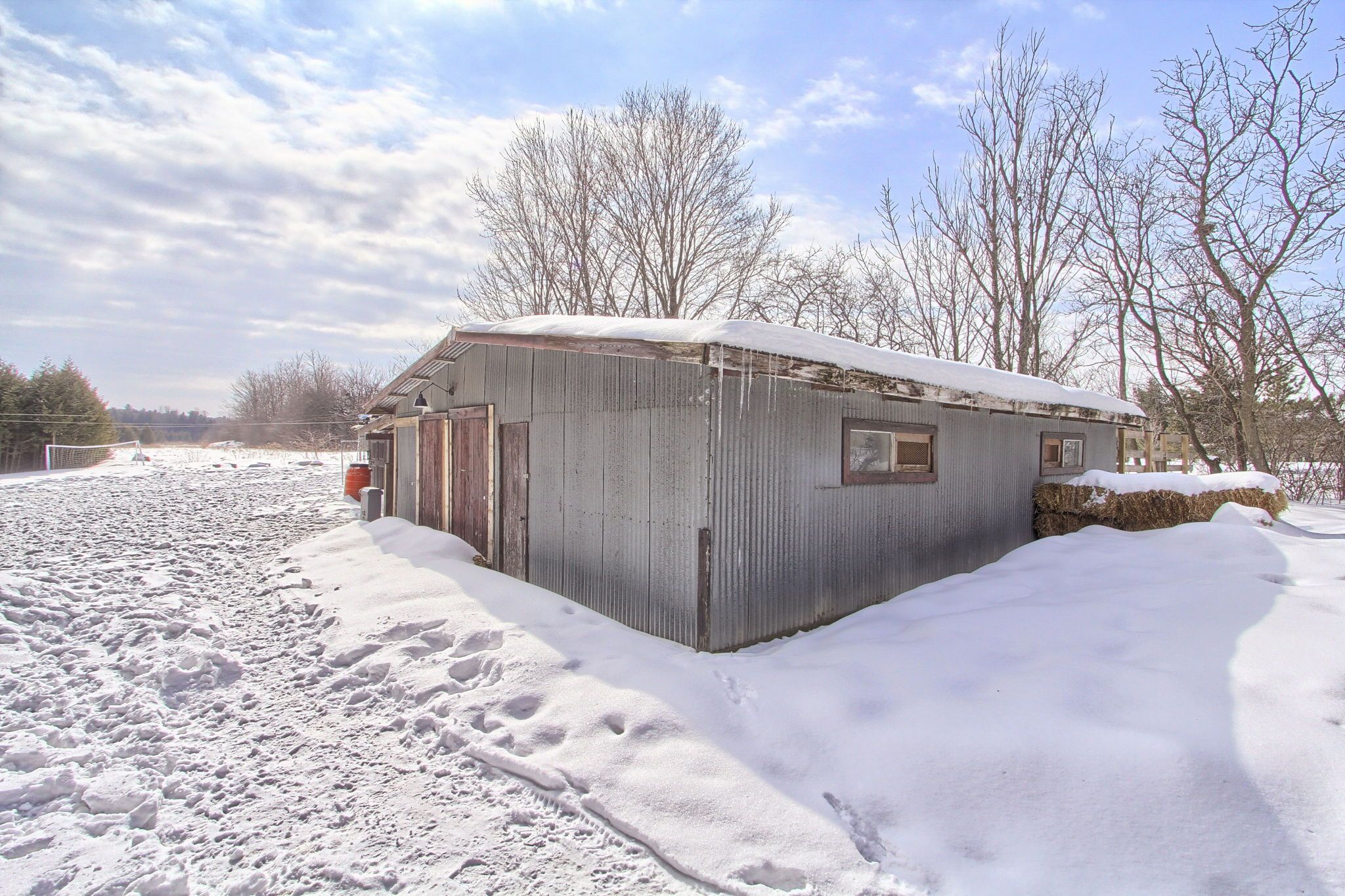 • Barn with utilities suitable for various animals and a workshop space.