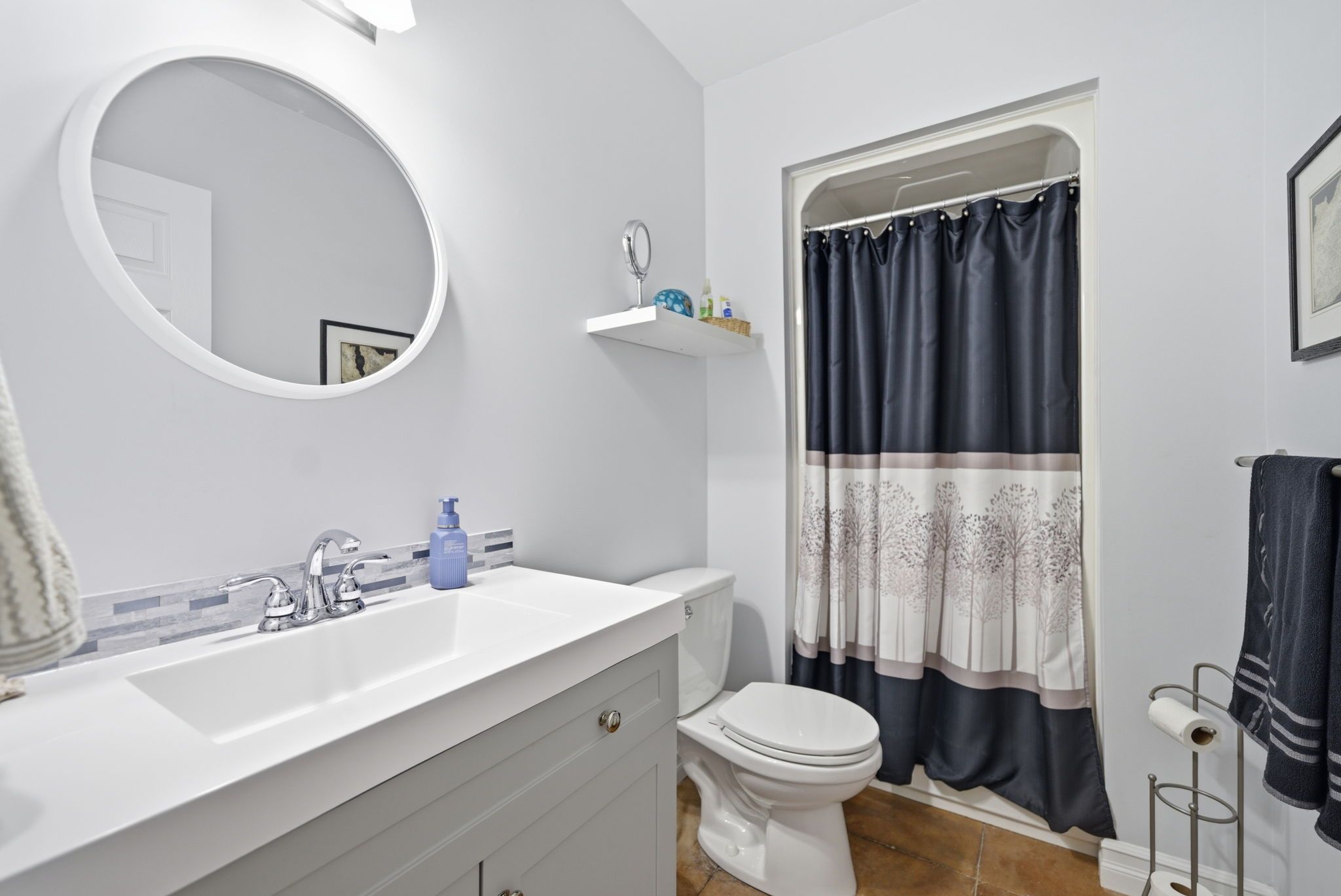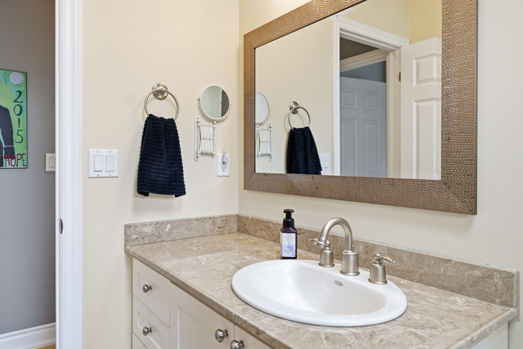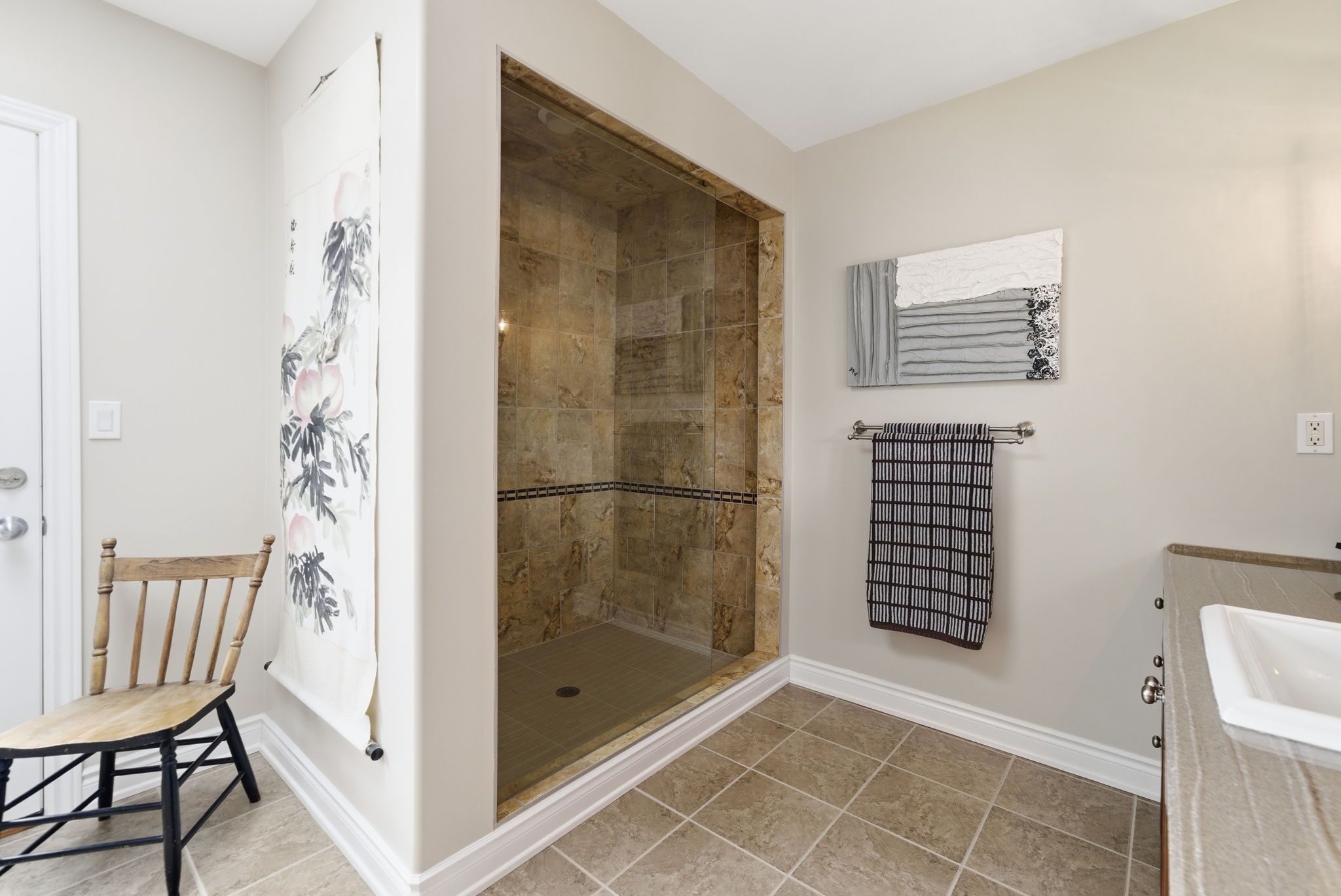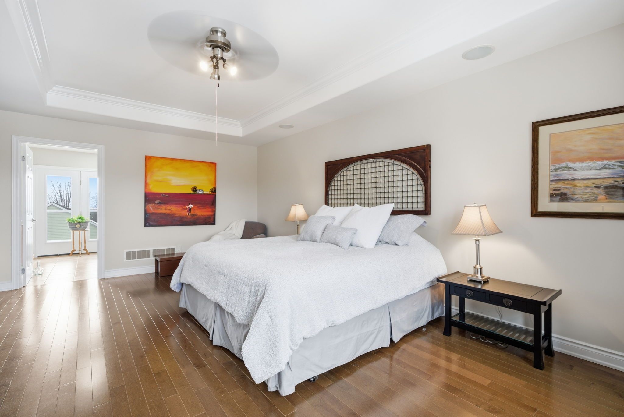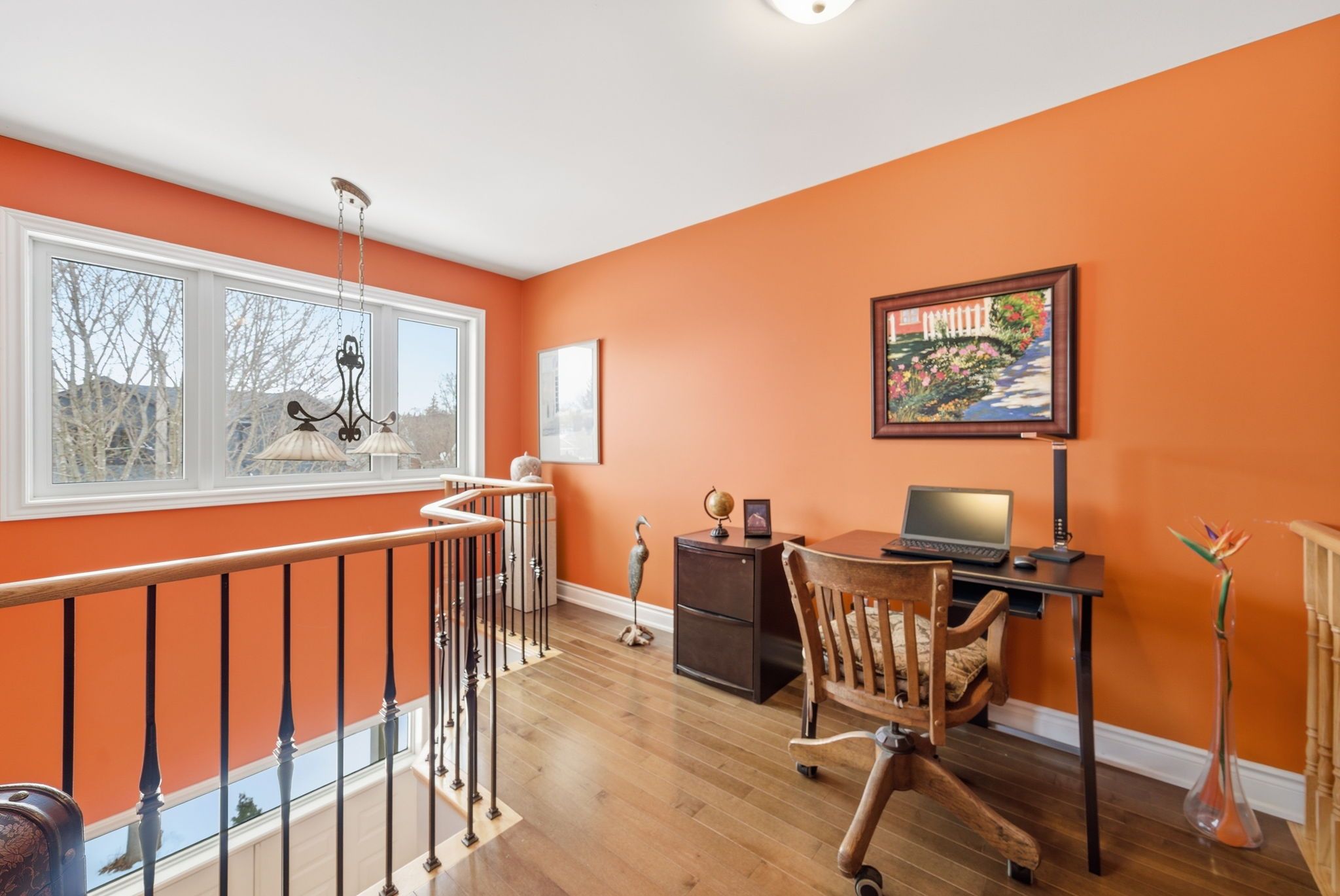 • Private upper-level sanctuary with spacious primary suite and office area.