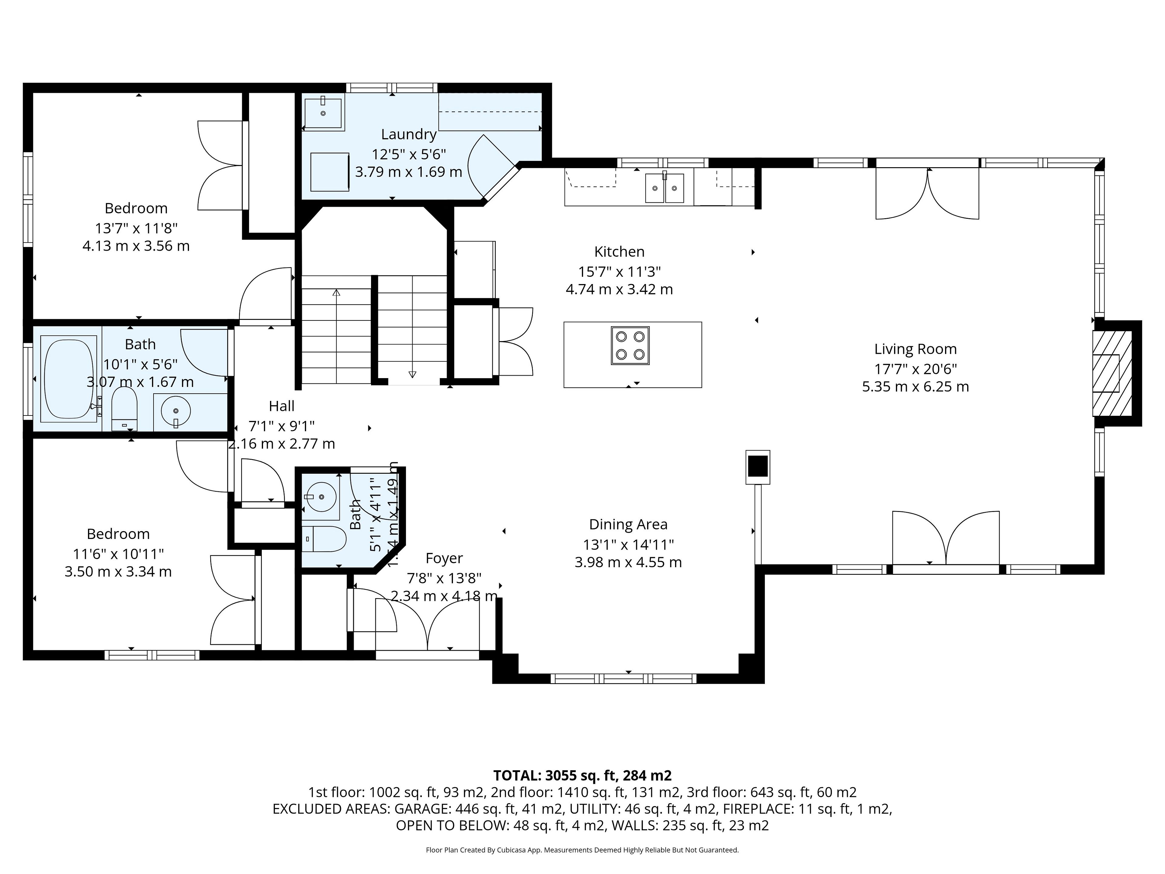 • Open-concept main floor with high ceilings and a cozy gas fireplace.