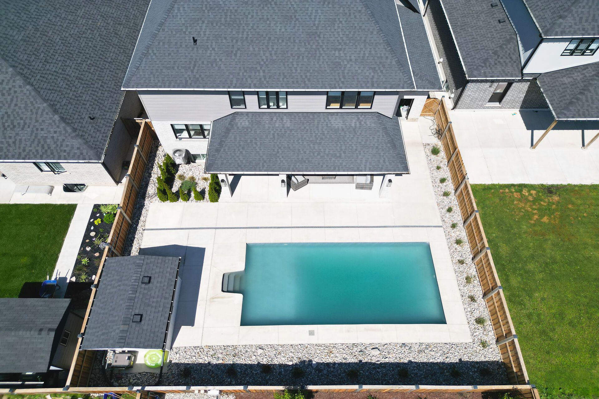 • Resort-style backyard with a saltwater pool and covered patio for outdoor living.