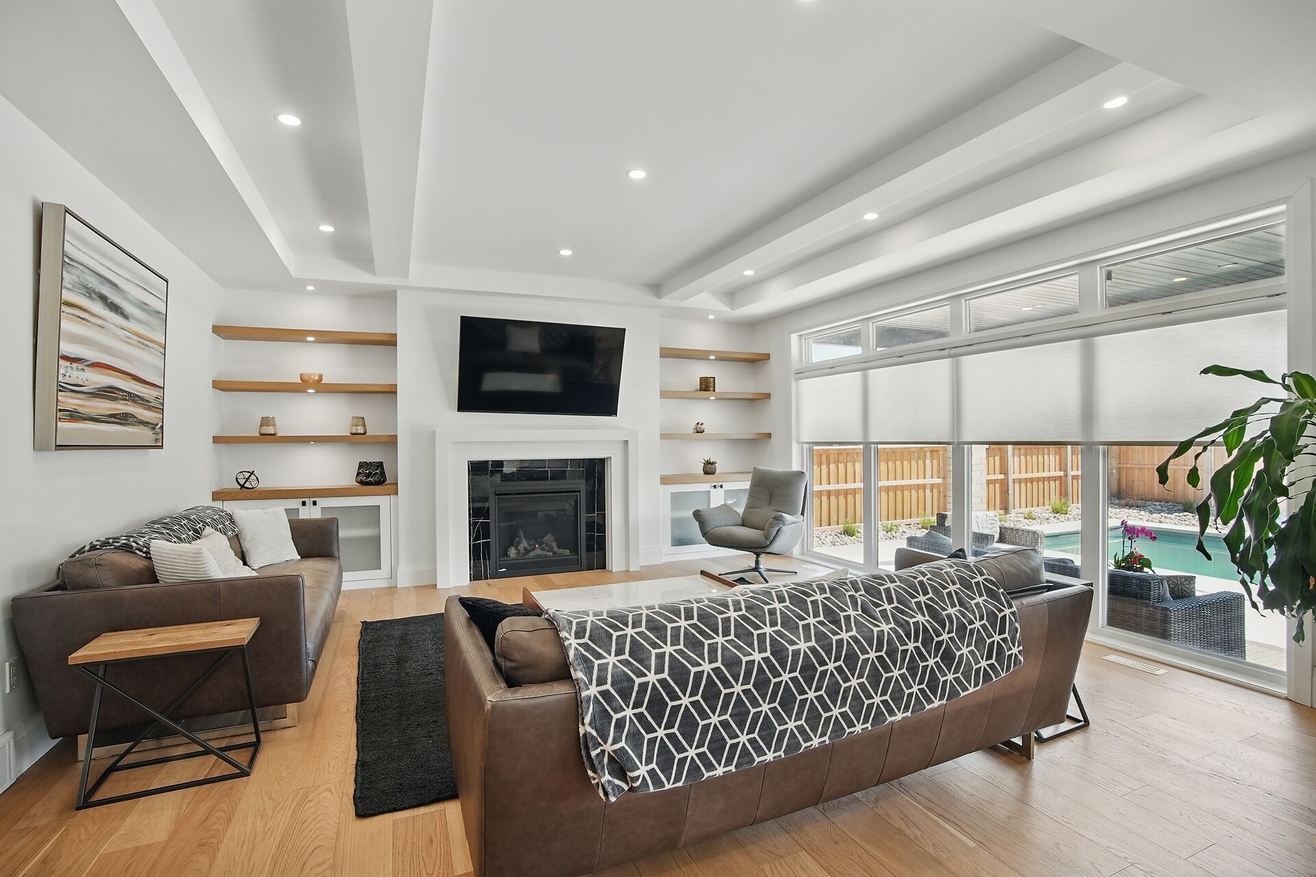 A masterclass in design, space, and luxury living. You need to see this beautifully crafted 4+1 bedroom, 5-bathroom home, where every detail has been thoughtfully curated for comfort and function. This property offers a masterclass in functional layout, featuring tray ceilings, sun-filled oversized rooms, and a flow that seamlessly blends everyday living with elegant entertaining. The second floor features four generous bedrooms, each with its own private ensuite, offering unparalleled privacy and convenience. The massive primary suite is your personal retreat, complete with a luxurious ensuite and a walk-in closet that dreams are made of. On the main level, enjoy the warmth of heated floors in the front foyer, a stylish powder room, and expansive living spaces ideal for both casual family life and sophisticated hosting. The finished basement offers a large rec room, a fifth bedroom, a full bathroom, ample storage, and private garage access, making it perfect for in-laws, guests, or a nanny suite. Step outside to your resort-style backyard oasis featuring a large saltwater pool, covered patio with ceiling fan, natural gas bbq hookup, and a spacious shed. Whether you're entertaining or unwinding, this outdoor space is designed to impress. The photos look amazing but you need to see this home in person to truly appreciate it.