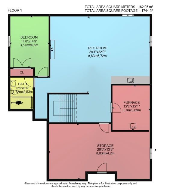 • Finished basement includes a rec room, fifth bedroom, and extra storage.