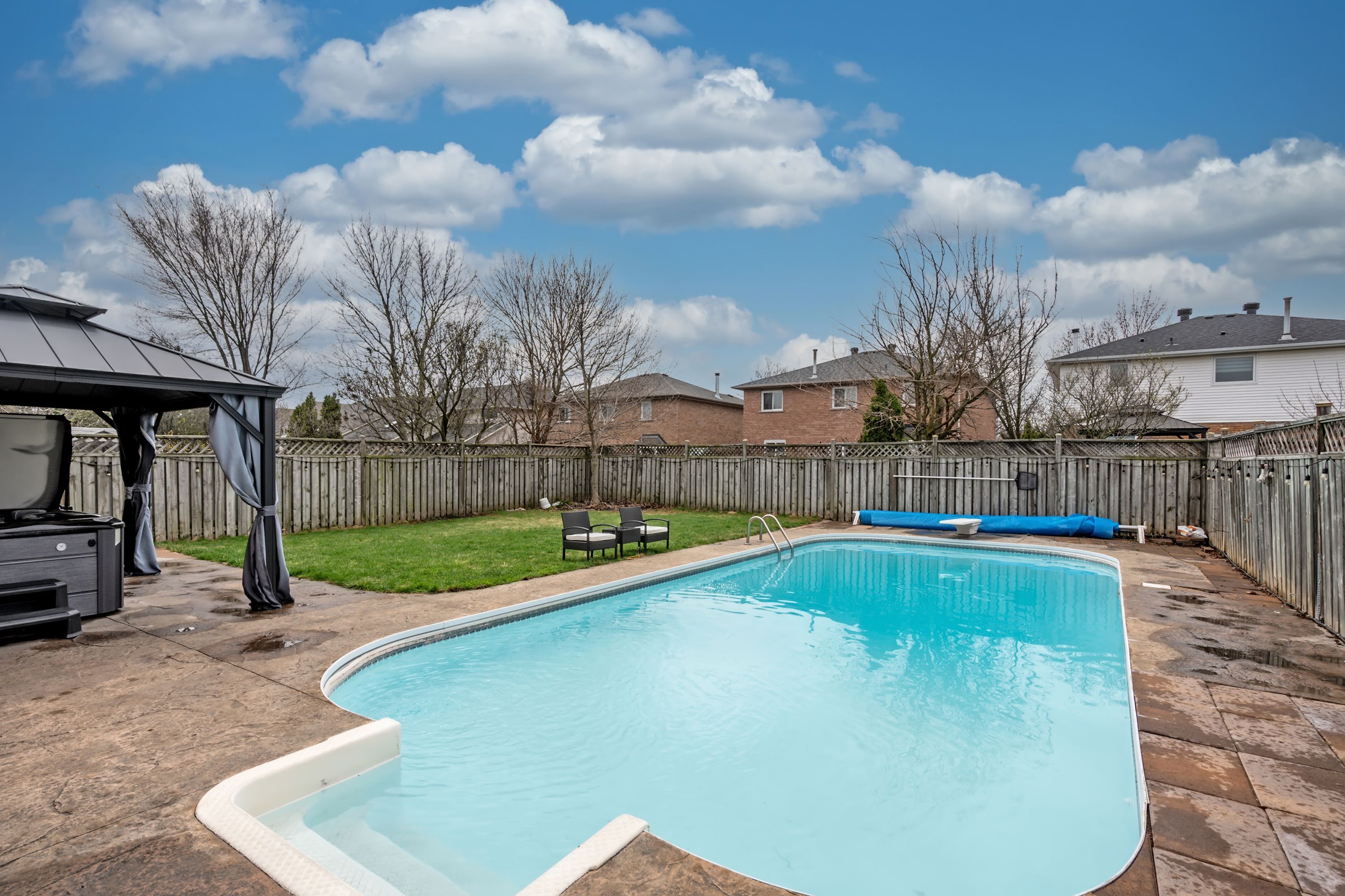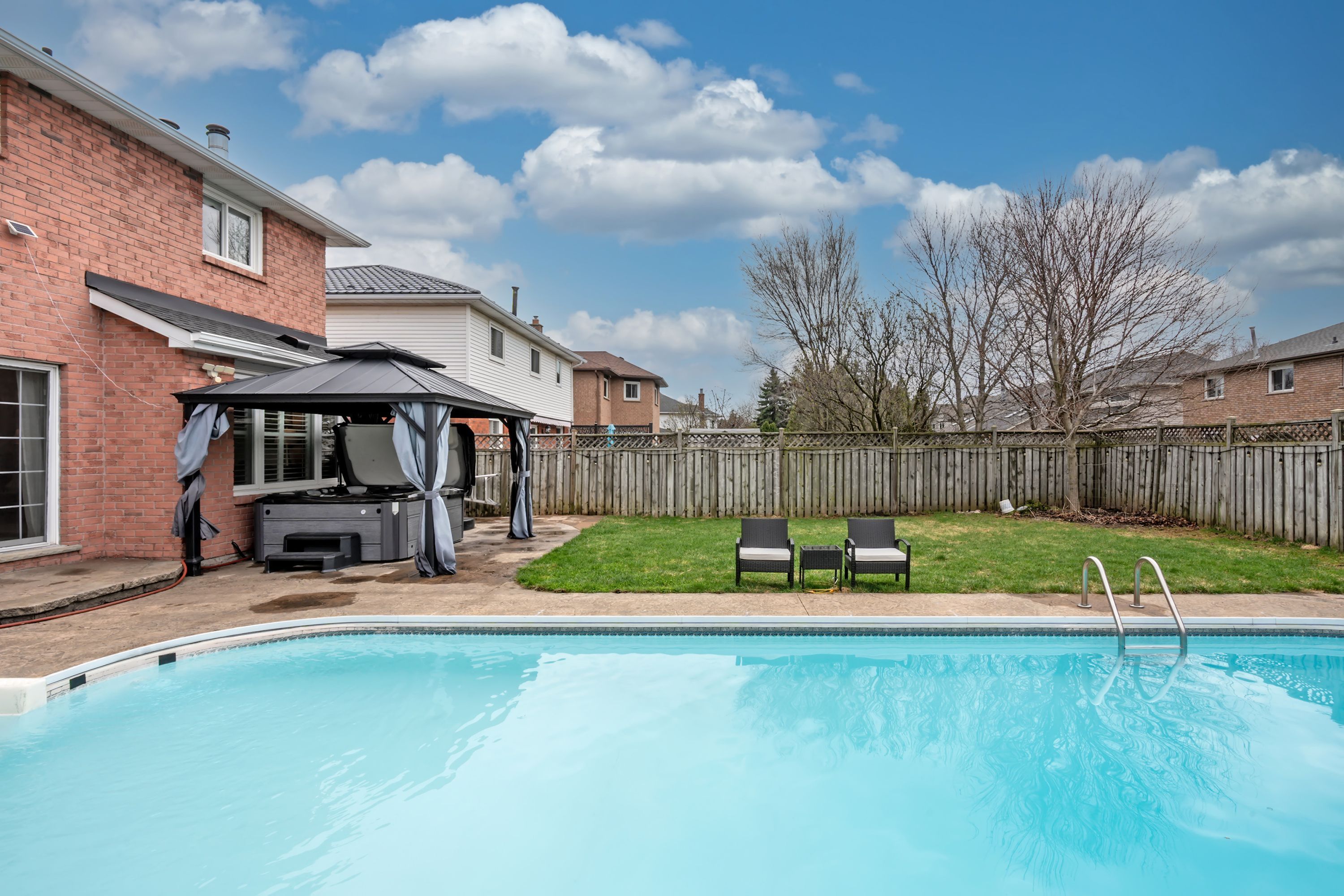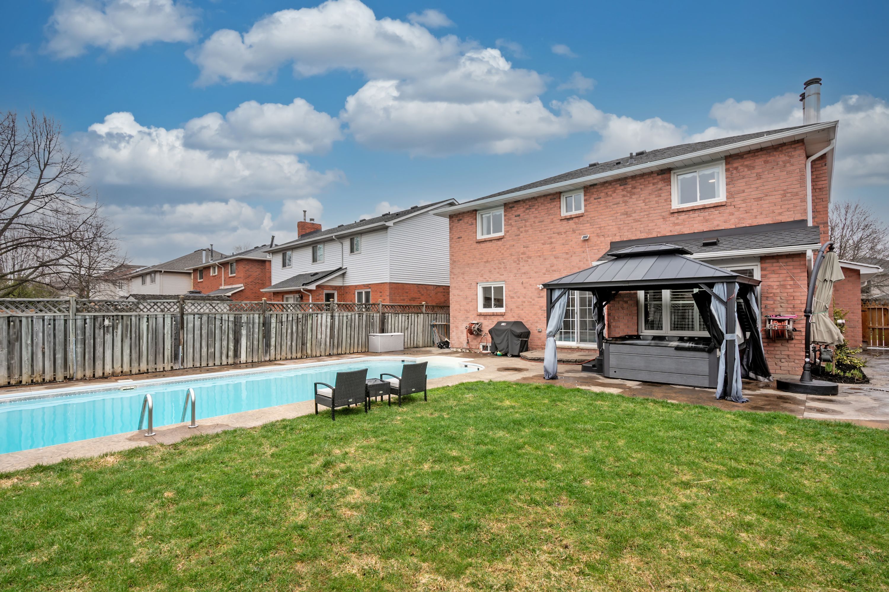 Worry-free living starts here. A 2,859 sq ft, move in ready home with fantastic upgrades and room to make it your own. You can move in with confidence knowing the major upgrades are already complete, from the furnace and a/c to the water heater, shingles, eavestrough, triple driveway, garage door, kitchen appliances, washer, dryer, and pool equipment, it's all been done and there is absolutely no rental equipment! Offering hardwood floors throughout, family room, 4 spacious bedrooms and 3 bathrooms. The main floor shines with brand new tiles and flows into a warm family room featuring a new gas fireplace. The updated kitchen with new appliances and quartz countertops makes cooking and hosting a breeze. Outside, your private backyard oasis awaits, complete with an inground pool and 5-person spa hot tub, ideal for summer fun and weekend unwinding. A two car garage adds everyday convenience, while the unfinished basement offers endless potential to create the space of your dreams: home gym, rec room, or extra living area (1,211 sq ft). This home truly has it all. All that's missing, is you!