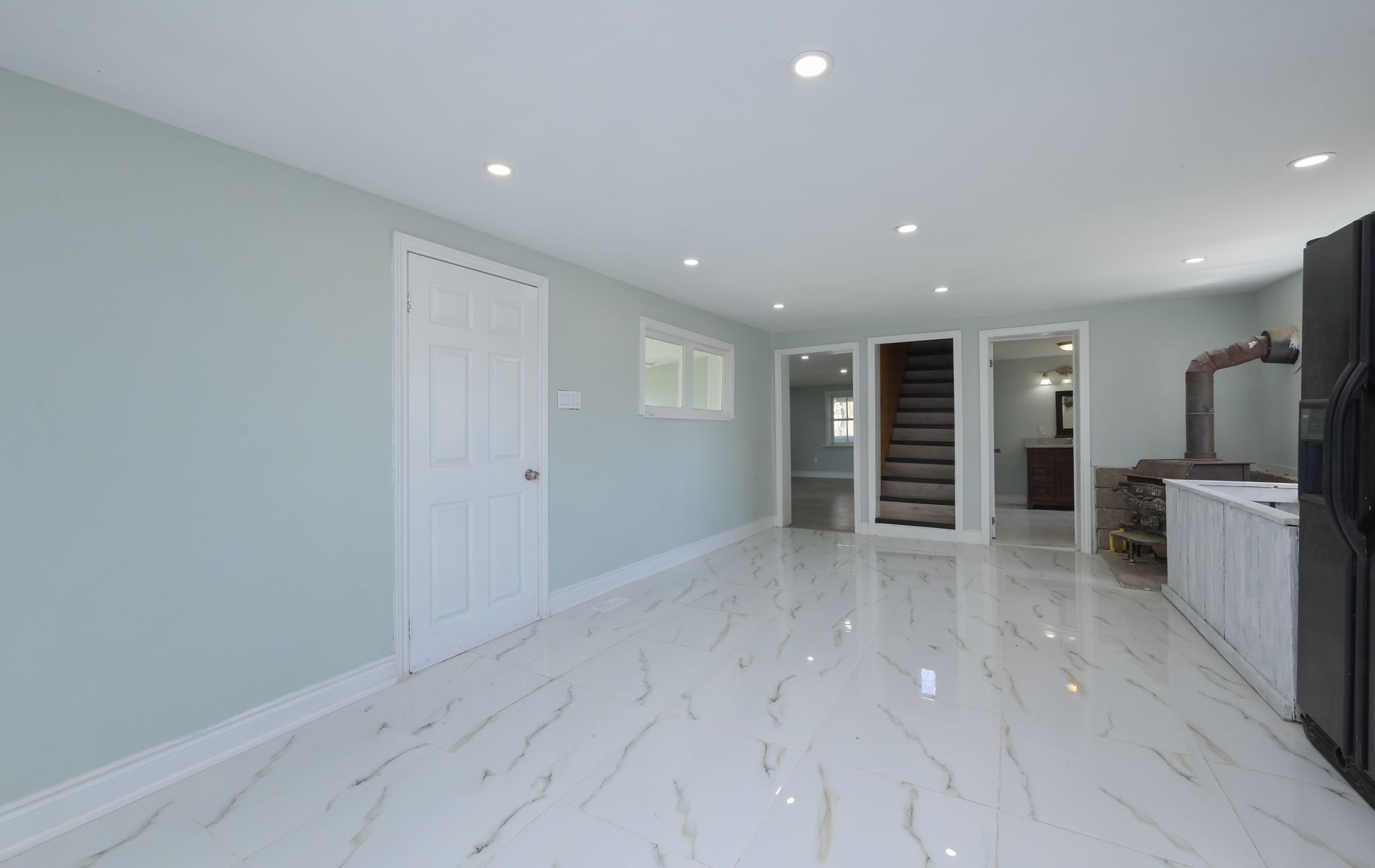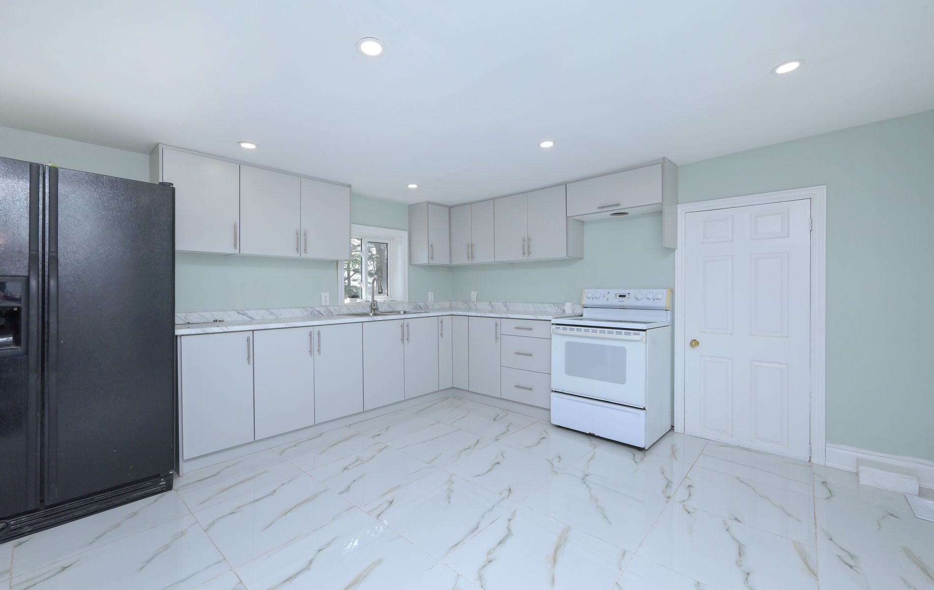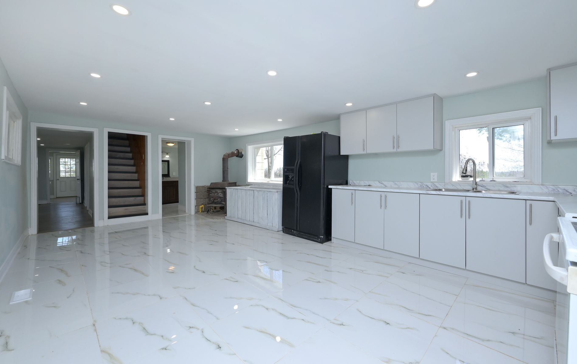 • Spacious newly renovated kitchen with a cozy wood stove.