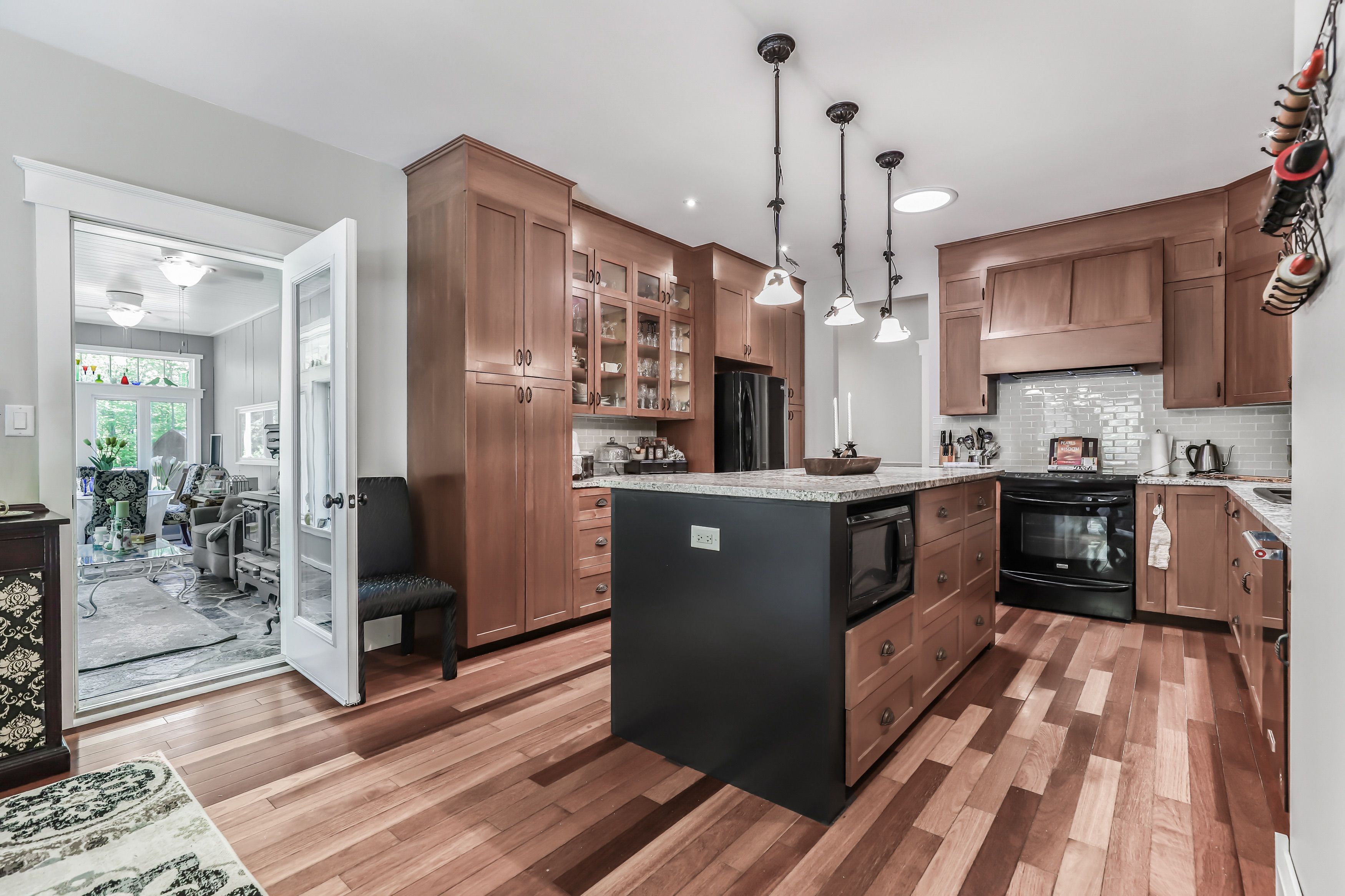 • Open-concept living space with hardwood floors and gourmet kitchen.