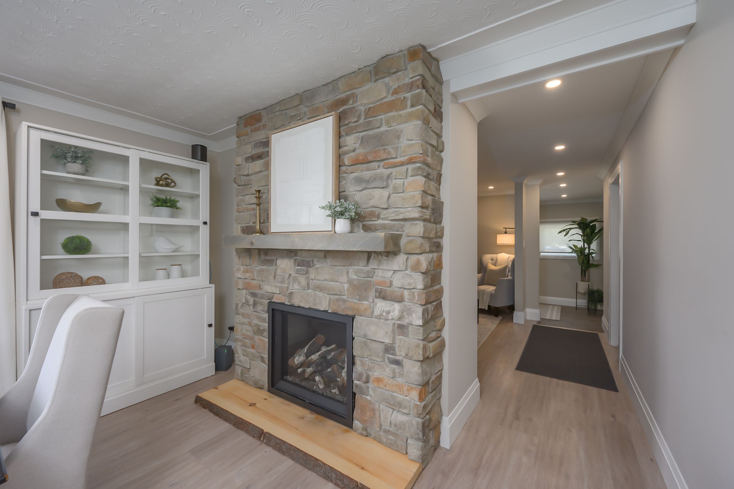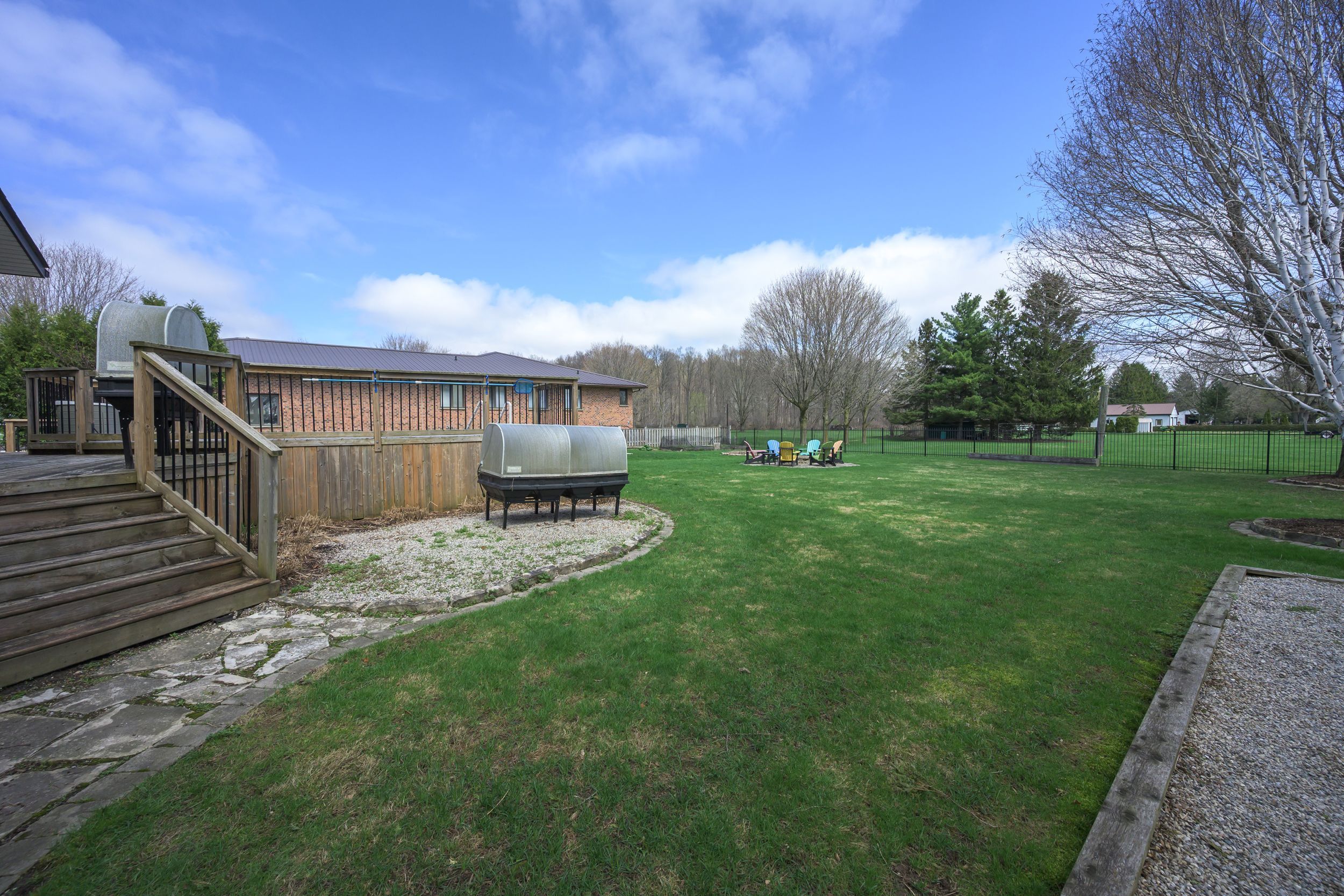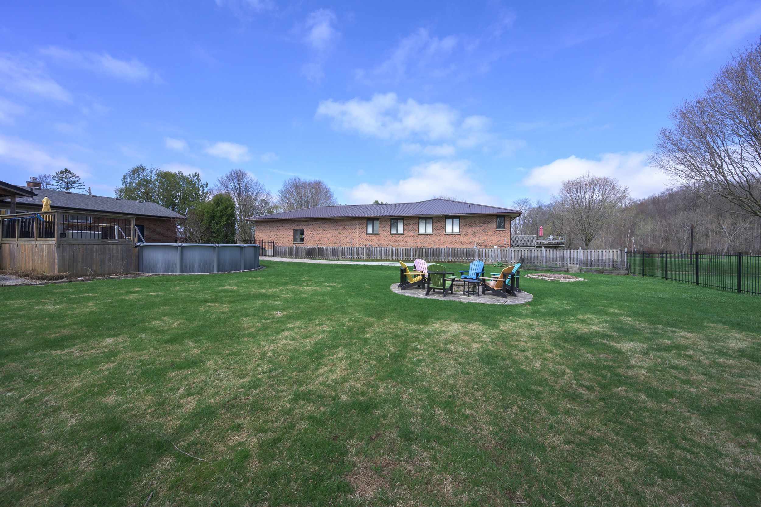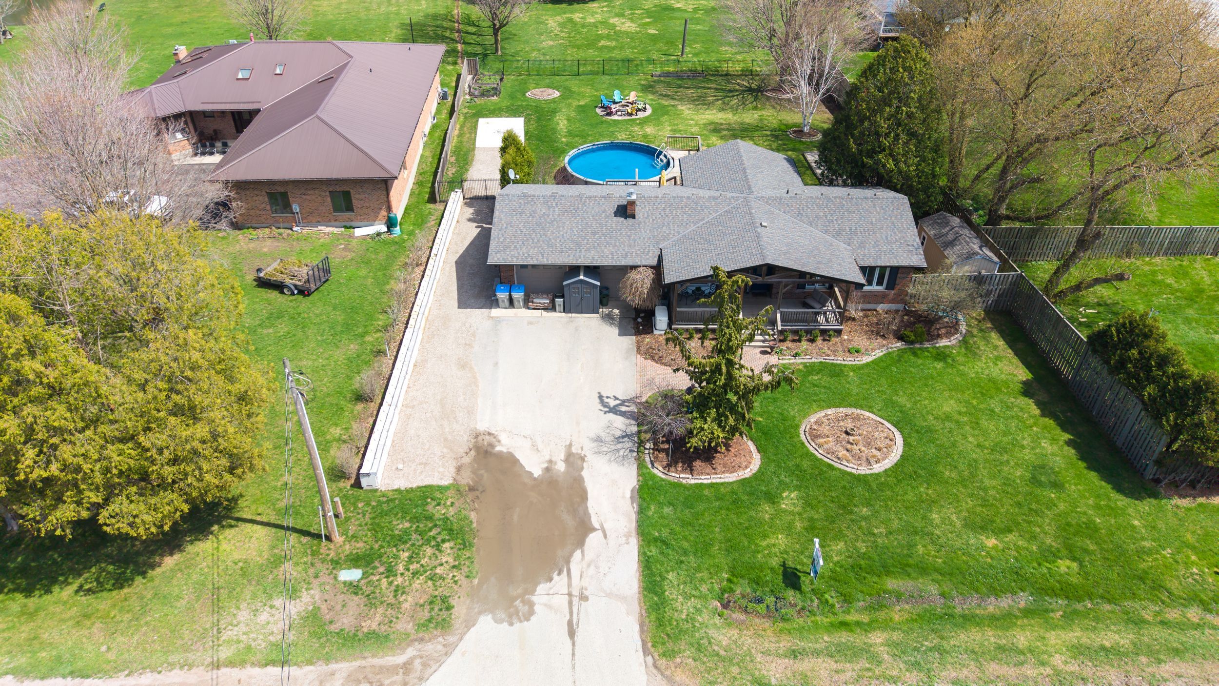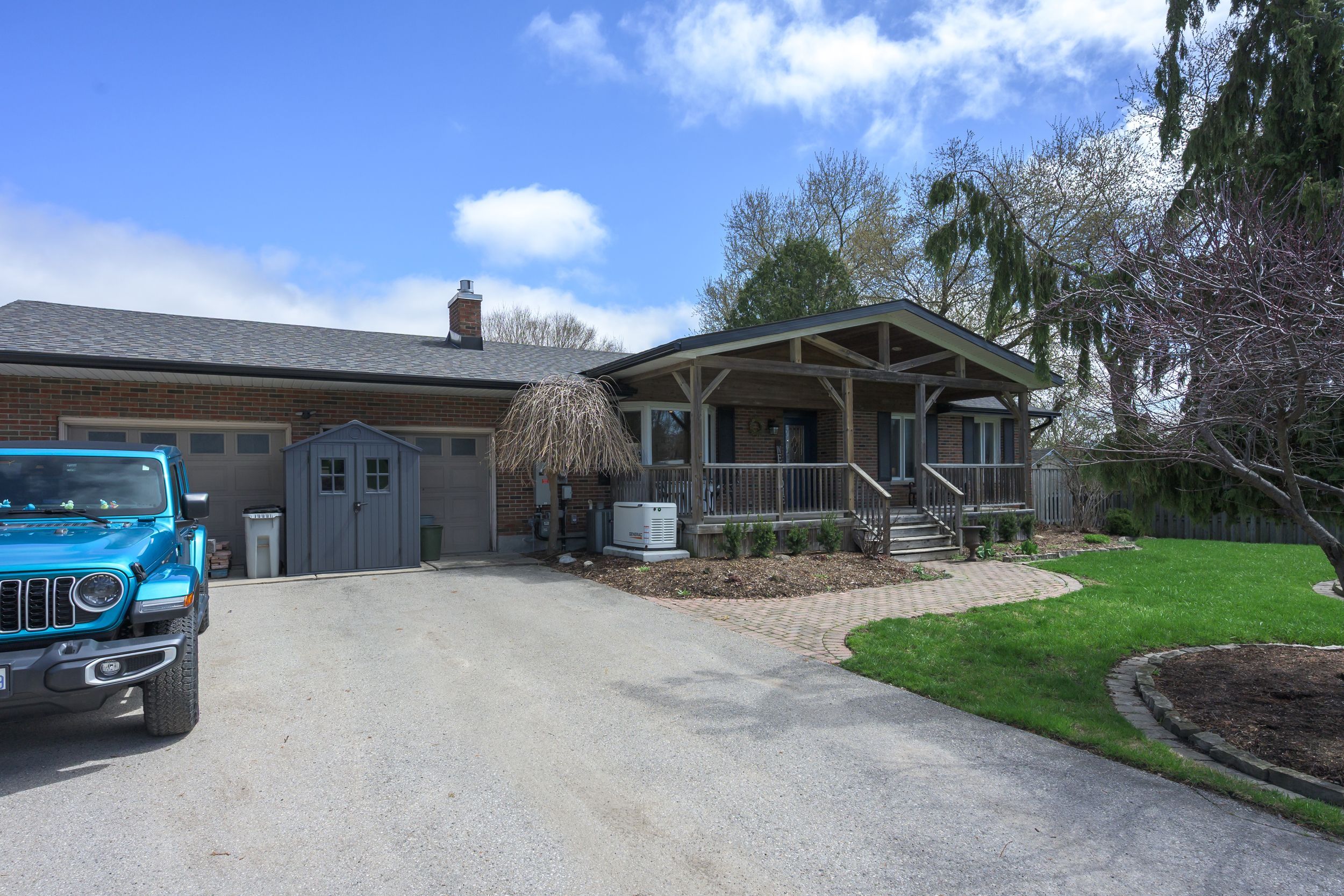 The stone walkway beckons you to step up onto the charming, covered porch - a gentle reminder of days gone by; when hanging out on the front porch was a customary tradition. Once you enter the home you can feel the warmth and energy of family living. The open concept kitchen is a gourmet's delight and the focal point of this home. The crisp white "cassey's kitchen (2022) combined with quartz countertops and top-of-the-line appliances is anchored by a massive island; making this space a showcase statement. There is also a walk-in pantry perfect for storing extra supplies, kitchen gadgets or setting up your espresso bar. The play of natural light in the living areas melds mother nature with the interior. The sight line to the backyard is truly impressive and presents a breath taking view of an outdoor paradise. There are 3 beautifully appointed bedrooms on the main level - all updated. Including a unique nursery - walk-in closet. The main bath has been tastefully redesigned and updated, including a custom walk-in shower. The dining/livingroom is accented with a floor to ceiling fieldstone and distressed timber mantel, and a newer gas fireplace insert. Currently the space is used as a multi-generational dining area. The double car garage has been professionally converted into a cozy den area for intimate conversations or just watching your favourite tv series. There is an easy step main floor laundry plus a main floor mudroom nook - perfect for hanging coats, kicking off boots - it could also easily be an in-home office with its separate entrance. Off the back of the mudroom is a storage room and access to the backyard. Downstairs there is a fourth bedroom for extended family or stay-over guests. There is a charming two-piece powder room recently updated. The lower level also offers a huge l shaped family room area perfect for watching the family to hangout. The current owners have both loved and stewarded this home for almost 4 decades. This is truly a rural escape!
