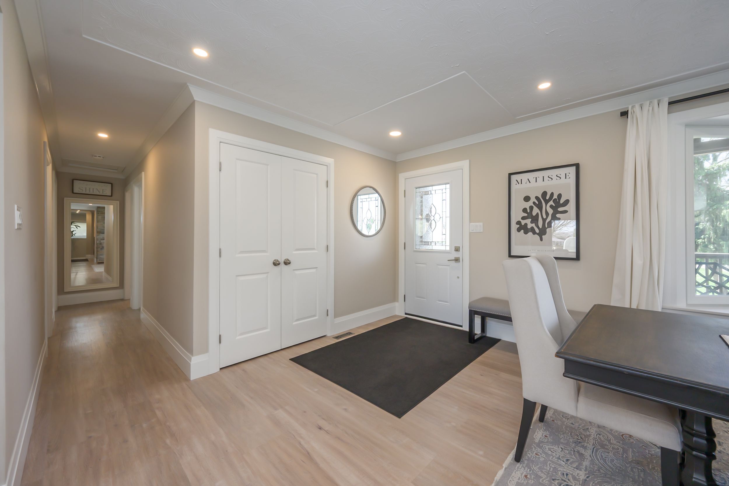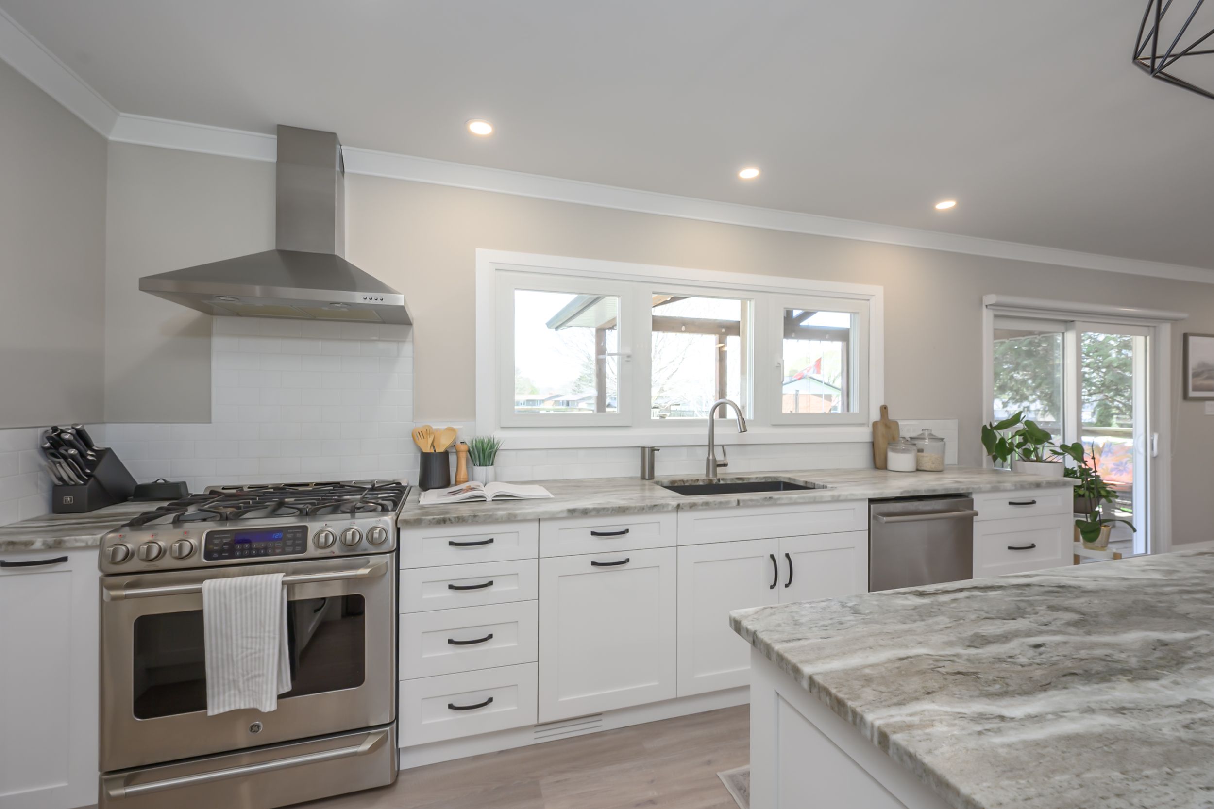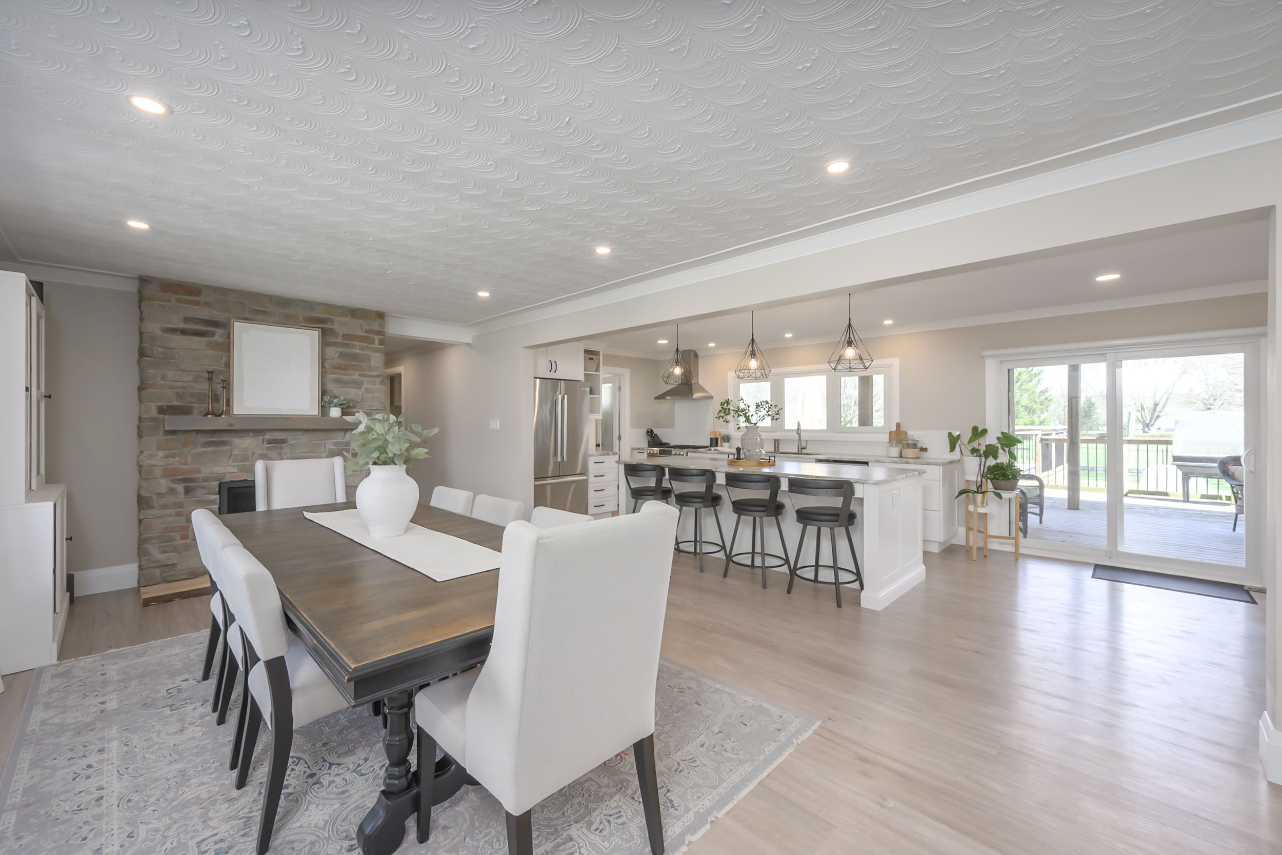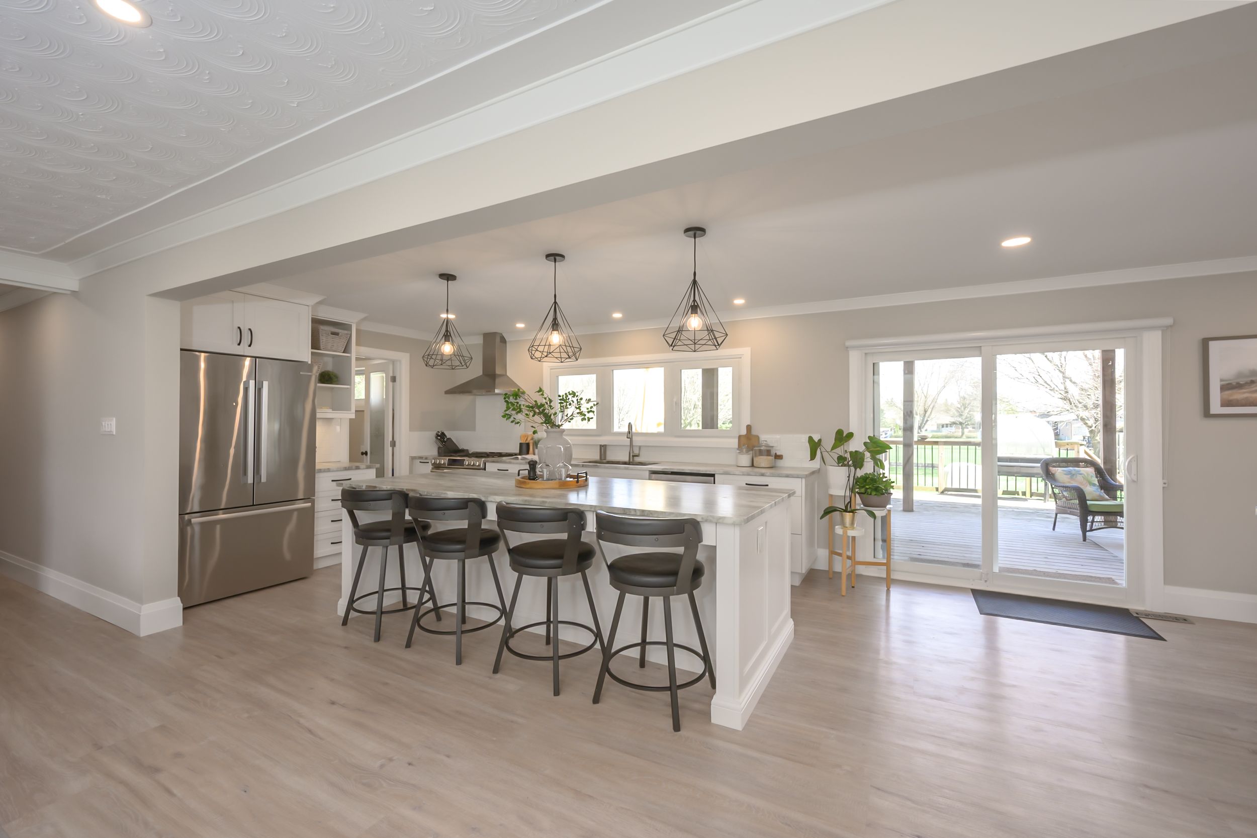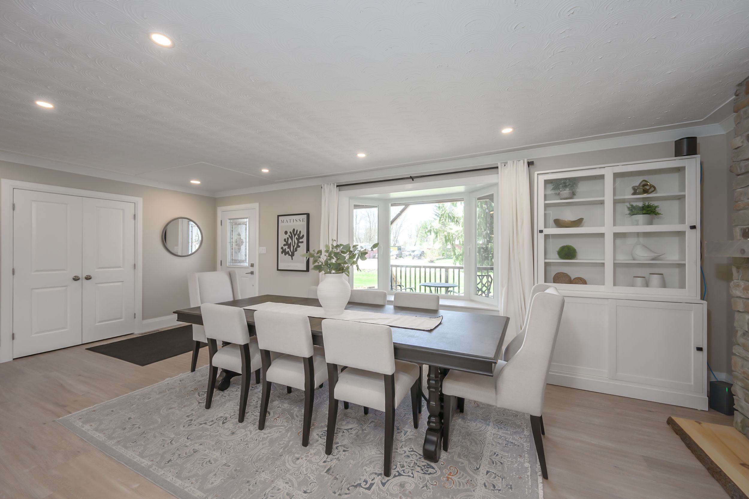 The stone walkway beckons you to step up onto the charming, covered porch - a gentle reminder of days gone by; when hanging out on the front porch was a customary tradition. Once you enter the home you can feel the warmth and energy of family living. The open concept kitchen is a gourmet's delight and the focal point of this home. The crisp white "cassey's kitchen (2022) combined with quartz countertops and top-of-the-line appliances is anchored by a massive island; making this space a showcase statement. There is also a walk-in pantry perfect for storing extra supplies, kitchen gadgets or setting up your espresso bar. The play of natural light in the living areas melds mother nature with the interior. The sight line to the backyard is truly impressive and presents a breath taking view of an outdoor paradise. There are 3 beautifully appointed bedrooms on the main level - all updated. Including a unique nursery - walk-in closet. The main bath has been tastefully redesigned and updated, including a custom walk-in shower. The dining/livingroom is accented with a floor to ceiling fieldstone and distressed timber mantel, and a newer gas fireplace insert. Currently the space is used as a multi-generational dining area. The double car garage has been professionally converted into a cozy den area for intimate conversations or just watching your favourite tv series. There is an easy step main floor laundry plus a main floor mudroom nook - perfect for hanging coats, kicking off boots - it could also easily be an in-home office with its separate entrance. Off the back of the mudroom is a storage room and access to the backyard. Downstairs there is a fourth bedroom for extended family or stay-over guests. There is a charming two-piece powder room recently updated. The lower level also offers a huge l shaped family room area perfect for watching the family to hangout. The current owners have both loved and stewarded this home for almost 4 decades. This is truly a rural escape!