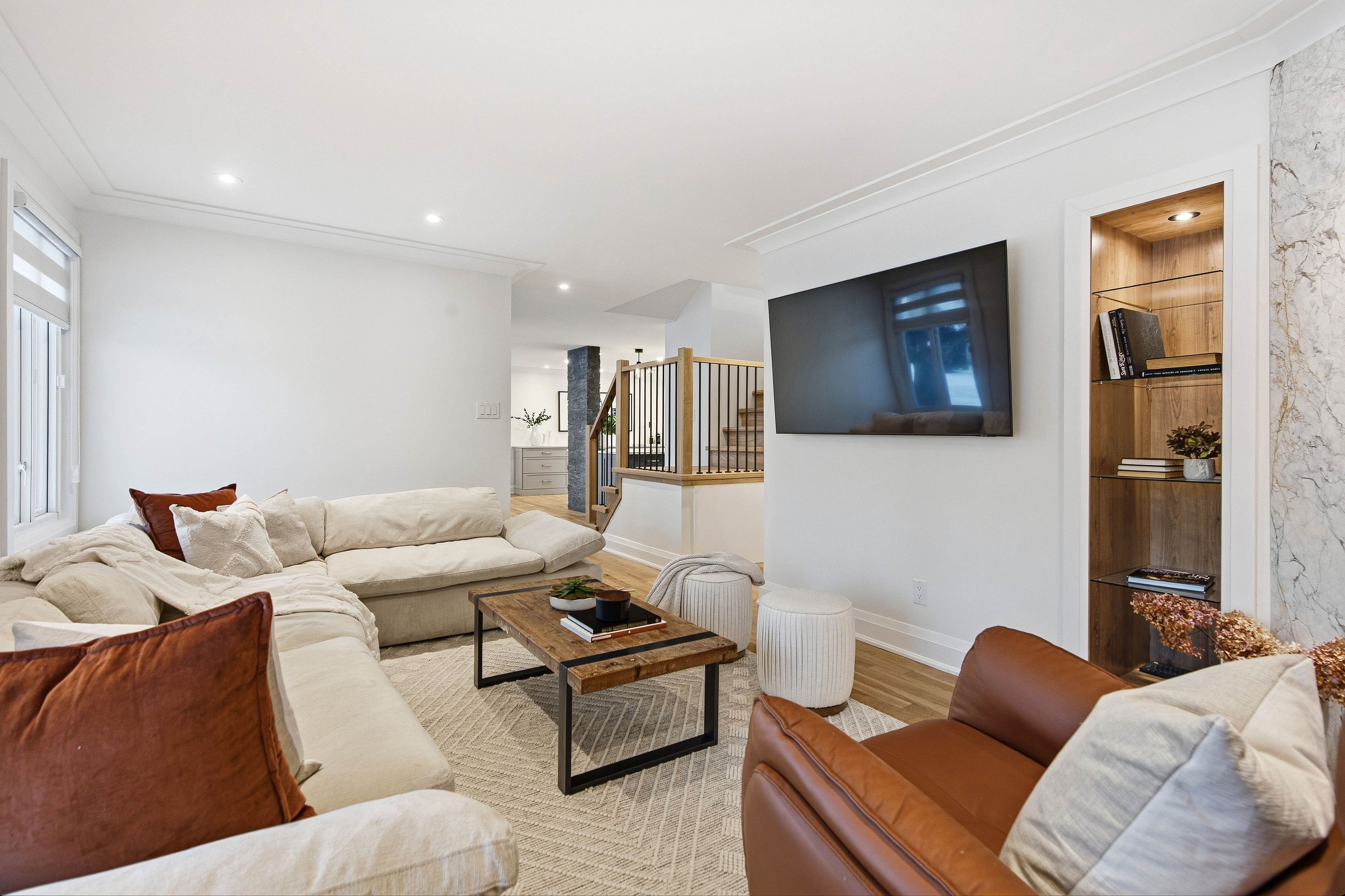 A rare find gorgeous luxury home with very large lot backing on to ncc land, only a few steps to the ottawa river right from it's own backyard, in one of ottawa's most established and mature neighbourhoods, characterized by quiet streets, excellent schools and strong community vibe. 4 bedroom (with main floor bedroom and full bath) 3. 5 baths modern and updated home, full of big bright windows and beautiful scenes all around. High end kitchen overlooking the best view in the neighborhood: green space and water! Hardwood staircase leads you upstairs to 2 large rooms and a huge primary bedroom with custom walk in closet and big luxury ensuite bath. Finished basement with plenty of storage and a convenient powder room. Huge fully landscaped private backyard ready for the most exquisite gatherings. A true gem in a luxurious and affordable neighborhood!