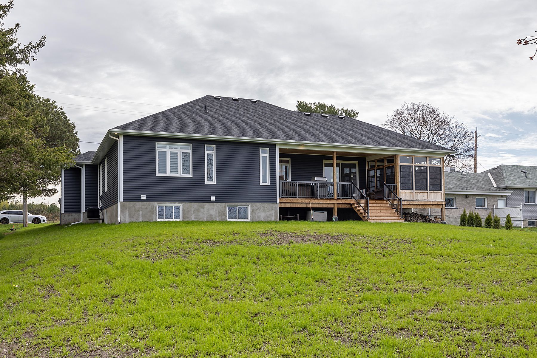 Don't miss out on this beautiful custom built; 4 year old bungalow! It sits on a west facing 90'x180' lot with no neighboring homes in the front or rear. The large backyard is a blank canvas awaiting the perfect oasis with year round sunsets. Open concept, 3 bedroom, 2 baths with 9' ceilings main floor and basement- just minutes to the 401 and all kingston has to offer. Rare rural location with access to natural gas and high speed fiber optic internet; yet only 15 mins to downtown kingston. Oversized heated attached double car garage with one 9' door and one 10' with extended bay. Bright open concept kitchen with built in wine fridge, wine rack and bar area. Stunning quarts countertops, engineered hardwood, 9 ft ceilings, and oversized 8' solid core doors throughout. Covered front and rear porches with pine tongue and groove ceilings. Premium 8' sliding doors fill the home with natural light and give access to the 3 season cedar screened in room and rear covered deck. Stone fireplace keeps the entire living area incredibly cozy. Master bedroom with walk in closet and ensuite featuring a large soaker tub and standing glass shower. California shutters throughout. Main floor laundry. Partially finished basement is roughed in for another full bath and has plenty of space for additional bedrooms or whatever suits your needs. Just a few steps to glenburnie grocery, lcbo, and shannon's corners little league park with ball diamond, basketball courts, and city maintained skating rink. This one won't last long! Inquire for more details.