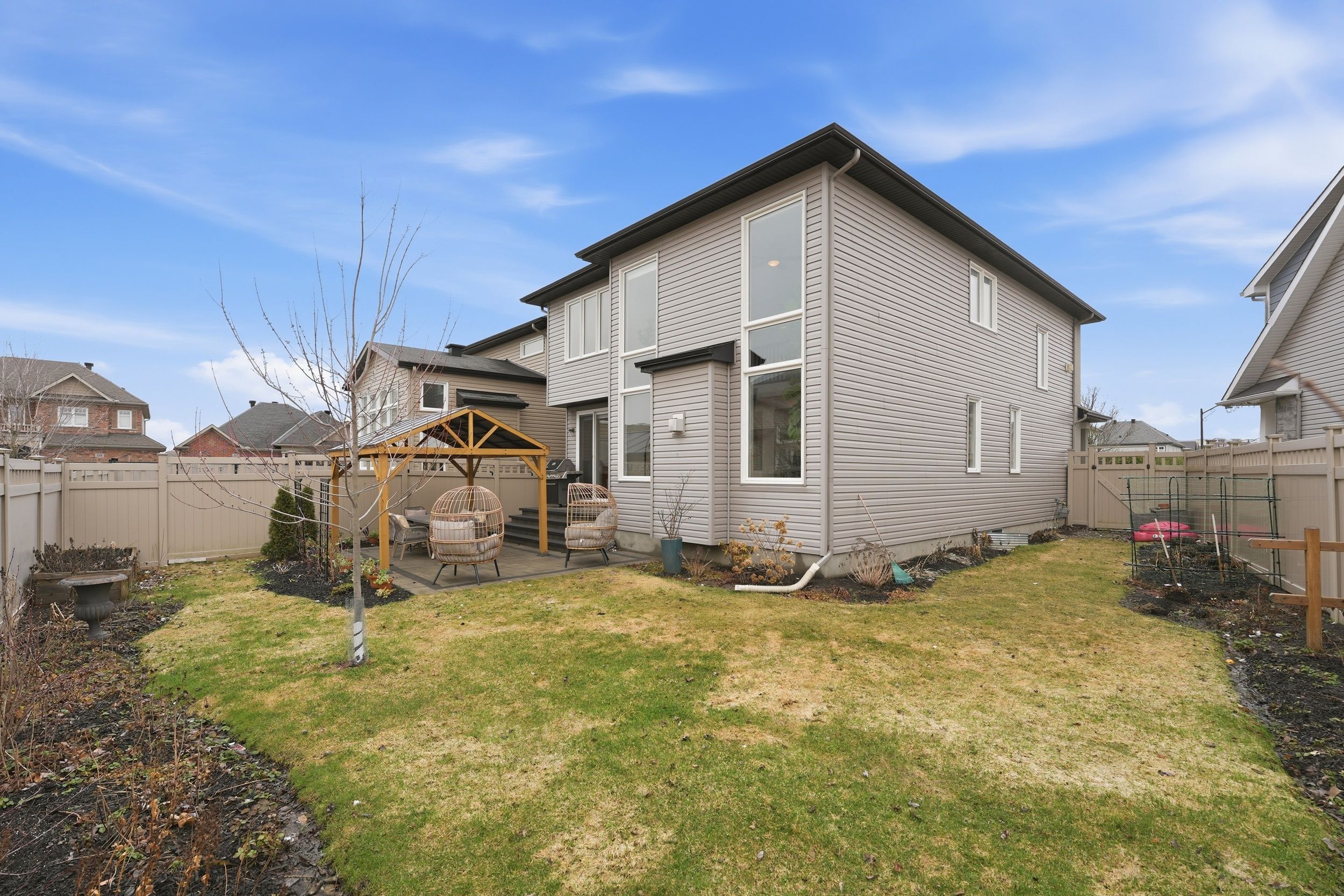 Welcome to 216 balikun heights! This showstopper cardel-built north hampton home is perfectly positioned on a premium pie-shaped lot in one of stittsville's most sought-after family-friendly neighbourhoods. Thoughtfully designed with both style and function in mind, this home offers an exceptional blend of modern finishes and comfortable living spaces. Step inside to discover a bright, open-concept main floor layout filled with natural light, white-oak flooring, main floor office & spacious mudroom. The beautifully appointed chef's kitchen flows seamlessly into the living and dining areas which boast an abundance of expansive windows that create the perfect ambiance for gatherings of family and friends. Upstairs, you'll find the convenience of a well-sized laundry room and 4 generously sized bedrooms, including a serene primary retreat with ensuite designed for relaxation, and a stunning window-filled flex space perfect for a cozy upstairs lounge or kids play area. The fully finished basement extends the living space with a versatile recreation area and a private bedroom, ideal for guests or growing families. Outside, the expansive lot offers premium outdoor space with endless possibilities, whether you envision summer entertaining, a play area, or your own private backyard oasis. Located in an established community close to parks, the trans canada trail, highly rated schools, and all amenities, this home delivers the perfect balance of lifestyle and convenience. A true turnkey opportunity, this is the one you've been waiting for.