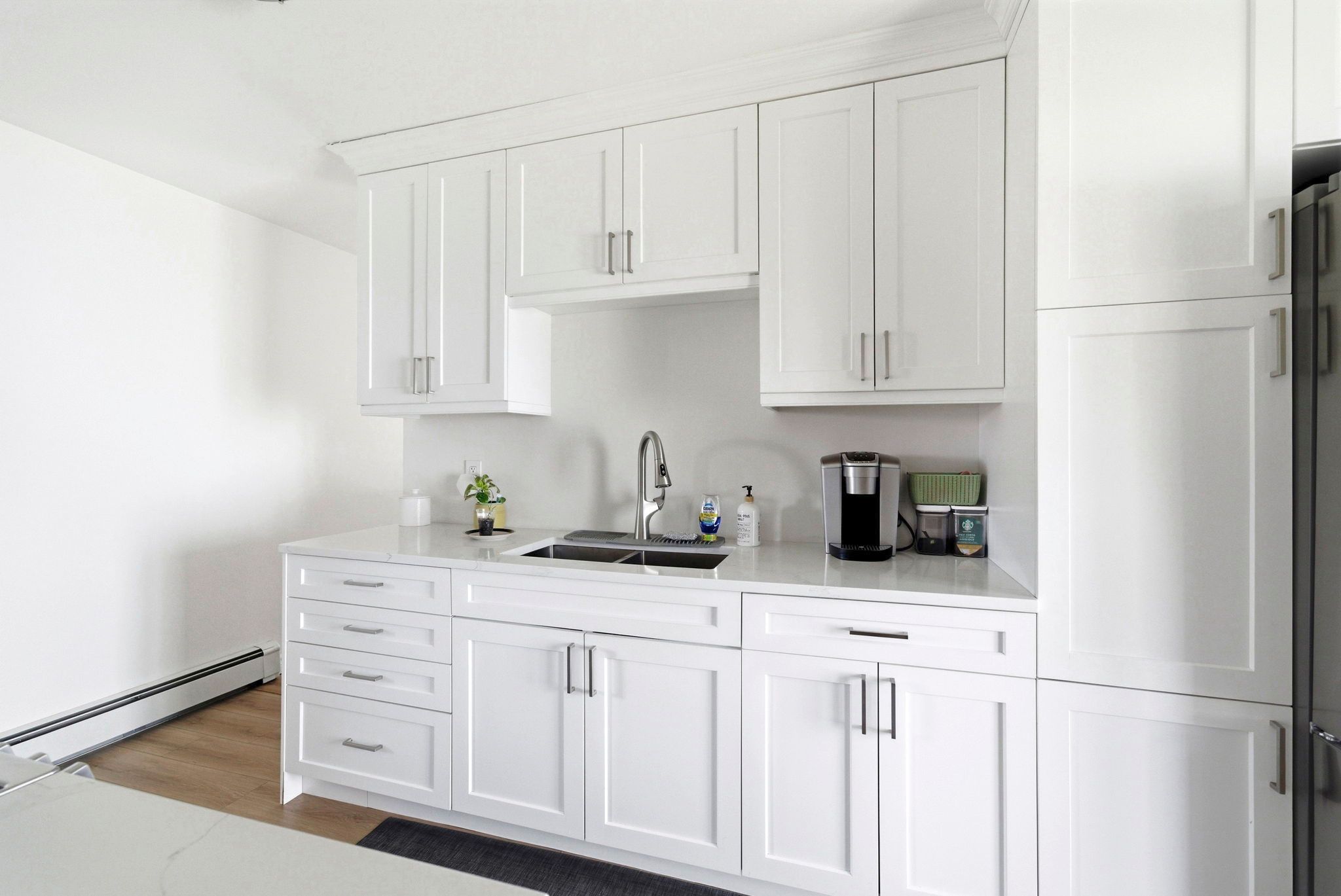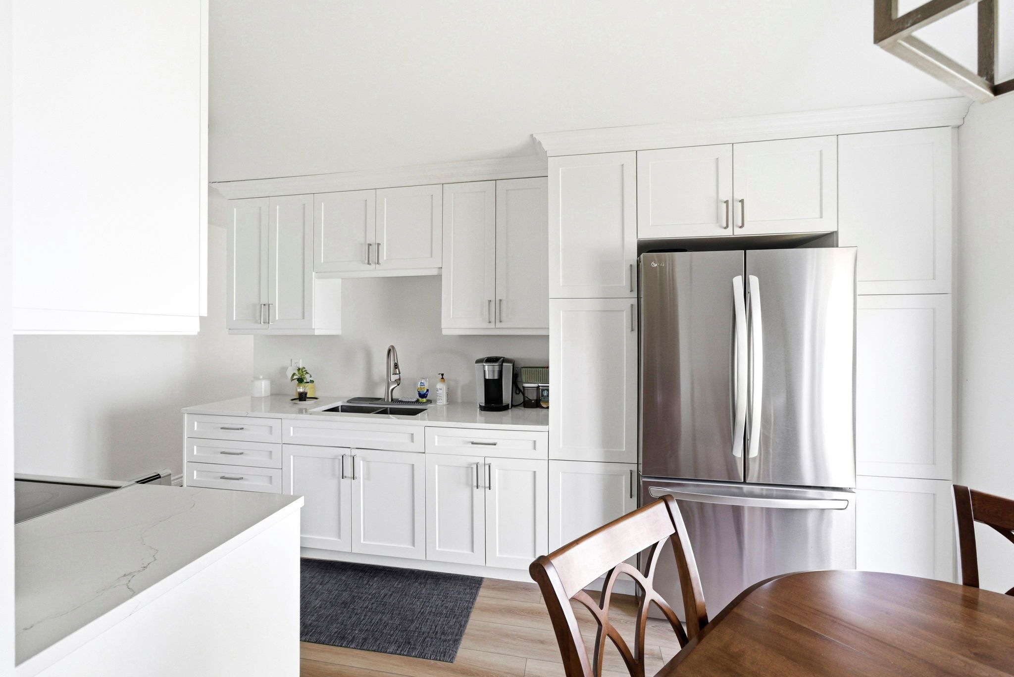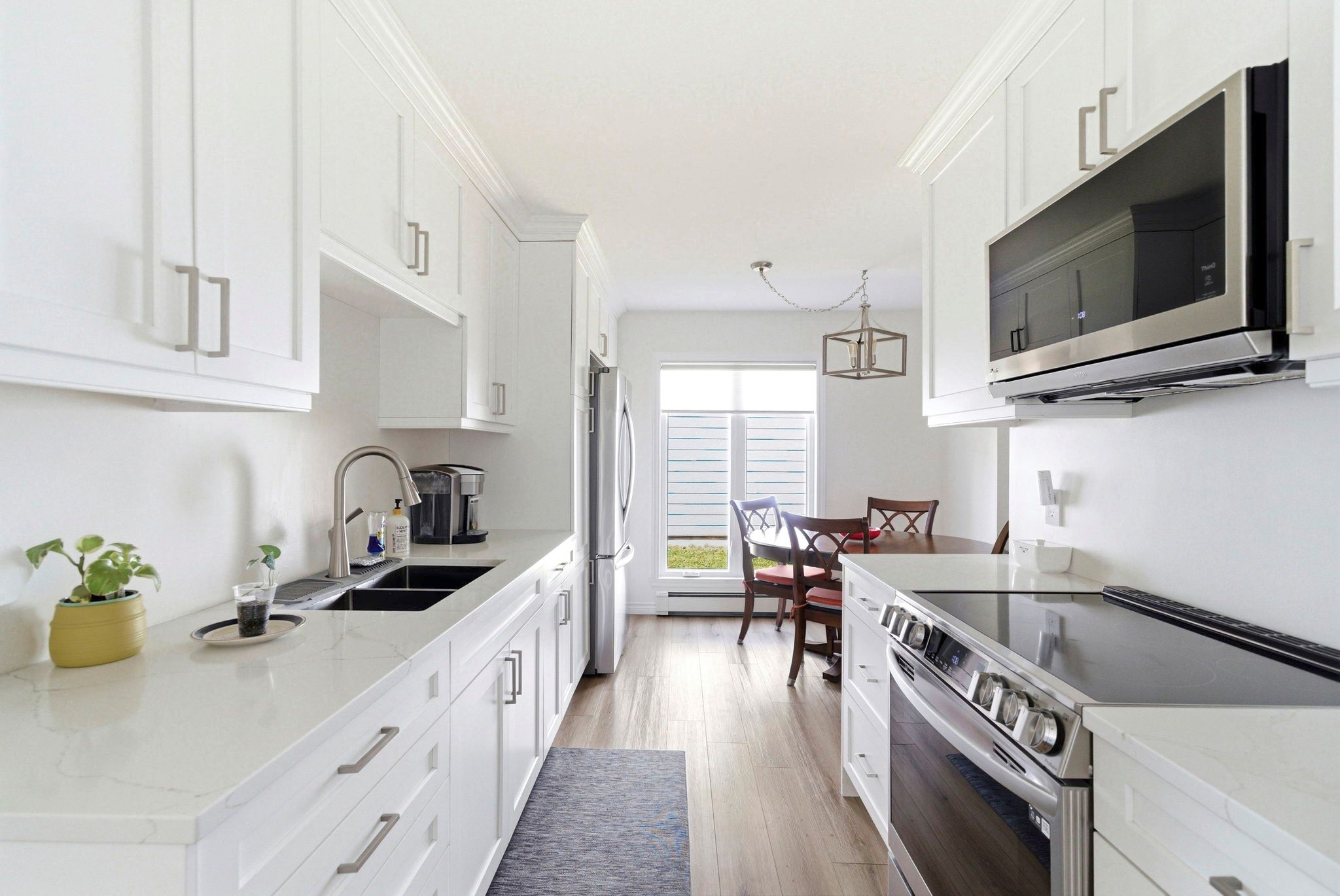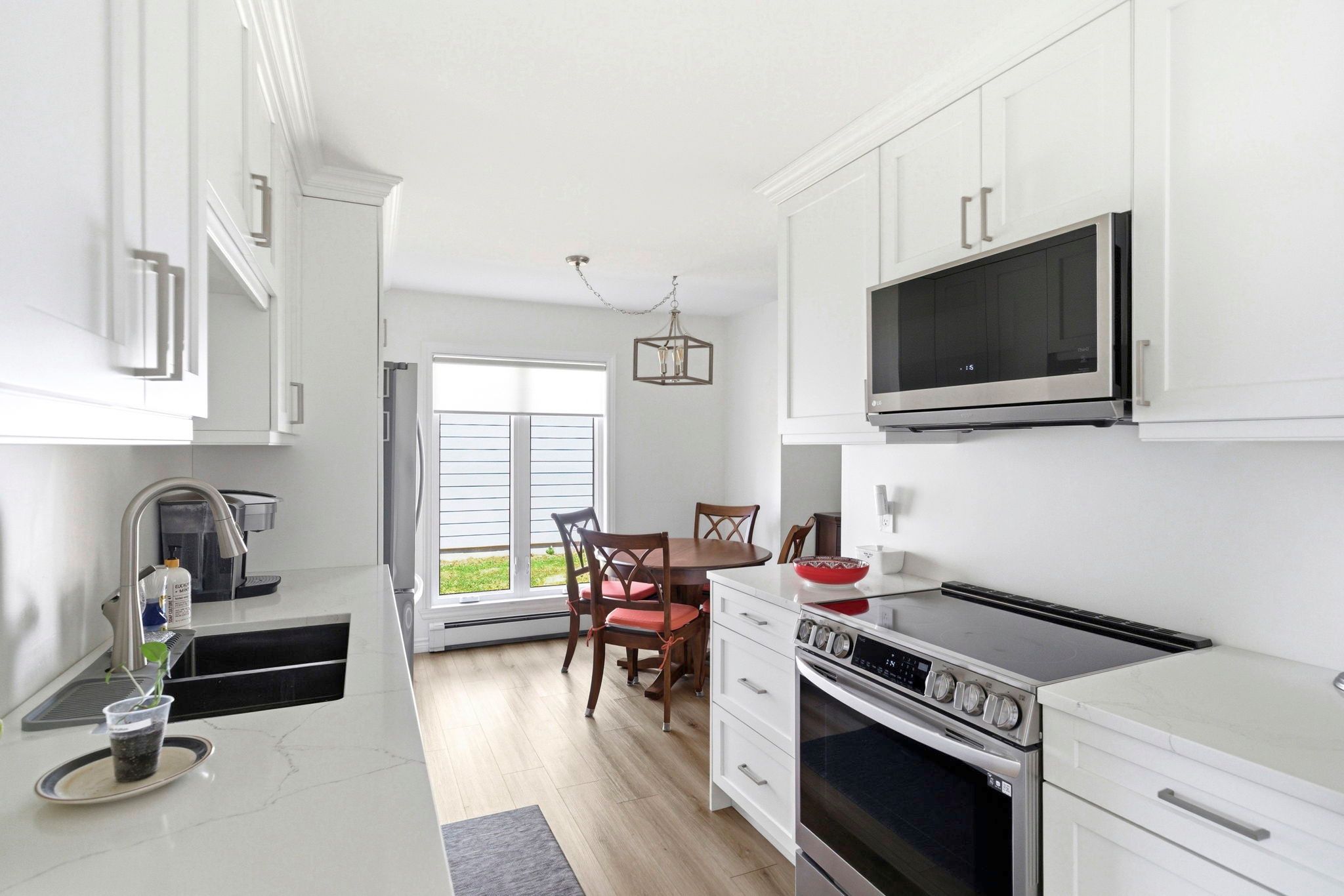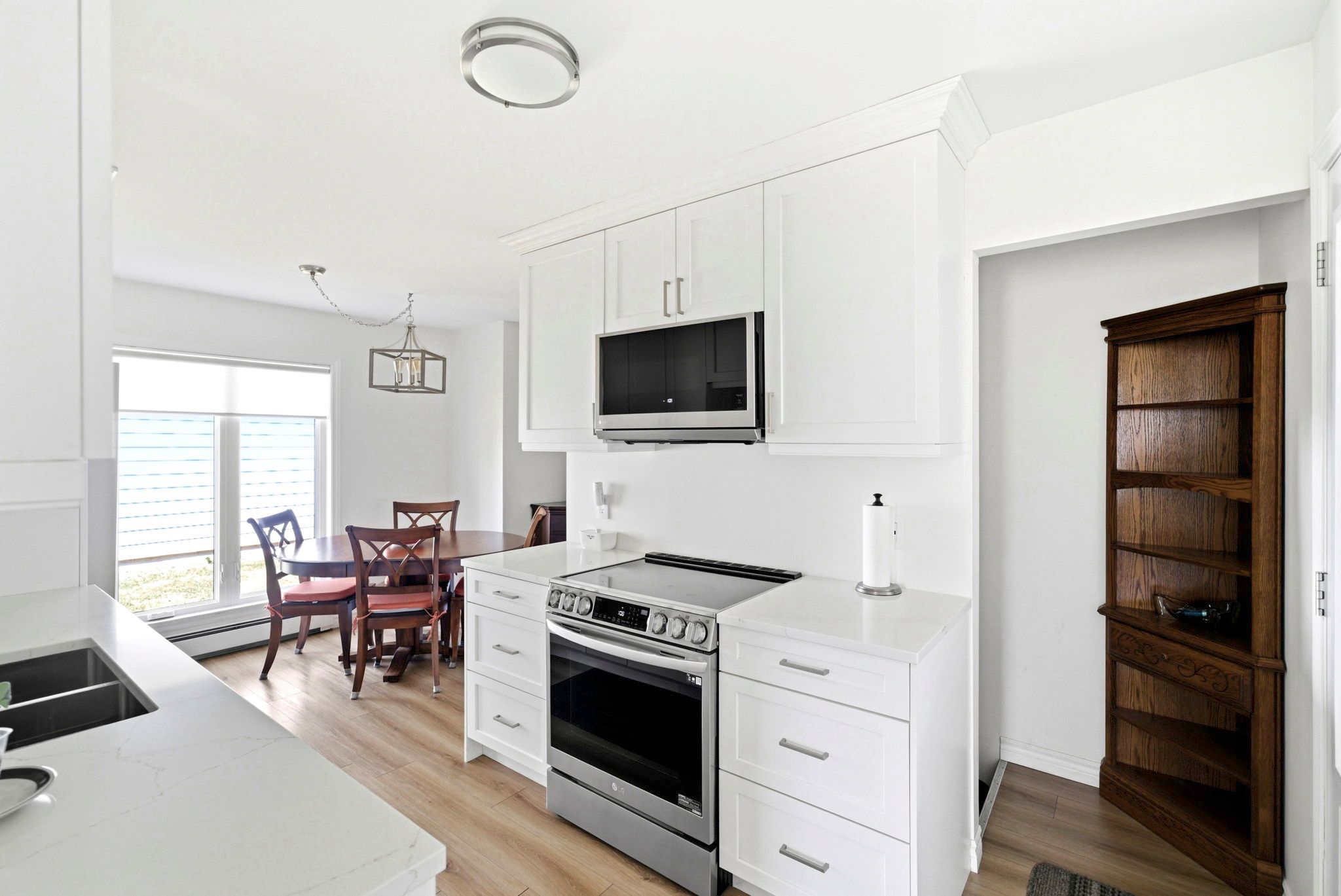 • Renovated kitchen with quartz countertops and stainless steel appliances.