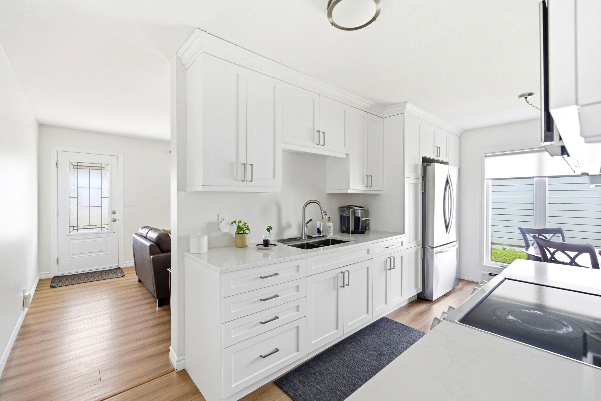 Step into comfort, style, and smart value with this beautifully updated 3-bedroom home-perfectly positioned close to all amenities for ultimate everyday convenience. The heart of the home is a recently renovated gourmet eat-in kitchen, showcasing sleek quartz countertops, stainless steel appliances, and a modern design that's ready for both morning coffees and evening entertaining. The bright and inviting living room flows seamlessly, enhanced by new flooring, fresh paint throughout the main level, and custom blinds that add a polished finish. Main floor, you'll find three well-sized bedrooms and a stylish 3-piece bathroom featuring a walk-in tiled shower. The partially finished basement offers excellent flexibility, with space ideal for a potential fourth bedroom, home office, or hobby area. Outside, enjoy a fully fenced yard complete with a shed, charming gazebo-your on a interlocking stone patio creates your own private retreat for relaxing or hosting. A paved driveway with ample parking and a convenient carport adds to the home's everyday practicality. Additional highlights include a natural gas fired boiler system (2020) gas hwt (2021). Whether you're a first-time buyer or looking to expand your investment portfolio, this move-in-ready home delivers exceptional value with modern updates and versatile living space. As per seller direction allow 24 hour irrevocable on offers.