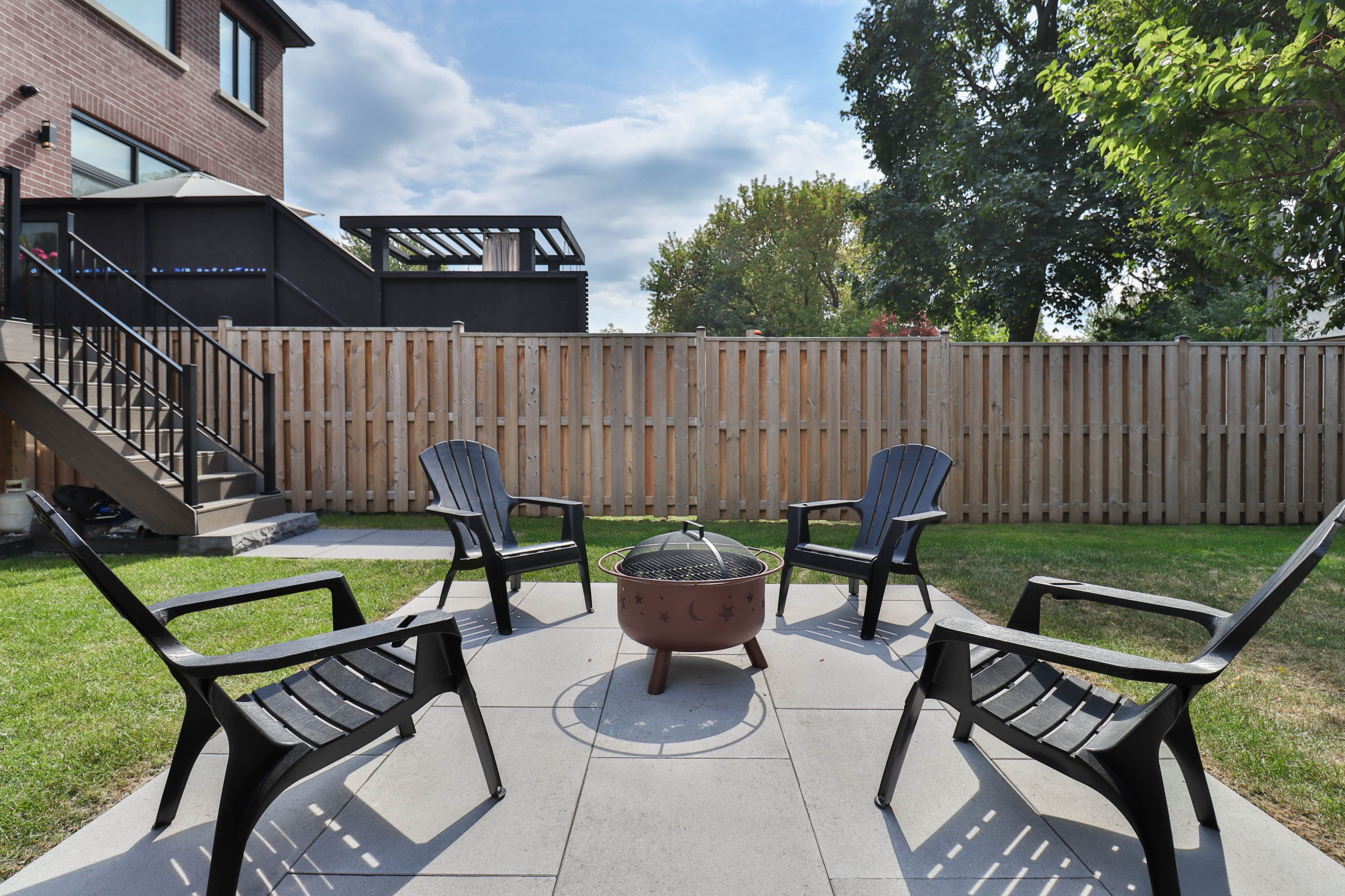 • Backyard oasis designed for memorable gatherings in a quiet neighborhood.