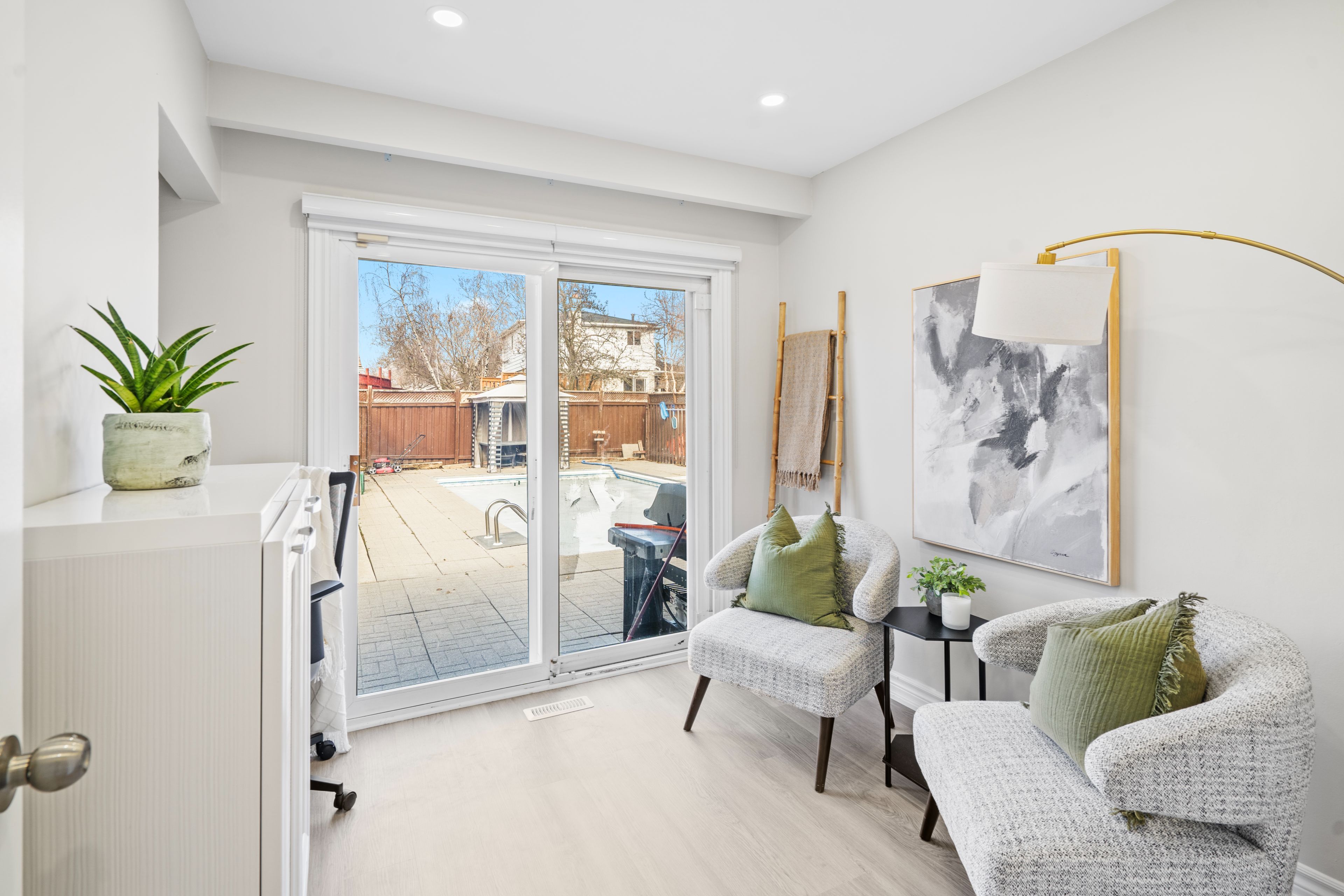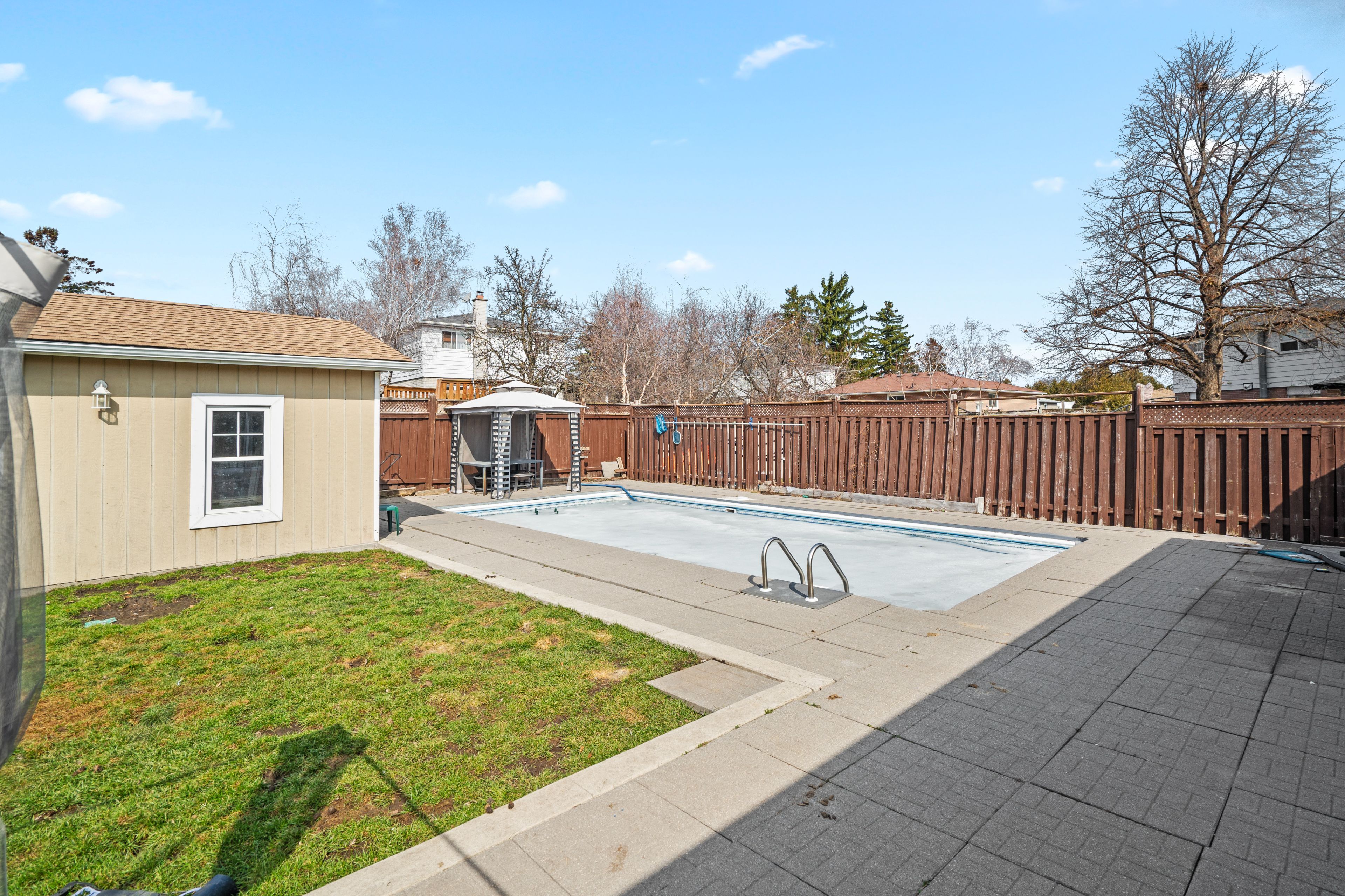 • Enjoy a large backyard with a heated swimming pool and gazebo.