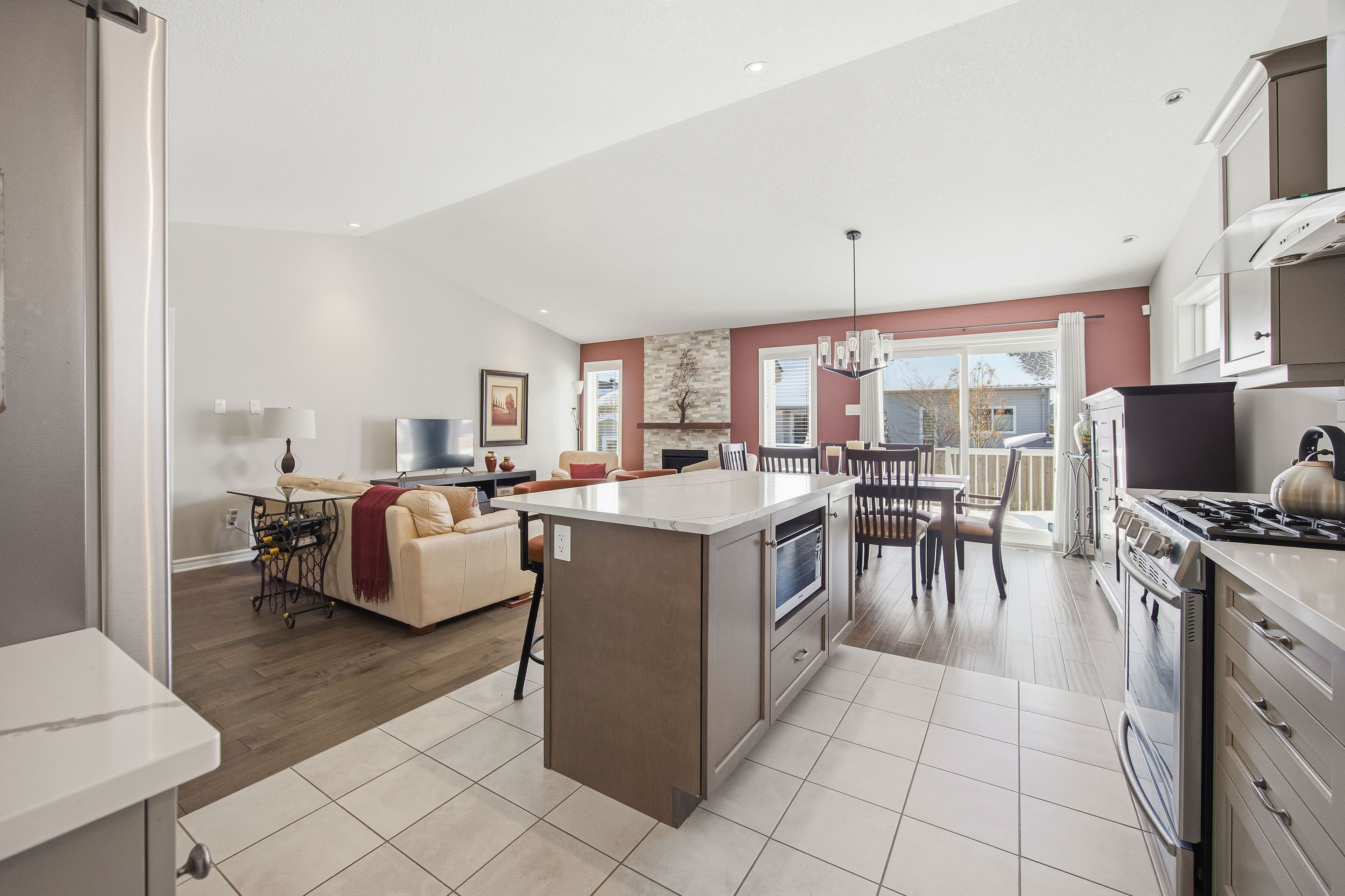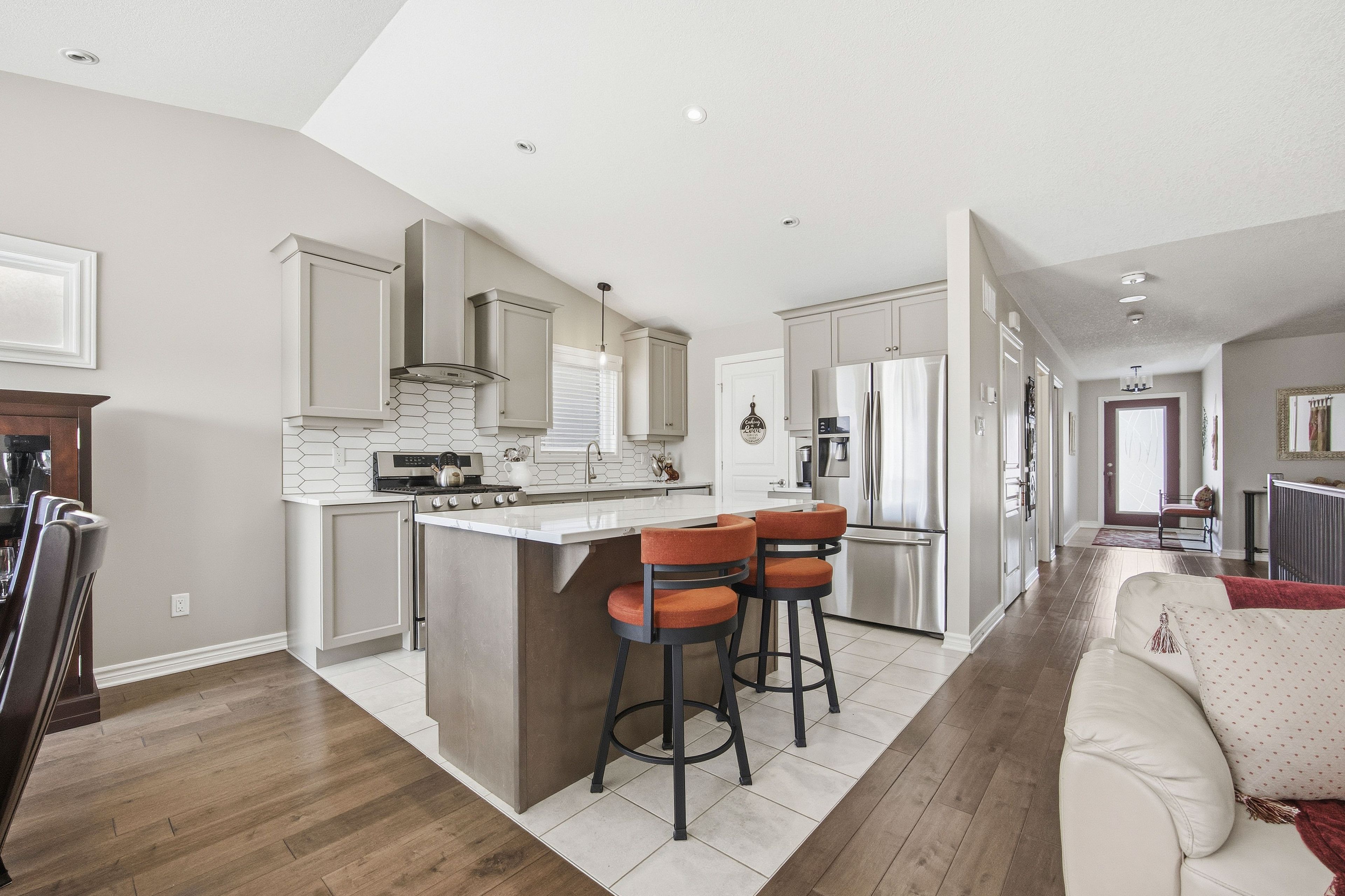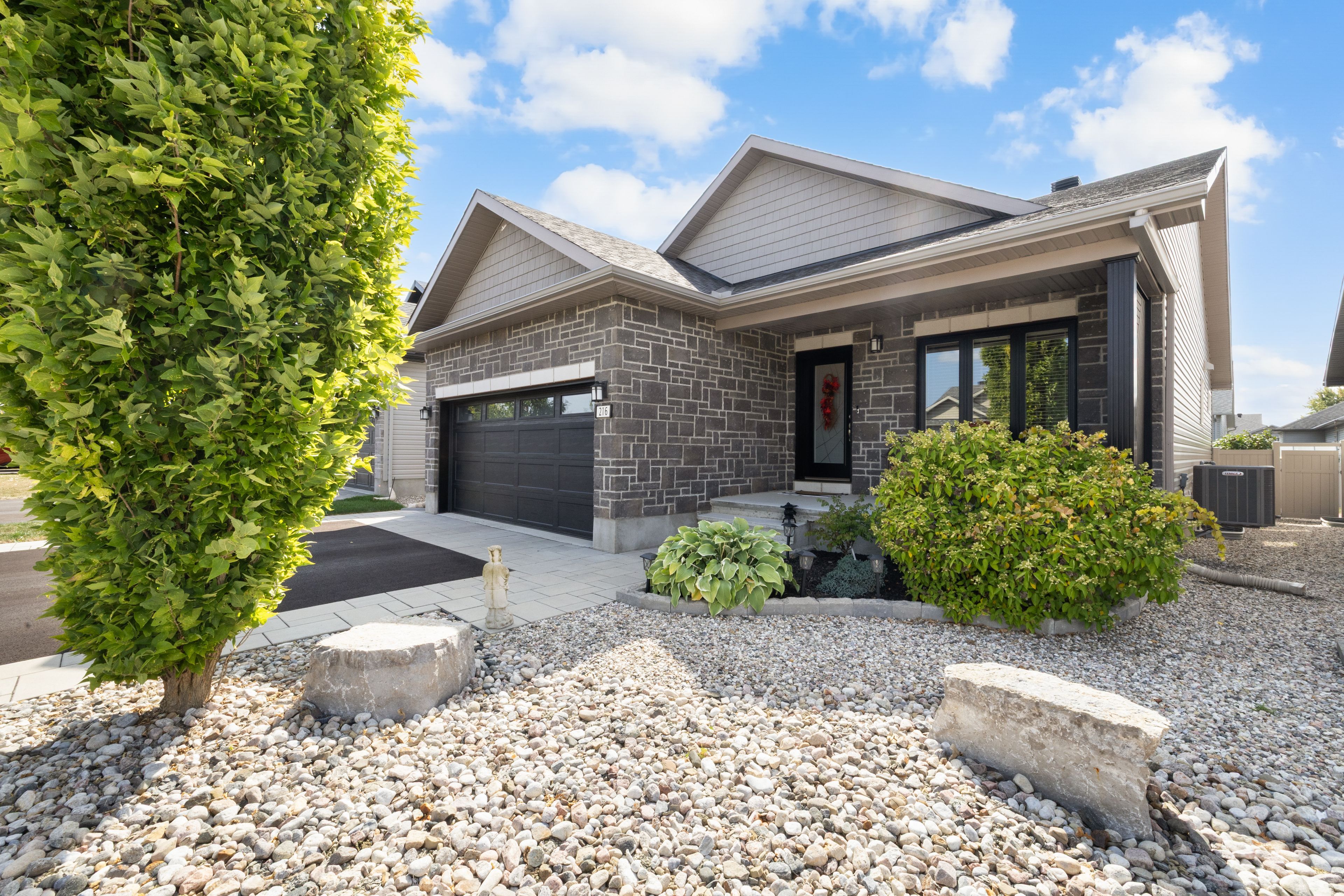 Beautiful bungalow located in mill run, one of almonte's most sought-after communities, where pride of ownership is evident throughout. This thoughtfully designed 2+2 bedroom, 3 full bathroom home offers a bright, open-concept layout ideal for both everyday living and entertaining. Vaulted ceilings create an inviting sense of space in the main living area, complemented by rich hardwood floors and a cozy gas fireplace. The custom kitchen is truly the heart of the home, featuring ample cabinetry, stainless steel appliances, a large island with seating, and an impressive walk-in pantry. The primary suite has been redesigned to provide additional space and comfort, complete with a generous walk-in closet and a well-appointed 4-piece ensuite. A convenient main-level laundry room enhances the home's seamless flow. The finished lower level offers abundant additional living space, including a spacious recreation room with gas fireplace, a full bathroom, and two large bedrooms-perfect for guests, extended family, fitness room or a home office setup. This home also provides exceptional storage and peace of mind with a standby home generator. Step outside to enjoy a zero-maintenance yard and a professionally built shed, ideal for easy living. Situated in a prime location within walking distance to grocery stores, pharmacy, coffee shops and hardware store. Minutes to almonte and its charming boutiques, cafés, and restaurants. This exceptional home blends comfort, convenience, and community, offering refined, low-maintenance living with vibrant small-town charm.
