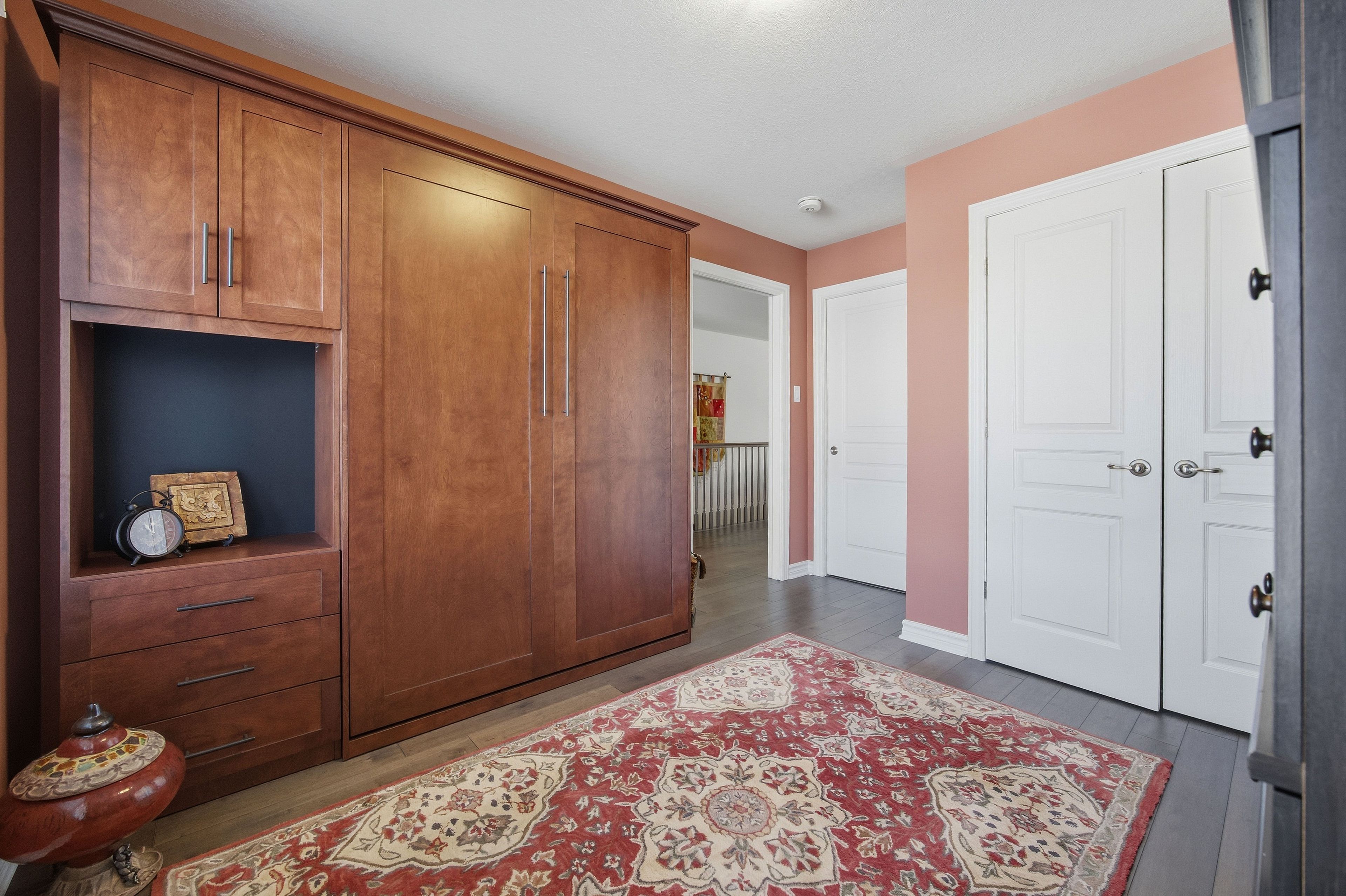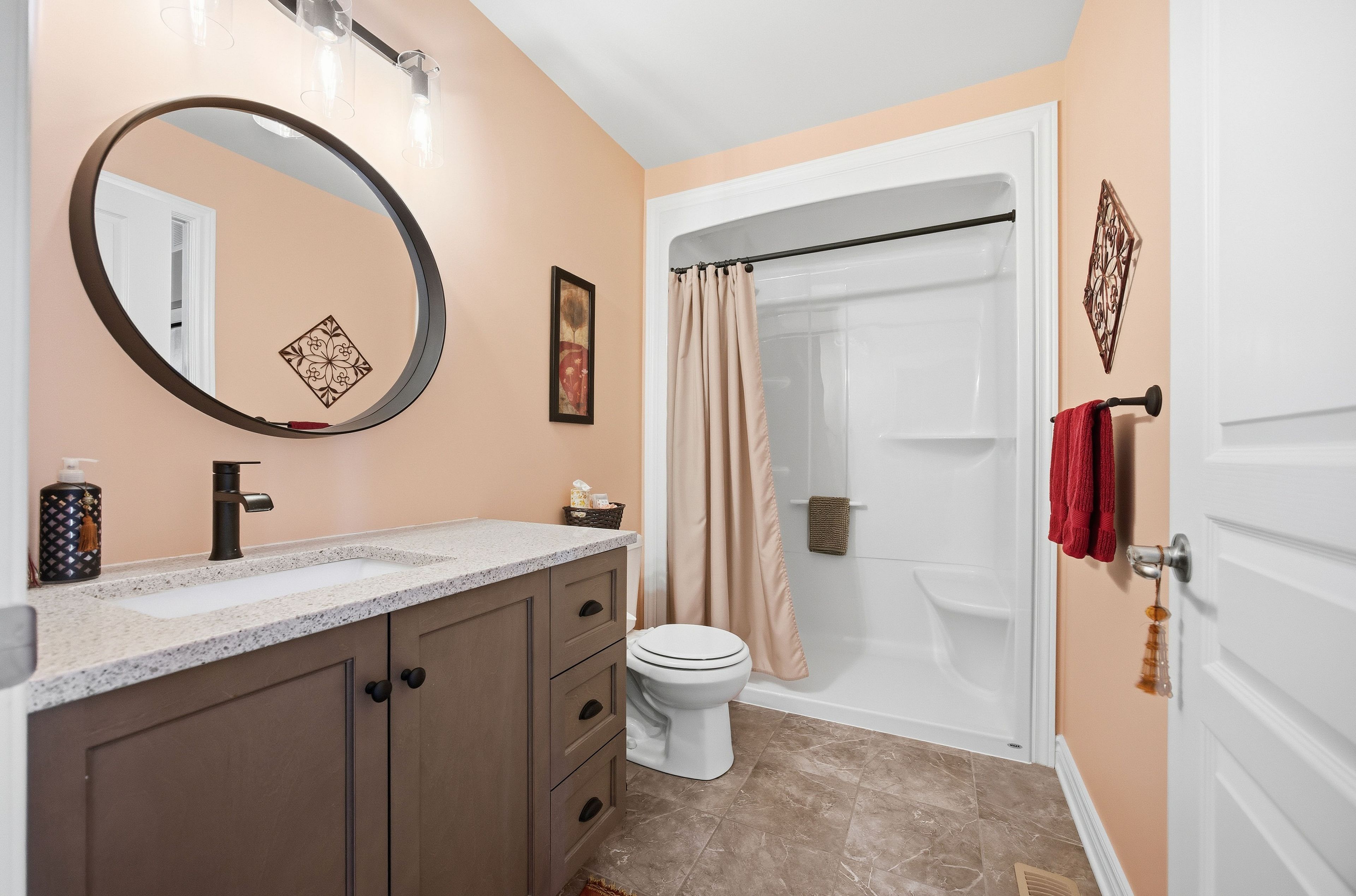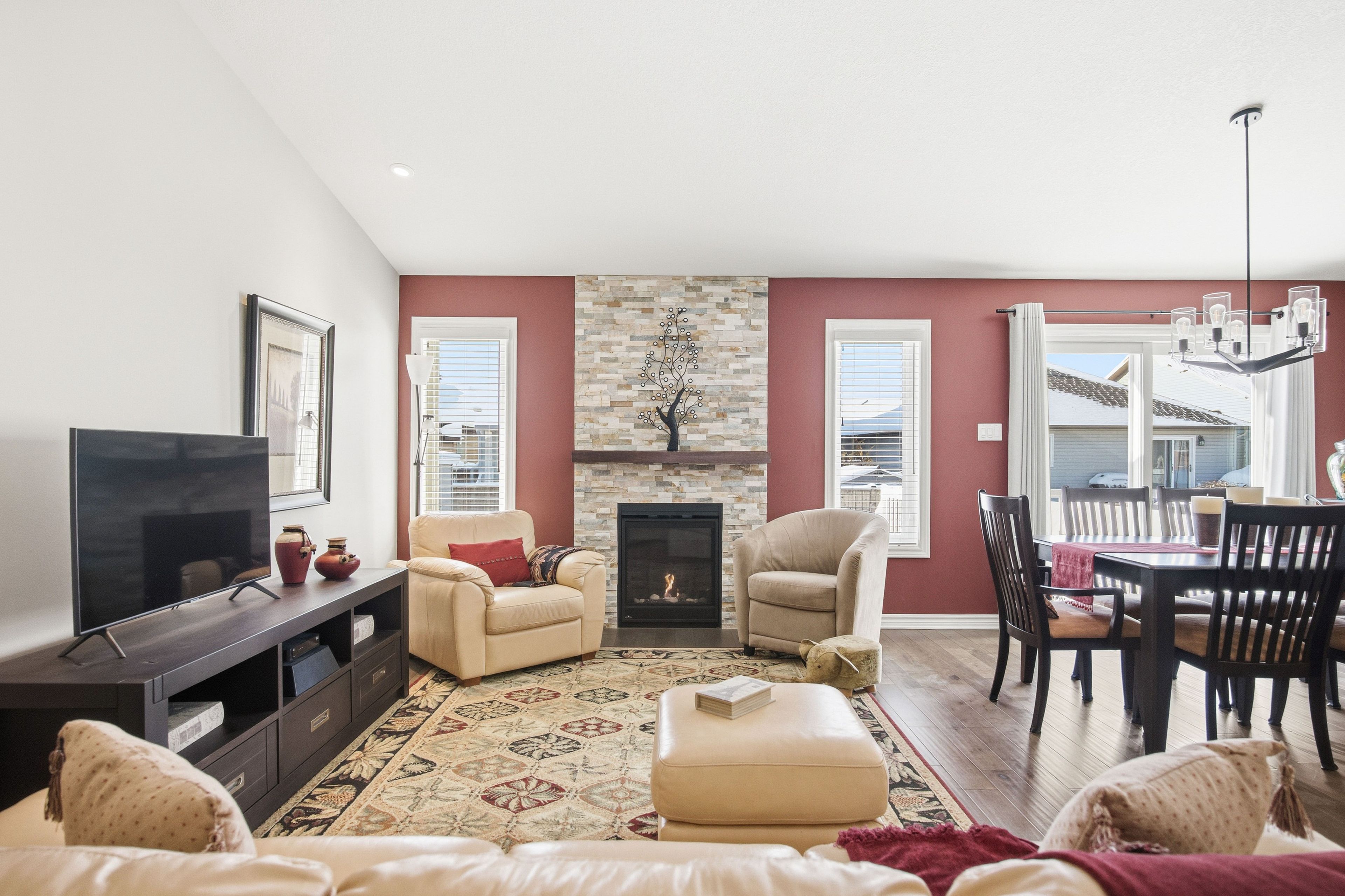 Beautiful bungalow located in mill run, one of almonte's most sought-after communities, where pride of ownership is evident throughout. This thoughtfully designed 2+2 bedroom, 3 full bathroom home offers a bright, open-concept layout ideal for both everyday living and entertaining. Vaulted ceilings create an inviting sense of space in the main living area, complemented by rich hardwood floors and a cozy gas fireplace. The custom kitchen is truly the heart of the home, featuring ample cabinetry, stainless steel appliances, a large island with seating, and an impressive walk-in pantry. The primary suite has been redesigned to provide additional space and comfort, complete with a generous walk-in closet and a well-appointed 4-piece ensuite. A convenient main-level laundry room enhances the home's seamless flow. The finished lower level offers abundant additional living space, including a spacious recreation room with gas fireplace, a full bathroom, and two large bedrooms-perfect for guests, extended family, fitness room or a home office setup. This home also provides exceptional storage and peace of mind with a standby home generator. Step outside to enjoy a zero-maintenance yard and a professionally built shed, ideal for easy living. Situated in a prime location within walking distance to grocery stores, pharmacy, coffee shops and hardware store. Minutes to almonte and its charming boutiques, cafés, and restaurants. This exceptional home blends comfort, convenience, and community, offering refined, low-maintenance living with vibrant small-town charm.